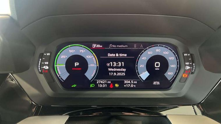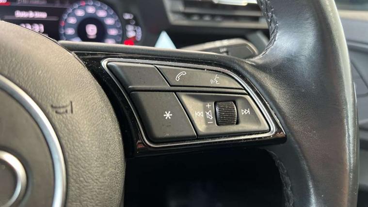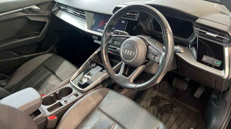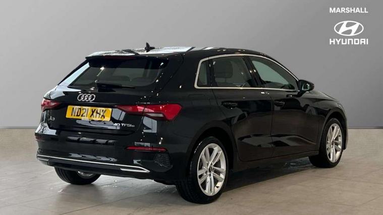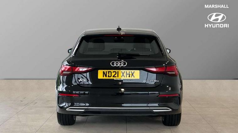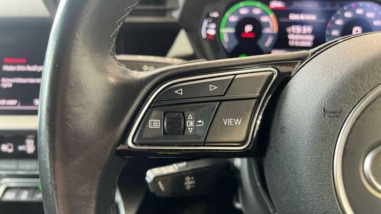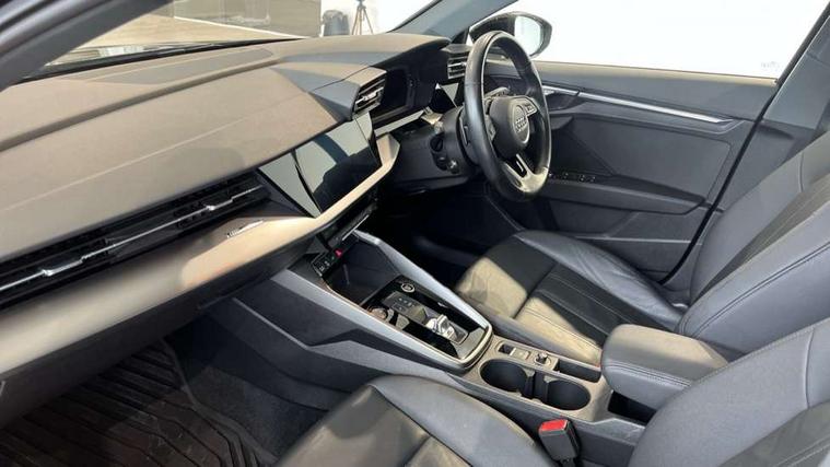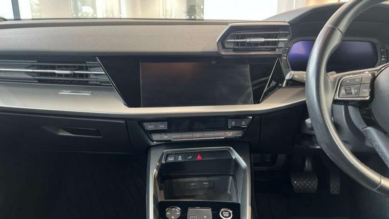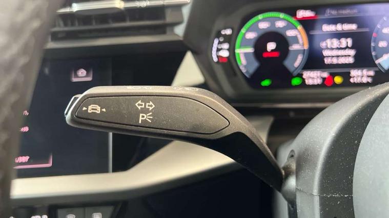 Audi connect emergency call and service, Audi drive select (Auto, Comfort, Dynamic, Efficiency and Individual), Audi smartphone interface, Audi Virtual Cockpit - 10.25" digital and colour instrument cluster, Automatic start/stop system with recuperation, Bluetooth interface, Collision avoidance assistant, Electromechanical power speed sensitive steering, Lane departure warning system, MMI Navigation Plus with high resolution 10.1" colour touch screen display, Service indicator, Trip computer, Voice control system with natural language interaction, 3 pin 10 amp domestic charging cable, Standard suspension, Type 2 mode 3 32 amp charging cable, Type 2 socket for AC charging, 2xUSB-C connection with data and charging functions, 6 passive loudspeakers, DAB Digital radio, Acoustic glass windscreen, Aluminium window trim, Auto dimming frameless rear view mirror, Body colour exterior mirrors, Body colour roof spoiler, Electrically adjustable/heated/folding/dimming door mirrors with kerb view includes integrated LED indications + kerb view function for passenger side, Front electric windows, LED daytime running lights, LED headlights and halogen rear lights, Light and rain sensors, Rear electric windows, Rear window, rear door windows and rear side windows in clear glass, Rear wiper, 12V socket and storage compartment in front centre console, 40/20/40 split folding rear seat bench with cupholder, Dual zone electronic climate control, Front and rear centre armrest, Front and rear headrests, Front door sill trims with aluminium inlay, Front/rear floor mats, Height and reach adjustable steering wheel, Interior lighting - Front and rear roof module including reading lights, glove compartment light and right hand side, Luggage compartment floor covering, Manual boot compartment lid, Manually adjustable front seats, Seat side bolsters, Steel grey cloth headlining, Tool kit, Twin leather upholstery, Aluminium interior elements pack - A3 Sportback, Sport styling pack - A3 Sportback, 3x3 point rear seat belts, Driver and front passenger airbag with passenger airbag deactivation, Electronic Stabilisation Control (ESC) including ABS, ASR and EDL, First aid kit with warning triangle and 2 safety vests, Front side airbags with head airbags and interaction airbag, Hill hold assist, Pre-sense front with pedestrian and cyclist detection, Seatbelt monitoring, Tyre pressure loss indicator, Anti theft alarm, Anti-theft wheel bolts, Electronically operated child lock, Immobiliser, Remote control central locking, Inlays with silk effect paint in platinum grey, Tyre repair kit,
