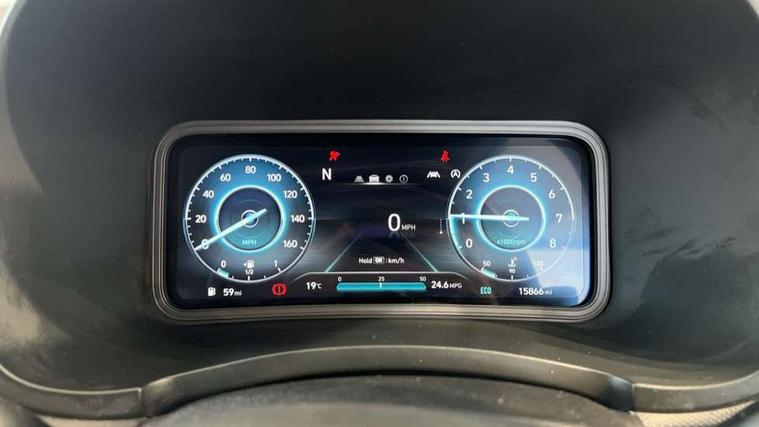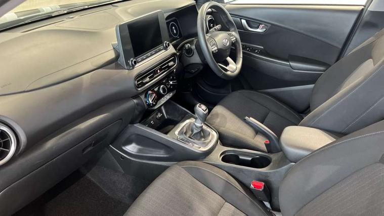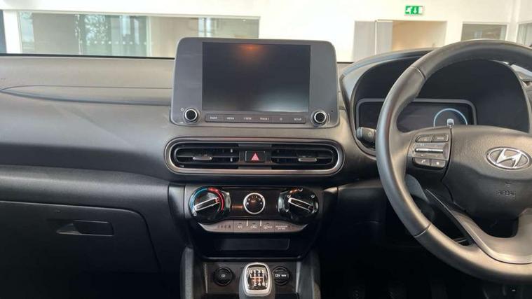 8" Touchscreen display audio + smart device integration, Bluetooth connectivity, Cruise control + speed limiter, Digital clock, Driver attention warning, Driver supervision instrument cluster with 10.25" LCD display, eCall emergency call system, Forward collision avoidance assist with pedestrian detection, Lane follow assist, Lane keep assist, Leading vehicle departure alert (LVDA), Parking system with rear camera and guidance system, PAS, Phone connection with apple carPlay and android auto, Rear parking sensor, Roadside assistance, Tailgate, Windscreen washer fluid sensor and warning indicator, 6 speed intelligent manual transmission, 6 speakers (2 front, 2 tweeters, 2 rear), Front USB ports, RDS and Digital DAB, Steering wheel mounted audio/phone controls, Automatic headlights with dusk sensor, Body colour door mirrors and handles, Door mirror integrated indicators, Electric front/rear windows with drivers one touch/anti-trap, Electrically adjustable and heated door mirrors, Halogen headlights, Halogen rear lights, LED daytime running lights, Positioning Lights - LED, Rain sensor, Rear roof spoiler with integrated LED brake light, Rear side wing doors, Rear wiper, Roof rails, Tinted glass with front door glass and windscreen with shade band, Variable front intermittent wipers, 12V power outlet in front console, 3 seat bench in 2nd row, 60/40 split folding rear seat, Adjustable head restraints, Air conditioning, Centre interior light, Cloth upholstery, Door scuff plate, Driver's seat height adjustment, Driver/passenger sunvisors and illuminated vanity mirrors, Front interior light, Front passenger seat manual adjustments, Height/reach adjustable steering column, Isofix rear child seat fastenings, Leather wrapped steering wheel and gear knob, Luggage compartment lighting, Luggage hooks, Metal paint effect interior door handles, Parcel shelf, Rear centre console with air vents, Single front passenger seat, Sunglasses holder, Vertical adjustment rear head restraints, Trailer wiring package - Kona, Airbags - front, front side and curtain airbags, Anti-lock brake system (ABS), Childproof rear door locks, Downhill brake control, EBD + Brake Assist, Electronic stability control, Fasten seatbelt reminder, Fixed 3 point for second row centre passenger seatbelt, Front seatbelt pretensioners, Height adjustable front seatbelts, Hill start assist control (HAC), Manual parking brake, Passenger airbag deactivate switch, Rear seat alert, Traction control, Tyre pressure monitoring system, Alarm/immobiliser, Deadlocks, Folding key, Locking wheel nuts, Remote central locking, 17" Alloy wheels,