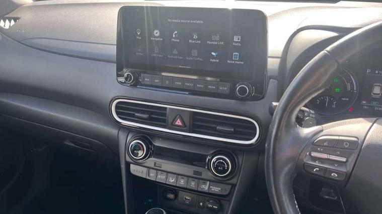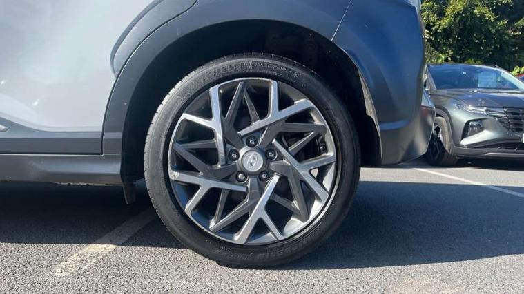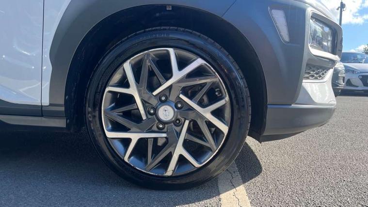 10.25" touchscreen satellite Navigation with Bluelink and Mapcare, Blind spot monitoring, Bluetooth system, Cruise control + speed limiter, Digital clock, Drive mode selector, Driver attention alert system, Driver's supervision instrument cluster with 4.2" LCD display, Front parking sensor, Head up Display, Lane keep assist, Parking system with rear camera and guidance system, PAS, Rear cross traffic alert, Rear parking sensor, Smartphone integration with Apple CarPlay and Android auto, Smartphone wireless charging plate, Windscreen washer fluid sensor and warning indicator, DAB Digital radio, Krell premium audio system with 8 speakers and subwoofer, RDS radio with MP3 player, Steering wheel mounted audio/phone controls, USB/aux input socket, Auto dimming rear view mirror, Automatic headlights with dusk sensor, Automatic windscreen wipers with rain sensor, Black grille with chrome surround, Body colour bumpers, Body colour door mirrors and handles, Door mirror integrated indicators, Electric front/rear windows with drivers one touch/anti-trap, Electrically adjustable and heated door mirrors, Front fog lights, High beam assist, LED brake lights, LED daytime running lights, LED Headlights, LED rear lights, Painted anthracite body garnish, Positioning Lights - LED, Power folding door mirrors, Privacy glass - Rear windows and tailgate, Rear roof spoiler with integrated LED brake light, Rear skid plate - silver, Roof rails, Solar glass with windscreen shade band, 12V Accessory socket in centre console, 60/40 split folding rear seat, Adjustable head restraints, Automatic climate control with defog system for front windscreen, Centre interior light, Door scuff plate, Driver and passenger front seat pockets, Driver's electric adjustable lumbar support, Driver's seat electric adjustments, Driver/passenger sunvisors and illuminated vanity mirrors, Front interior light, Front passenger's seat electric adjustments, Heated front seats, Heated steering wheel, Height/reach adjustable steering column, Isofix rear child seat fastenings, Leather steering wheel and gear knob, Leather upholstery, Luggage compartment lighting, Luggage hooks, Luggage net, Metal paint door handles, Paddle shifter, Parcel shelf, Rear centre armrest, Rear centre console with air vents, Sunglasses holder, Ventilated front seats, Vertical adjustment rear head restraints, Trailer wiring package - Kona, 3x3 point rear seatbelts, Airbags - front, front side and curtain airbags, Anti-lock brake system (ABS), Autonomous emergency braking, Childproof rear door locks, Downhill brake control, EBD + Brake Assist, Electric parking brake, Electronic stability control, Fasten seatbelt reminder, Front seatbelt pretensioners, Height adjustable front seatbelts, Hill start assist control (HAC), Passenger airbag deactivate switch, Traction control, Tyre pressure monitoring system, Alarm/immobiliser, Deadlocks, Folding key, Locking wheel nuts, Remote central locking, Smart key with keyless entry and engine start/stop button, 18" Alloy wheels, Tyre repair kit,