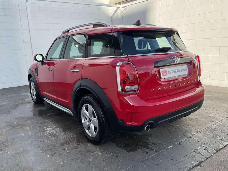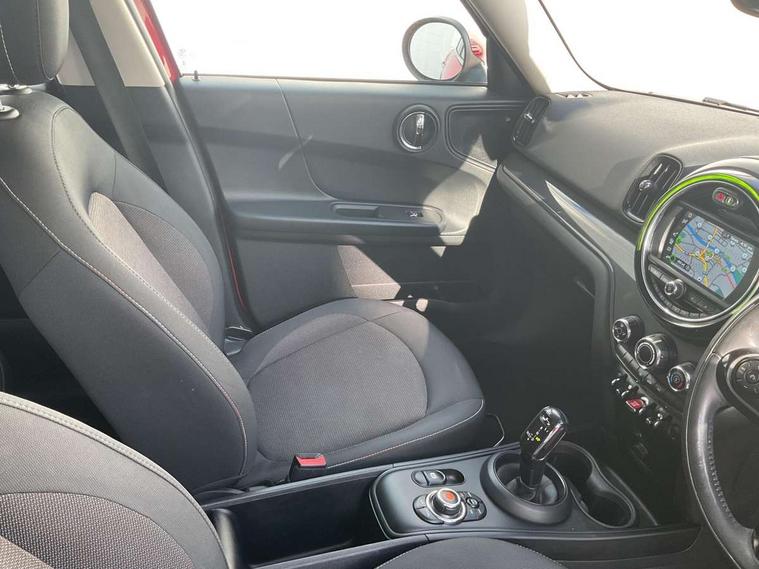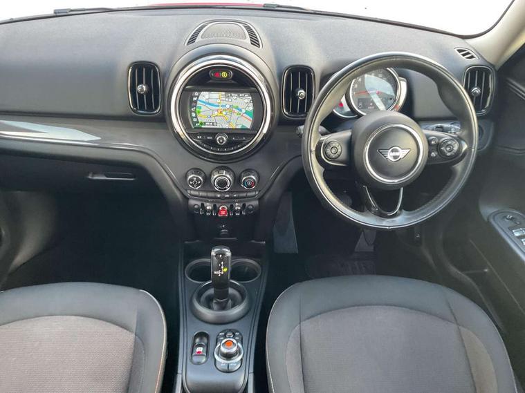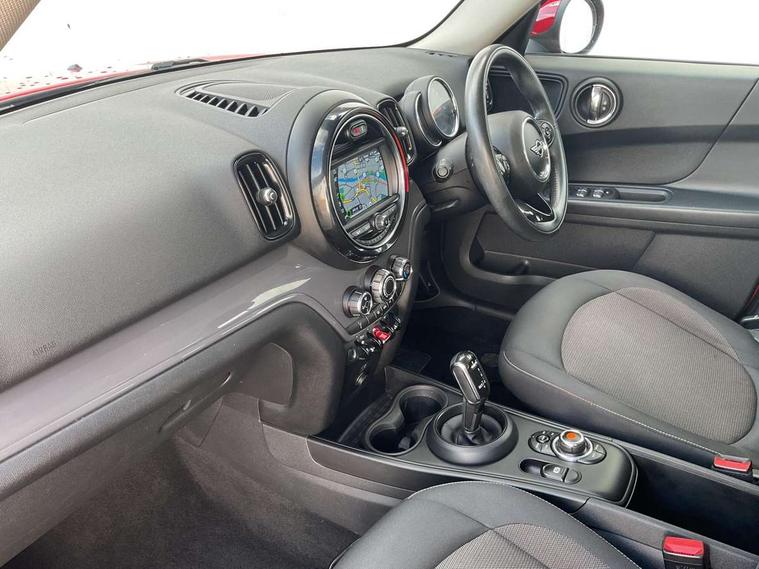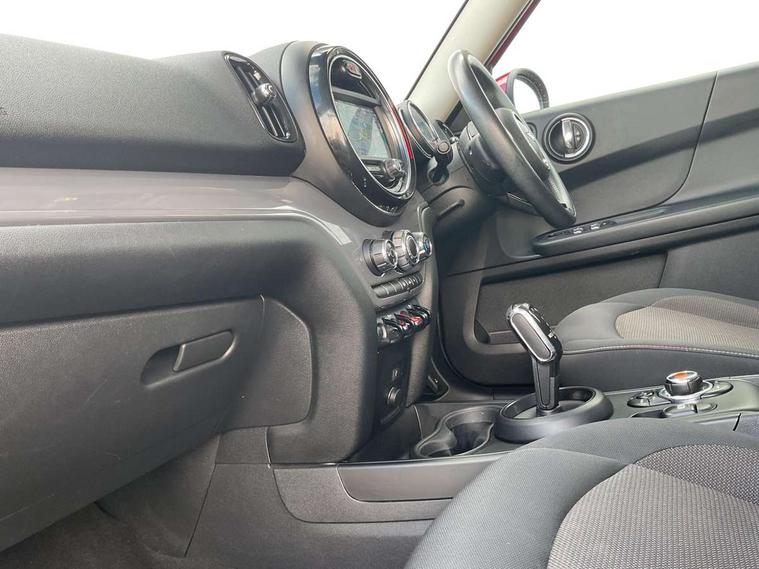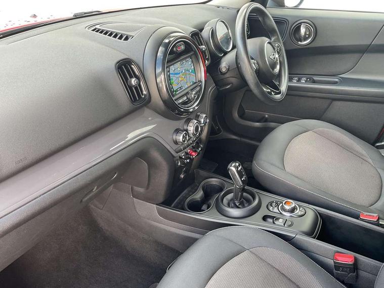 Active Guard incl speed limiting and lane departure functions with auto steering, and front collision warning with brake intervention, Automatic start/stop function with brake energy recuperation, Electro-mechanical speed dependant steering assistance, Instrument cluster, Mini E-call, MINI TeleServices, On board computer, Rear parking distance control, Double Vanos system, Fully variable valve control, High precision injection, Steptronic transmission with double clutch, FM tuner and DAB digital radio, Body colour fuel filler cap, Day time driving lights, Door sill strips, Dynamic brake lights, Electric windows, Heated rear window, Heated windscreen washer jets, Left exhaust tailpipe with chrome finisher, Model logo, Model logo on Tailgate, Radiator grille, Rain sensor with auto headlights, Rear fog lights, Rear window wiper, Side scuttle panel with integrated indicator, Split rear doors, Sun/heat protection glass, White indicator lenses, 12V Accessory socket in centre console, 360L luggage compartment capacity, 4 lashing eyes in luggage compartment, 40:20:40 split folding rear seats, Chrome interior highlights, Colour line - Carbon black, Cupholders, English handbook, Glove compartment, Headliner with grab handles and clothes hooks, Height and length steering column adjustment, Isofix rear child seat preparation, Leather gearshift lever and handbrake gaiters, LED reading lights, vanity mirror lights, front foot well light and spotlight on front seats, Manual air conditioning, Mechanical seat adjustment, driver seat height adjust, forward/back and front seats backrest, Multifunction steering wheel, Passenger seat height adjuster, Storage compartments in doors, Sunvisors with vanity mirrors, Excitement pack - Countryman, Navigation pack - Countryman, 2 tone horn, 3 point seatbelts on all seats, 6 Airbags - front, side, head and seat belt tensioners, Anti-lock braking system (ABS), DSC - Dynamic Stability Control, Electronic handbrake, Front and rear disc brakes, Hill start assist, Tyre pressure monitoring system, Alarm system with tilt sensor, monitoring doors, bonnet interior and tailgate, Auto drive away locking, Deadlocking function, Electronic vehicle immobiliser, Locking wheel bolts, Start/stop toggle with keyless go, Tool kit,