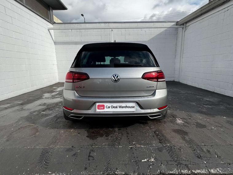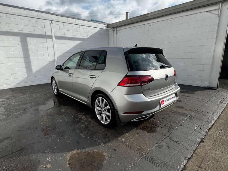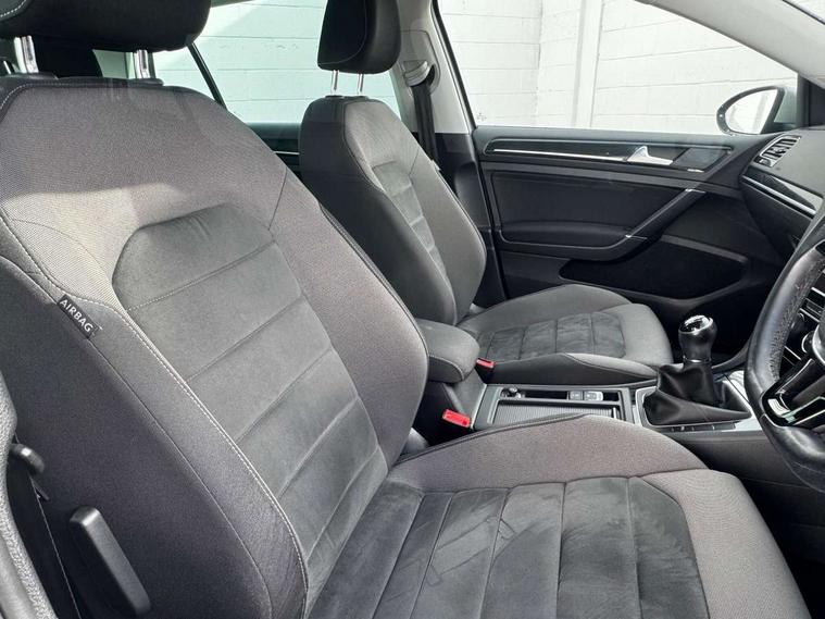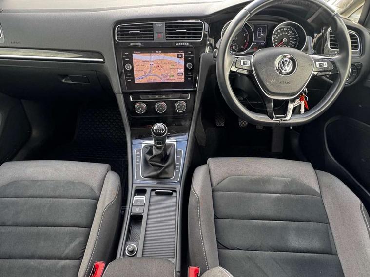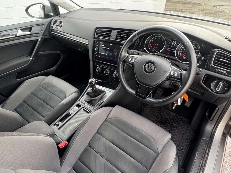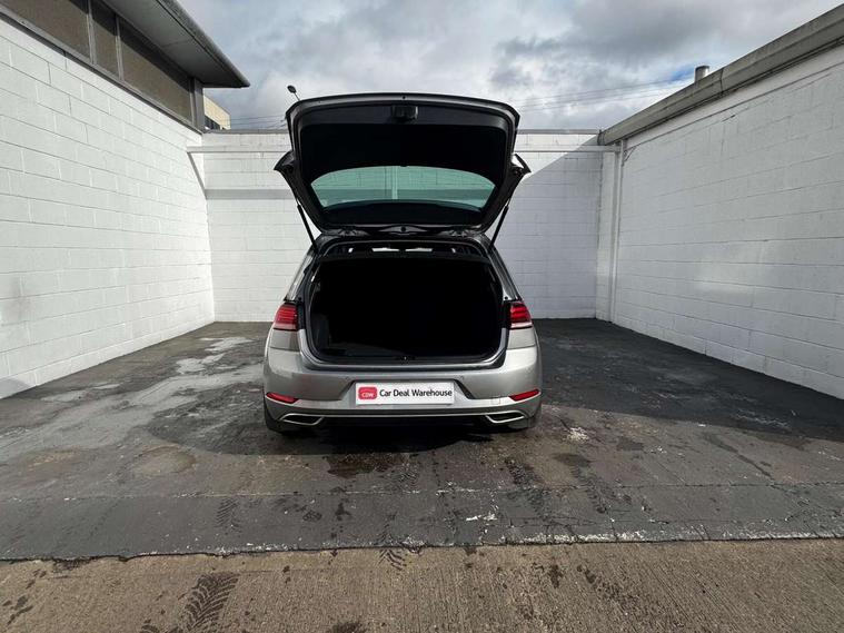 'Lights On' Reminder warning buzzer, ACC - Adaptive cruise control with front assist, forward collision warning, distance monitoring, city emergency brake and speed limiter, Bluetooth telephone and audio connection for compatible devices, Brake pad wear indicator warning light, Driver alert system, Driving Mode Selection with four preset modes - Eco, normal, sport or individual modes, Instrument cluster in white, Multifunction computer with visual gear change recommendation for fuel consumption, Power assisted speed sensitive electro-mechanical steering, Push tank flap, Speed limit display, Speedo, rev counter, electronic odometer, trip, service interval display, exterior temperature and fuel gauge, Stop/start system, Think blue trainer driver tips and journey analysis, Warning buzzer and light for front seatbelts unfastened, Battery regeneration during braking, XDS electronic differential lock, Composition media system, DAB Digital radio receiver, Driver Personalisation profile selection, MP3/WMA compatability, Multi device interface (MDI) with USB connection, Premium USB cable in choice of either Apple or Android smartphone compatibility, SMS Functionality, USB and SD card connectivity, Volkswagen media control, Aerodynamic black radiator grille with chrome trimmed insert, Auto dimming rear view mirror, Black front air intake and radiator grille with chrome insert, Black rear diffuser, Body colour bumpers, Body colour door handles, Body colour door mirrors with integrated indicators, Chrome trimmed front air intake surrounds, Dusk sensor + automatic driving lights, Electric front windows, Electric rear windows, Electrically adjustable and heated door mirrors, Fully galvanised body, Heated rear windscreen, Hidden exhaust pipe, High level 3rd brake light incorporating LED Technology, LED front fog lights with static cornering light function, Range adjustable headlights via infotainment system with LED daytime running lights, Rear fog lamp, Rear number plate lights incorporating LED technology, Rear tinted glass 65% light absorbing from B pillar backwards, Rear window aerial, Rear window wash/wipe with intermittent wipe, Reflectors in all doors, Remote electrically foldable door mirrors, door mirror puddle lights and reverse activated kerb-view adjustment on passengers door mirror, Tailgate with integrated rear roof spoiler, Windscreen wipers/ intermittent wipe + 4 position delay, 12V socket in luggage compartment, 3 rear headrests, 4 load lashing points in luggage compartment, 60/40 split folding rear seat backrest, Bag hook in luggage compartment x 2, Cooled glovebox, Cover for storage compartment in centre, Dust/pollen filter, Front + rear carpet mats, Front centre armrest with storage compartment and two rear air vents, Front seat back storage pockets, Grab handles front x 2, rear x 2 with integrated coat hooks, Height and reach adjustable steering wheel, Illuminated vanity mirrors, Instrument lighting white adjustable panel illumination, Interior light delay, Isofix preparation for 2 rear child seats, Load through provision with rear centre armrest and cupholders x2, Luggage compartment lighting, Overhead storage box, Pearl grey headlining, Storage box in luggage compartment, Storage compartment in roof console with cover, Storage compartments in front doors, Storage compartments in rear doors, Stowable luggage compartment cover, Sun visors, Variable boot floor, height adjustable and removable, Ambient lighting pack - Golf, Convenience Pack - Golf, Light and Sight pack - Golf, Mirror pack - Golf, 3 rear three point seatbelts, Airbags - Driver's and front passenger's, curtain airbag, Driver's knee, front side impact and passenger's airbag deactivation switch, Anti-lock Braking System (ABS) with Hydraulic Brake Assist (HBA), Automatic post collision braking system, Child locks on rear doors, Driver/Passenger optimised head restraints, Electronic parking brake with auto hold, Electronic stability control (ESC) including Electronic differential lock (EDL) and ASR (Traction control) with deactivation via infotainment system, Front ventilated disc brakes and rear disc brakes, Pre crash preventive occupant protection, Three point height adjustable front seatbelts with tensioners, Tyre pressure loss indicator, Alarm with interior protection and deactivation via infotainment system, Electronic engine immobiliser, Chrome plated air vent surround, Chrome plated electric mirror adjustment switch surround, Chrome plated electric window button surround, Chrome-plated light switch surround, Piano black decorative inserts in centre console, Tumbler decorative inserts, Steel space saver spare wheel,