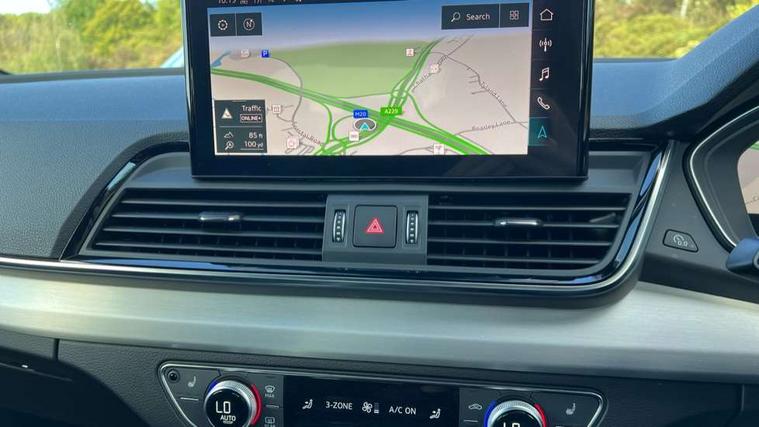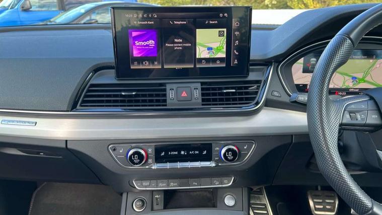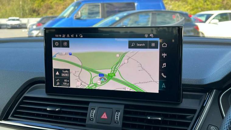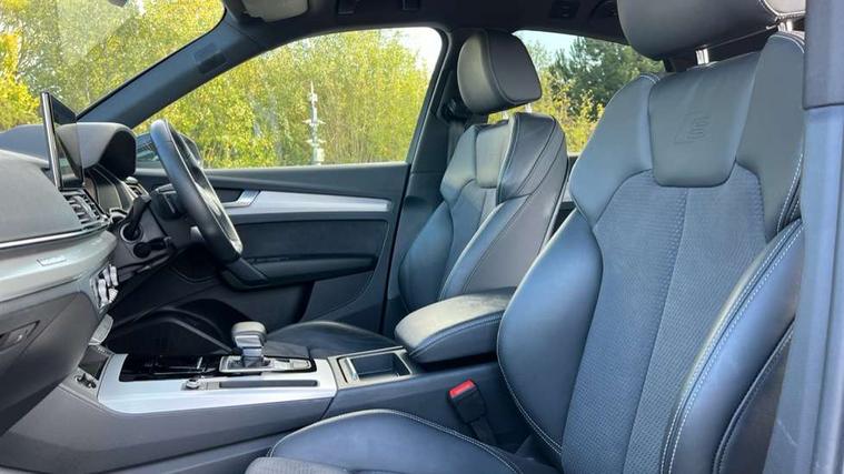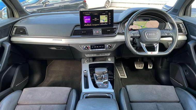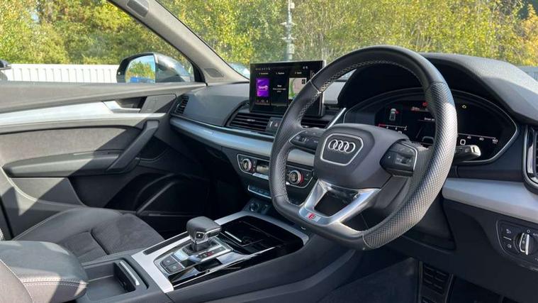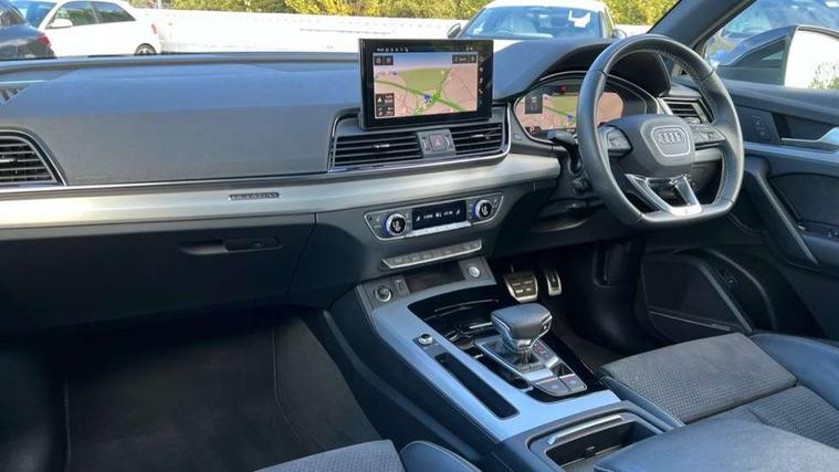 Acoustic front and rear parking sensor, Audi connect safety and service (e-call), Audi connect with Amazon Alexa Integration, Audi drive select, Audi virtual cockpit plus with 12.3" screen and three different layout designs, Audi wireless smartphone interface, Automatic start-stop system with coasting functionality and efficiency programme, Bluetooth interface, Electro - mechanical power assisted steering, MMI navigation plus with 10.1" touch screen, Power tailgate, Reversing camera, Service interval indicator, Voice control system with Audi hotword activation "Hey Audi", Diesel particulate filter, Quattro on demand, S line sports suspension, 8 loudspeakers, DAB Digital radio, Acoustic windscreen, Aluminium roof rails, Audi matrix LED headlights with dynamic front and rear indicators, Auto dimming door mirrors, Auto dimming frameless rear view mirror, Automatic headlight adjustment, Automatic headlights and windscreen wipers, Body colour door mirrors, Body colour rear diffuser with matt aluminium silver surrounds, Body colour underbody protection, Chrome plated exhaust trims, Daytime running lights, Door sills in Selenite silver, Electric adjustable/heated/folding door mirrors, Front air inlet surrounds in aluminium, Front and rear electric windows, Front radiator grille in honeycomb design, Headlight washers, High level LED brake light, Lower bumpers painted in contrast Manhattan grey, Rear chrome trim strip below lights, Rear privacy glass and rear side windows, Rear side wing doors, Rear wiper, Roof bars, S Line badges on the front wings, S Line front and rear bumpers, S Line rear spoiler, S Line side skirts, 2 x USB charging port with aux input socket, 3 rear headrests, 3 spoke leather multifunction steering wheel with S badging perforated leather grips, 40:20:40 split folding 3 rear bench seat in 2nd row with rear centre armrest, Black cloth headlining, Comfort front centre armrest, Contrast stitching on seats, steering wheel and gear lever gaiter, Deluxe 3 zone electronic climate control, Front head restraints, Front/rear floor mats, Gear lever in black leather, Heated front seats, Height/reach adjustable steering column, Illuminated door sill trims with S logo, Manual seat adjustment with 4-way electric lumbar support, Removable luggage compartment floor, Single front passenger seat, Stainless steel pedals, Sunvisors with vanity mirrors, Trunk roller cover, High gloss pack - Q5, LED interior light pack - Q5, 3 point seatbelts on all seats, 6 airbags - Driver, front passenger, curtain and side airbags, Electrically operated child locks on rear doors, Electromechanical parking brake, Electronic stabilisation control including ABS, ASR and EDL, First aid kit with warning triangle and vests, Front passenger airbag deactivation, Hill descent control, Hill hold assist, ISOFIX child seat mounting for front passenger seat and ISOFIX child seat mounting with Top Tether for outer rear seats, Multi collision brake assist, Pop-up bonnet for pedestrian protection, Pre sense city, Seat belt force limiter, Seatbelt monitoring, Tyre pressure warning, Anti theft alarm, Anti-theft wheel bolts, Keyless Go access/ignition system, Remote central locking, Air vents inserts and centre console in gloss black, Matt brushed aluminium inlays,