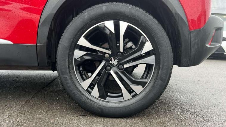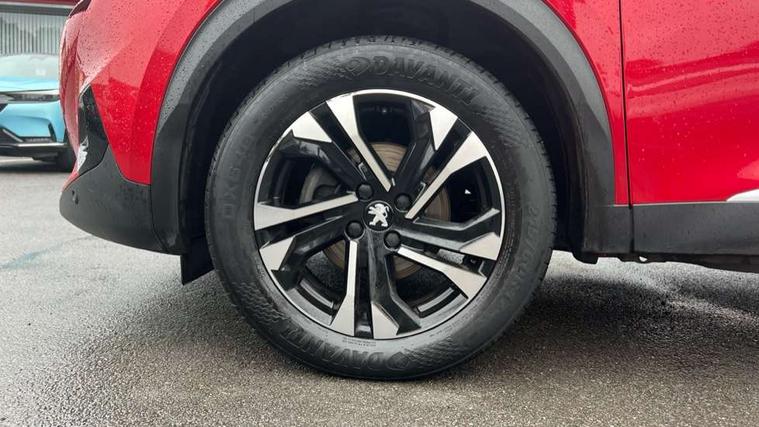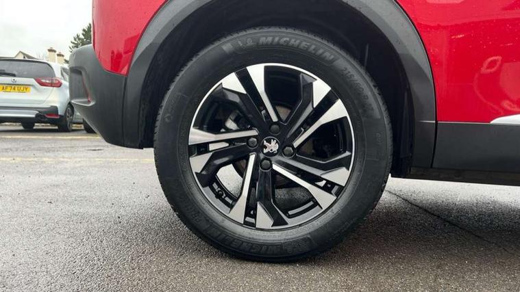Bluetooth telephone facility, Driver attention warning, Exterior temperature indicator with ice warning, Lane keep assist, Mirror screen with mirror link, apple carplay and android auto, Multi function trip computer, PEUGEOT i-Cockpit with 3.5" instrument panel display, PEUGEOT i-Cockpit with compact steering wheel, PEUGEOT SOS and assistance, Programmable cruise control and speed limiter, Smart phone docking station, Speed limit recognition and recommendation, Visio Park 1 with 180 degree Colour reversing camera, 2 front USB socket with USB-C, 2 USB sockets in rear, 6 speakers radio with mp3 compatible, DAB Radio (Digital Audio Broadcasting), Voice recognition for radio, navigation and telephony features, 2 X Rear number plate lights, Automatic front windscreen wipers, Automatic hazard light activation upon heavy brake application, Black front wing trim with gloss black detail, Body coloured exterior door handles, Colour coded door mirror shells, Colour coded rear spoiler, Colour coded roof, Dark tinted rear side and tailgate windows, Eco LED headlights, Electric, heated, and power folding door mirrors, Electrochrome rear view mirror, Front bumper - Silver lower trim, Gloss black finish on B pillar, Gloss black longitudinal roof rails, Gloss black rear cluster connecting strip, Gloss black roof bars, Headlights left on audible warning, LED daytime running lights with distinctive tooth design, Model designation badges front and rear, One touch electric front/rear windows with pinch protection, Radiator grille - gloss black top edge trim, Radiator grille chrome chequered, Rear full LED 3D peugeot signature claw effect lights with daylight function, Rear reversing lights, Rear windscreen wiper triggered automatically in reverse gear, Tailgate with heated rear windscreen and wiper blade, Wheel arch extensions, 1/3 to 2/3 split folding rear seats, 12V socket, Automatic air conditioning with pollen and active carbon filter, Central front armrest with storage compartment, Driver and front passenger comfort seats, Driver seat manual adjustment - height, longitudinal and back rest angle, Electric power steering with reach and rake adjustable steering column, Front LED interior light with 2 reading spotlights and rear interior light with timer, Front passenger seat manual adjustment - height, longitudinal and back rest angle, Gear lever top - manual in full grain leather, Gear shift indicator, High centre console, Leather steering wheel, Mint green contrast stitching to front centre console, door panels and dashboard facia, Modular boot floor, Piano keys: Gloss black and chrome toggle switches to access main functions of the vehicle, Roof lining - light grey, Seatbelt unfastened on the move audible and visual alert for front and rear seats, Tri material cloth/leather upholstery, Visibility pack - 2008, 2x 2nd row ISOFIX child seat mountings, ABS (Anti-lock Braking System) with EBD (Electronic Brakeforce Distribution) and EBA (Emergency Braking Assistance), Acoustic vehicle alerting system, Active safety brake with night function/cyclists/pedestrians, Adaptive driver and front passenger airbags with passenger airbag deactivation function, Child locking functionality on rear doors, Driver/front passenger side airbags, Electric parking brake, ESP (Electronic Stability Program) + Hill Start Assist, Front and rear curtain airbags, Front and rear disc brakes, Front and rear three-point retractable seatbelts, with force limiters, Front optimised safety headrests and rear retractable headrests (x3), height adjustable, Tyre pressure sensor, Automatic door locking when moving off, Deadlocks, Electronic code immobiliser, Thatcham Cat.1 alarm, Carbon effect Dashboard, front and rear door panel finish, 17" Salamanca diamond cut alloy wheels,