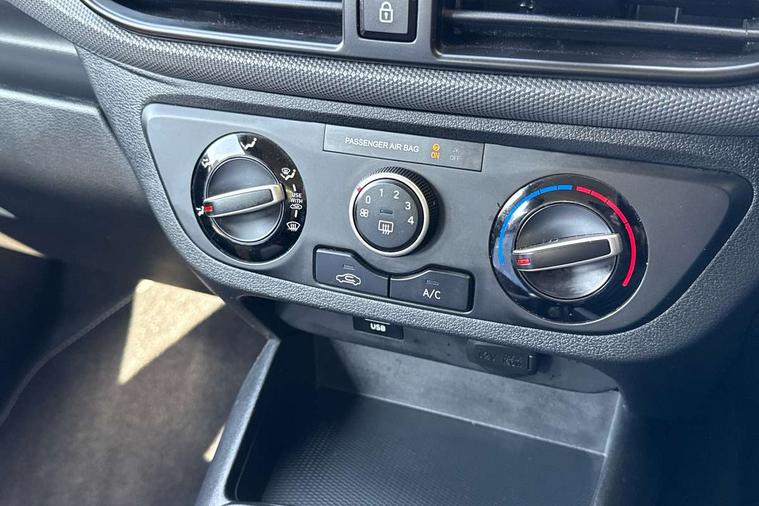 8" Touchscreen centre console display audio with smart device integration and DAB, Apple car play/Android Auto, Bluetooth connectivity with voice recognition, Cruise control + speed limiter, Driver attention alert system, eCall emergency call system, ISG - Idle stop and go, Lane departure warning system with lane keep assist - LKAS, PAS, Rear view camera, Roadside assistance, Trip computer, 2 front/2 rear speakers, Steering wheel audio, phone and cruise controls, USB socket, 1 speed non intermittent rear windscreen wiper, Black finish on B pillars, Body colour door handles, Body coloured bumpers, Body coloured door mirrors, Electric front windows, Electric rear windows, Electrically adjustable and heated door mirrors, Front grille in matte black, Front intermittent wipers, Halogen daytime running lights, Halogen headlights, Heated rear window, High beam assist, Indicator light on door mirrors, Rear roof spoiler with integrated LED brake light, Rear side wing doors, 12v power outlet - front, 3 seat bench in 2nd row, 60/40 split folding flat to floor rear seats, Air conditioning, Auto light control, Bottle holders in front/rear doors + front centre console, Cabin and luggage compartment interior lighting, Cloth upholstery, Driver + passenger vanity mirrors, Driver's seat height adjustment, Driver/passenger sunvisors with ticket holders, Front door pockets, Front Head Restraints - Vertical and Horizontal Adjustment, Glove compartment, Height adjustable steering column, Isofix child seat preparation, Leather wrapped steering wheel and gear knob, Metal paint effect interior door handles, Rear door pockets, Single front passenger seat, Vertical adjustment rear head restraints, 3x3 point rear seatbelts, Airbags - front, front side and curtain airbags, Anti-lock brake system (ABS), Autonomous emergency braking (AEB) with forward collision warning system, Brake assist function, Childproof rear door locks, Electronic stability control, Front and rear seatbelt reminder, Front seatbelt pretensioners, Hill start assist control (HAC), Passenger airbag deactivate switch, Traction control, Tyre pressure monitoring system, Immobiliser, Perimeter alarm, Remote central locking, Second remote key, Speed sensitive auto door locking, 15" Alloy wheels, Tyre repair kit,