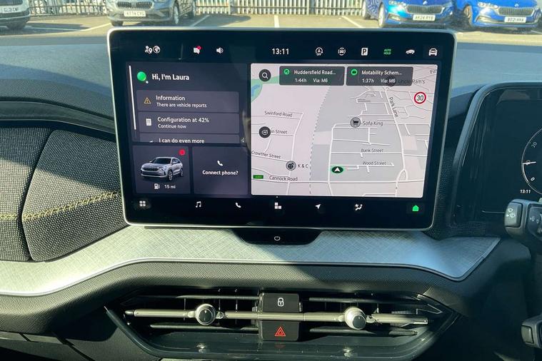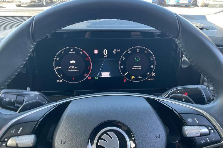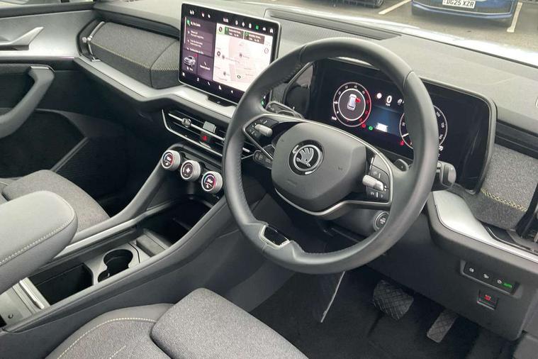 13" satellite navigation touchscreen display, Blind spot detection with door exit warning, Bluetooth system, ChatGPT functionality, Drive mode selector, Driver alert with fatigue sensor, Driver drowsiness alert system, Dry display cleaner, e call+, Front and rear parking sensors, Front cross traffic assist, Lane assist, PAS, Rear traffic assist, Rear view camera, Tailgate unlocking from outside, Traffic sign recognition, USB C Port x 2 in front centre console, Virtual Cockpit - 10.25" digital display, Voice control system, Wireless charging for two smartphones (15W) with cooling function, Wireless SmartLink for Apple CarPlay and Android Auto, Stop/start function, 2x USB-C in the rear, DAB Digital radio, Aero front windscreen wipers with intermittent function, All weather light, Auto dimming rear view mirror, Black wheel arch surrounds, Body colour bumpers, Body colour door mirrors and handles, Cornering light and poor weather light, Electric folding /adjustable/separted heated/folding door mirrors, auto dimming with boarding sports and memory function, Electric front and rear windows, Heat insulating glass in windshield, Heated rear window, Ice scraper in fuel tank cap, Invisible tailpipe, LED daytime running lights, LED rear fog light, LED third brake light in rear spoiler, Light assistant with automatic headlight control and coming home feature, Logo projection in door mirrors, Rear side wing doors, Rear spoiler, Rear window wiper, Safety reflectors on front and rear doors, Window control switches with black trim, Windscreen wipers with rain sensor, Without engine designation, 1.5l bottle holder points in all door, 12V socket in boot, 1x centre rear reading light, 2 seat bench in 3rd row, 3 configurable smart dials with 32mm coloured display, 3 seat bench in 2nd row, 4 foldable roof handles with rear coat hooks, Ambient interior lighting - Dashboard, front-door stowage compartments, front and rear door panels and footwell lighting, Automatic gear selector on steering wheel, Chrome interior door handles, Driver/front passenger reading lights, Fabric headlining, Fixed bench 40:60:40 split folding backrests, Front and rear floor mats, Front centre armrest with jumbo box storage compartment, cup holder and 12V socket, Front courtesy lights, Height adjustable front headrests, Isofix child seat fittings in outer rear seats and front passenger with top tether, Manually adjustable steering column, Pollen filter, Rear centre armrest with cupholders, Rear seat boot backrest release, Retractable luggage compartment cover, Single front passenger seat, Sliding trunk cover, Small Bags on the inner sides of the front backrests, Storage pocket including mobile phone pockets on the backs of the front seats, Sunvisors with illuminated vanity mirrors, Three rear height adjustable headrests, Ticket holder on A Pillar, Tri zone climate control, Umbrella in door panel x1 made from sustainable materials, Upper and lower glovebox with card holder and coin compartment, USB C port by rear view mirror for charging only (15W), Auto door release and activation of warning lights in the event of an accident, Driver and front passenger airbag with knee airbag and front passenger airbag deactivation, Electric child locks, Electronic parking brake, ESC (incl. ABS+EMD+MSR+ASR+EDL+HBA+DSR+RBS+ESBS+MCB+TSA+XDS), Front assist with braking reaction to vehicles, pedestrians and cyclists, Front disc brakes, Fuel cut off safety device, Height adjustable front 3 point seatbelts + pretensioners, Hill hold control, Junction assist with automatic emergency braking, Rear disc brakes, Safety vest holder in door, Seat belt reminder for all seats, Three point rear seat belts, Two tone horn, Tyre pressure monitor, Alarm with interior monitoring and tilt sensor with safe function, Anti-theft wheel bolts, Immobiliser, Remote central locking with 2 keys, Black decorative trims, Breakdown kit,