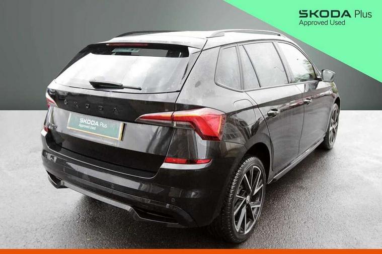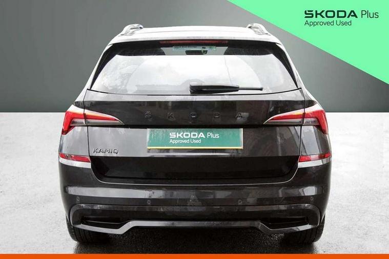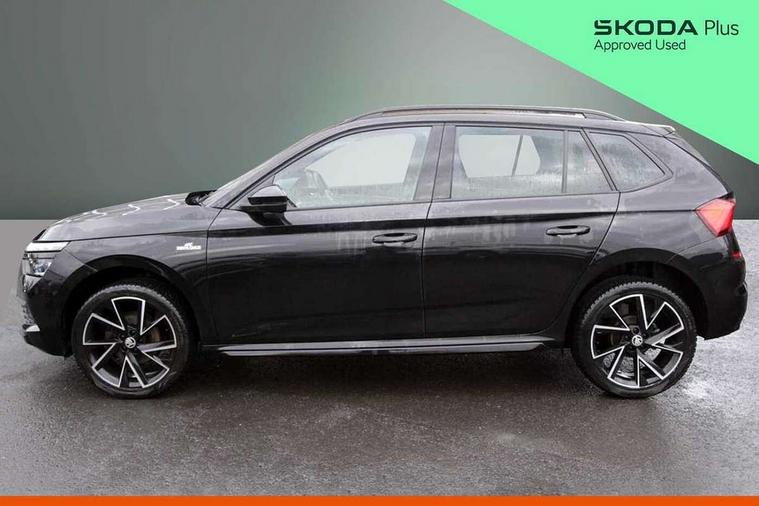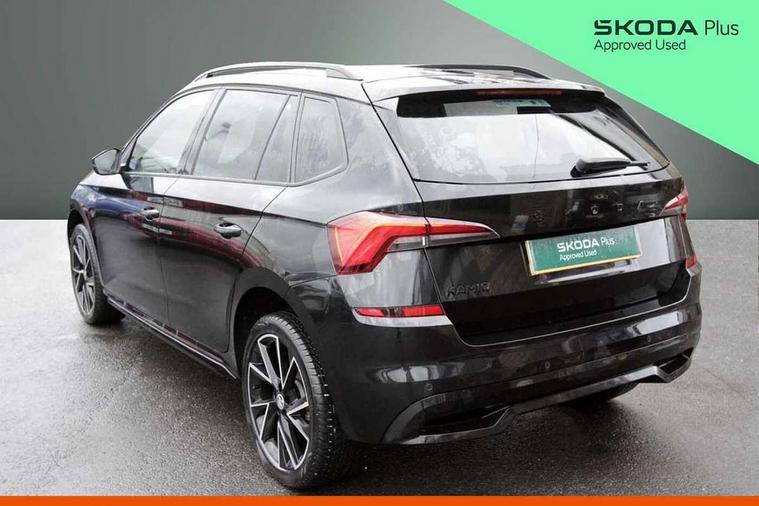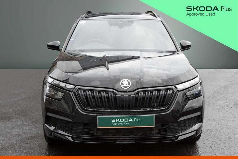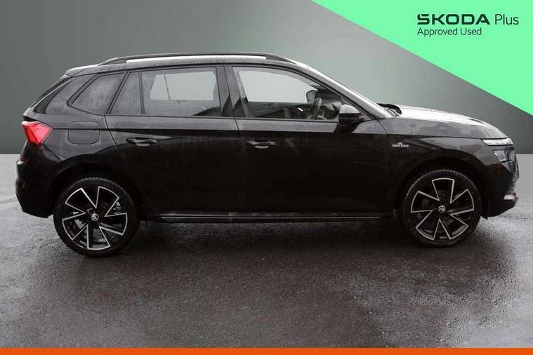 Amundsen satellite navigation with 9.2" glass colour touchscreen display, voice control, virtual cockpit, web radio and traffic sign recognition, Bluetooth system, E-call, Front assist system, Gesture control, PAS, Service indicator, Speed limiter, Virtual cockpit with 10.25"display, Wireless SmartLink for apple car play, android auto and mirrorlink, 8 speakers, Auxiliary input socket, DAB Digital radio, Black door mirrors, Black radiator grille, Black rear diffuser, Body colour bumpers, Body colour door handles, Body colour roof spoiler, Boot lettering in black, Chrome grille surround, Dimming rear view mirror with black surround, Electrically adjustable and heated door mirrors, Front and rear electric windows, Front sport bumper, Full LED headlights with adaptive front light system and front cornering fog lights, Headlight range control, Heated rear window, High functionality rear led lights with dynamic indicators, KAMIQ Door sills, LED daytime running lights, Light sensors, Monte carlo plaque, Panoramic sunroof with black roof rails, Privacy glass, Rear fog lights, Rear side wing doors, Rear wiper, 12V Accessory socket in centre console, 3 seat bench in 2nd row, Aluminium pedals, Black ceiling for black/beige interior, Black roof lining, Chrome inner door handles, Cloth upholstery, Front head restraints, Glove compartment with illumination, Ice scraper, Isofix child seat fittings on outer rear seats, ISOFIX on front passenger seat, Leather gear lever, Manual lumbar support for front seats, Rake/reach adjustable steering wheel, Reading lights, Single front passenger seat, Sports seats, Sun visors with illumination on front passenger, Textile floor mats, Third rear headrest, Top tether for front passenger seat, Umbrella in driver's door, 3x3 point rear seatbelts, Airbags - driver and front passenger, ESP, Front passenger airbag deactivation switch, Front side airbags with curtain airbags, Hill hold control, Manual parking brake, Manual rear child locks, One tone horn, Rear disc brakes, Seatbelt reminder for driver an co-driver, Traction control, Tyre pressure monitor, Anti-theft alarm system with interior monitoring, backup horn, towing protection and remote central locking with SAFE system, Anti-theft wheel bolts, Electronic engine immobilizer, Chrome air vent surrounds, 18" Vega alloy wheels in black,