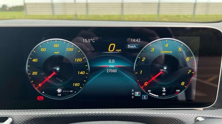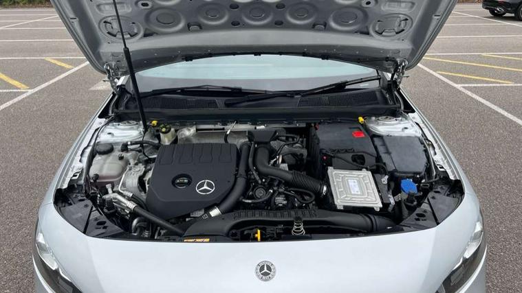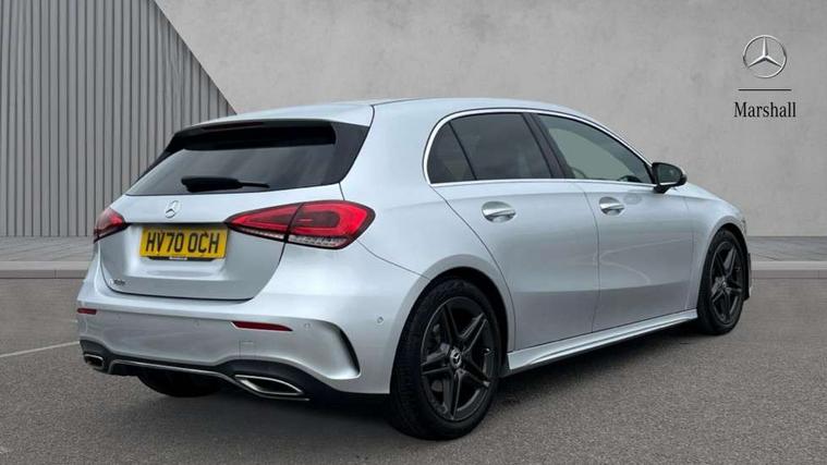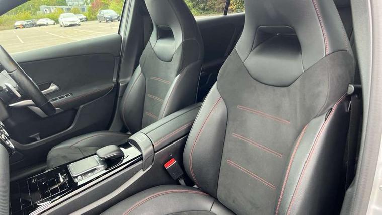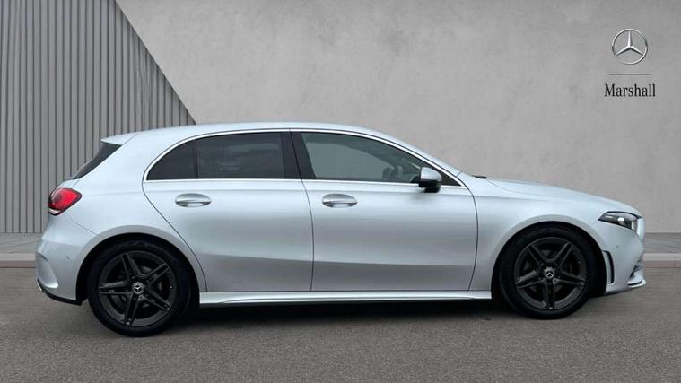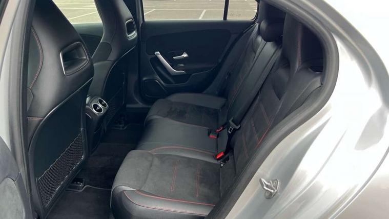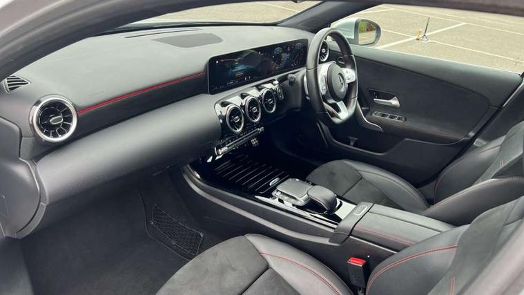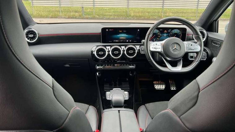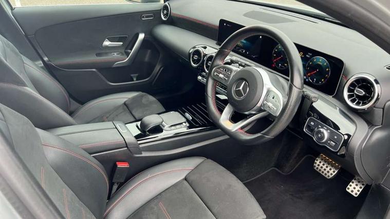 10.25" media display, 180 degree rear view camera with parking guidelines, 7" colour screen in instrument panel, Active lane keep assist, Active park assist with parktronic system including front and rear parking sensors, Attention assist, Brake pad wear indicator warning light, Car wash mode, Cruise control + speed limiter, Direct steering, Dual bluetooth interfaces, DYNAMIC SELECT with a choice of driving modes (ECO, Comfort, Sport and Individual), ECO start/stop function, Fluid level warning indicator for fuel, oil, coolant and washer fluid, Hard-disk navigation, Hey Mercedes Voice activation, Lamp failure indicator, Mercedes me connect including emergency call system, accident recovery, breakdown and maintenance management, Outside temperature gauge, Owners manual in English, Pre-installation for private car sharing, Pre-installation for Vehicle Monitoring, Pre-installation for Vehicle Setup, Preinstallation for Mercedes Benz link, Service indicator (ASSYST), Smartphone integration with Apple CarPlay and Android auto, Speed sensitive power steering, Trip computer, Wireless charging, Lowered comfort suspension, Rear axle torsion beam, 2 USB ports (type C) in rear stowage compartment and one in front of center console, 6 speakers, DAB Digital radio, MBUX multimedia system with DAB digital radio and touchpad including satellite navigation, Mercedes-Benz sound system - 100W, 4 Electric Front and Rear windows, Adaptive brake lights, AMG bodystyling - Front apron with splitter in chrome, rear apron with chrome trim and chrome visible trim elements in tailpipe, Black weather strip, Body colour bumpers, Body colour door handles, Body colour side skirt, Body coloured door mirrors, Chrome beltline trim, Diamond radiator grille with chrome pins and silver louvre + chrome insert, Electric adjustable and heated door mirrors with integrated LED side indicators, Exhaust system - Twin visible tailpipes in polished stainless steel, Headlamp assist automatic headlamp activation, Heated glass rear windscreen + timer control, LED high performance headlamps with integrated LED daytime running lights, LED tail lamp, LED third brake light, Privacy glass, Radio aerial, Rain sensing windscreen wipers with two sensitivity settings, Rear fog lights, Rear wiper, Window line trim strip in chrome, 3 Spoke flat bottom leather multi function steering wheel with perforated leather in grip area, 40:20:40 split folding rear seats, Artico man-made leather/Microfibre Dinamica upholstery with red contrast stitching, Auto Mercedes-Benz child seat recognition sensor, Black air vents with surround in silver chrome, Black roof lining, Brushed stainless steel sports pedals with rubber studs, Controller on centre console with chrome surround, Floor mats with stitched edging and AMG lettering, Front centre armrest with storage compartment, Front door sills with Mercedes Benz lettering, Front seat backs luggage nets, Front seat cushion length adjustment, Galvanished gear shift paddles on steering wheel, Heated front seats, Height/reach adjustable steering column, Interior mirror with reading lamps in black and frameless, Manual height adjustable front seats, Rear head restraints, Seat occupancy sensor for front passenger seat, Sports seats with integrated headrests, Stowage compartment in centre console with retractable cover, Sunvisors with illuminated vanity mirrors, Touchpad on center console, Twin front cupholders, Two zone thermotronic luxury automatic climate control, Light and sight pack - A Class, Mirror package - A Class, Seat comfort pack - A Class, 3 rear 3 point seatbelts, ABS with Brake Assist, Active bonnet, Active brake assist includes forward collision warning system with autonomous braking, Adaptive brake assist with hold function and hill start assist, Black seatbelts, Childproof locks manually operated for rear doors and electrically operated for rear power windows, Crash responsive emergency lighting, Driver and passenger head and side airbags, Drivers knee airbag, Dual stage driver/passenger airbags, Electronic parking brake, ESP curve dynamic assist, ESP with ASR, Front and rear seatbelt reminder, Front brake callipers with Mercedes Benz lettering, ISOFIX and top tether child seat fixing points in two outer rear seats, Tyre pressure monitoring system, Warning triangle and first aid kit, Window airbags, Alarm system/interior protection/immobiliser, Keyless Go, Remote central locking and crash sensor with emergency opening function, Urban guard vehicle protection system with immobiliser and interior protection, Dinamica microfibre trim in black, 18" AMG 5 twin spoke light alloy wheels in titanium grey with highsheen finish, Summer tyres, Tirefit sealant kit,