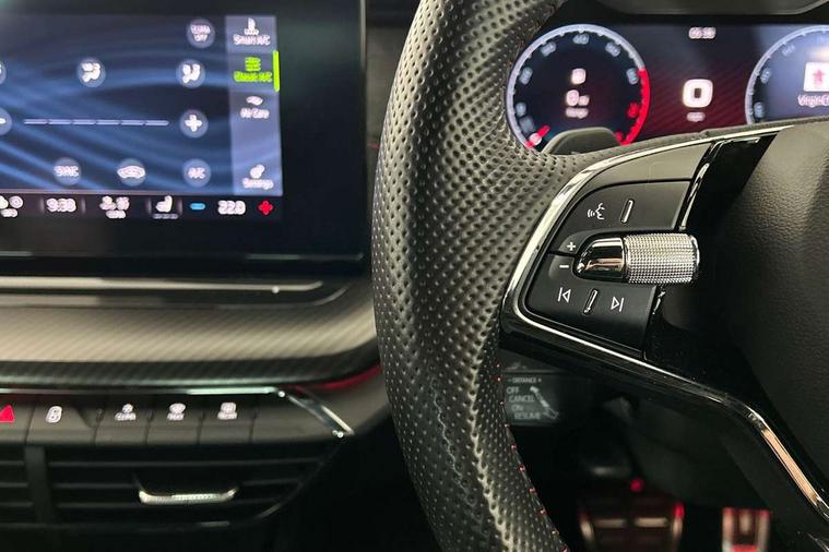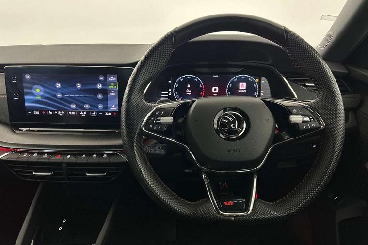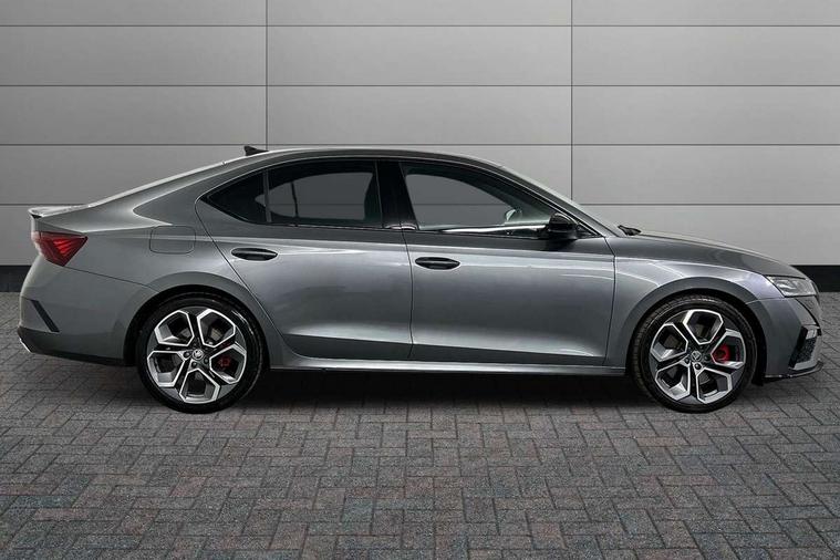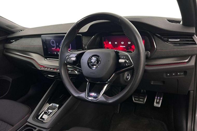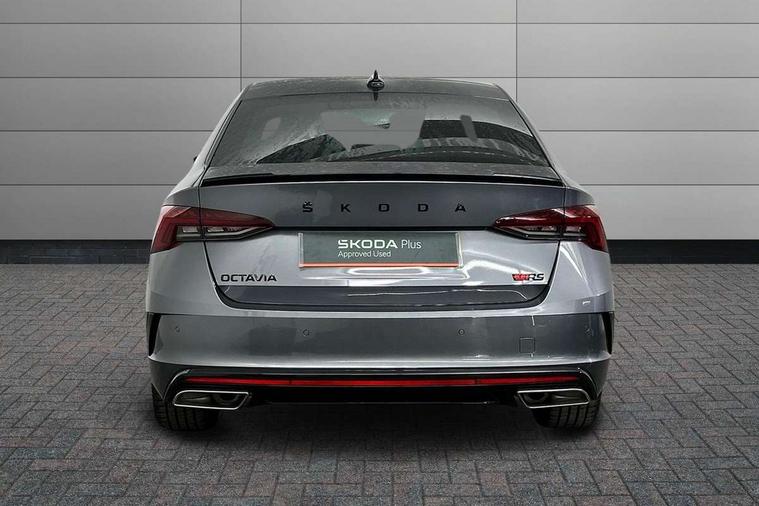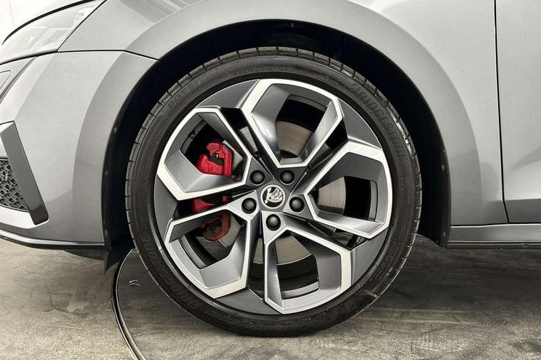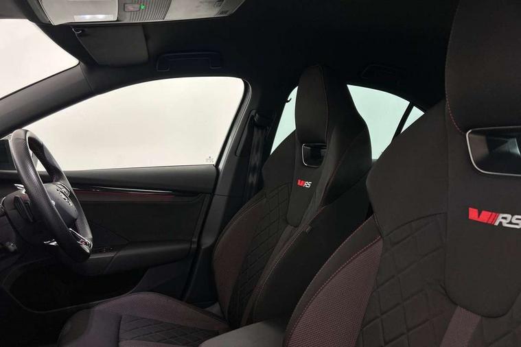 1x USB Type C port in rear view mirror (charging only), 2x USB Type C ports in rear of front centre armrest (charging only), Bluetooth system, Columbus satellite navigation with 10" touchscreen display, Driver fatigue sensor, eCall emergency system, Front and rear parking sensors with manoeuvre assist, Front assist system, Progressive dynamic steering, Speed limiter, Turn Assist, Virtual Cockpit - 10.25" digital display, Virtual pedal with electrically operated boot door (Rear LED lights (high functionality), dynamic indicators, Voice control system, Wireless SmartLink for Apple Car Play, Electronically controlled limited slip differential, Front and rear stabilizers, 2x USB Type C ports (for charging and data transfer), 8 Speakers, DAB Digital radio, Aero front windscreen wipers with intermittent function, Auto dimming rear view mirror, Body colour door handles, Chrome exhaust tailpipes, Door sills with vRS logo, Electric front and rear windows, Exterior gloss black sports styling including front grille, side strip, window surrounds, door mirror and badging, Full LED Matrix headlights with AFS, rear LED lights (high functionality) and dynamic indicators and cornering front fog lights, Headlight washers, Heated rear windscreen, High level third brake light, Ice scraper in fuel cap, LED daytime running lights, Rain and light sensors, Rear fog light on one side, Rear privacy glass, Rear side wing doors, vRS bumpers and lip spoiler, 3 rear headrests, 3 seat bench in 2nd row, 4 foldable roof handles, Aluminium pedals, Black headlining, Black microsuede padded dash panel with red contrast stitching, Chrome inner door handles, Front centre armrest, Front head restraints, Heated front seats, Illuminated glovebox, Leather trimmed gearshift lever, Luggage compartment lighting x1 light, Mechanical rear seat release, Parcel shelf - folding, Single front passenger seat, Sunglasses storage, Textile floor mat set, Three spoke leather sports multifunction steering wheel with paddles, Ticket holder, Umbrella in door panel, Unsplit rear bench seat and split folding backrest, LED interior light pack - Octavia, 3 point front/outer rear seatbelts+pre-tensioners, Alarm with interior monitoring, tilt sensor and back up horn, Automatic door unlocking in case of crash, Automatic fuel cut off in case of crash, Automatic warning lights in case of emergency braking, Curtain airbags and front side airbags, Driver and front passenger airbags, Drivers knee airbag, Electronic parking brake, ESC including ABS, EBV, MSR, ASR, EDS, HBA, DSR, Front and rear disc brakes, Front central airbag, Hill hold control, Hill start assist, ISOFIX on front passenger seat and outer rear seats, Manual rear child locks, Passenger airbag deactivate switch, Pro active services, Red brake calipers, Two tone horn, Tyre pressure monitor, Visual and acoustic seat belt reminder, Warning reflectors in front door, Door locks with immobiliser, Keyless entry and start/stop including rear doors, Remote central locking, Carbon optic decorative inserts, Gloss black air vent surrounds, 19" Altair anthracite alloy wheels,