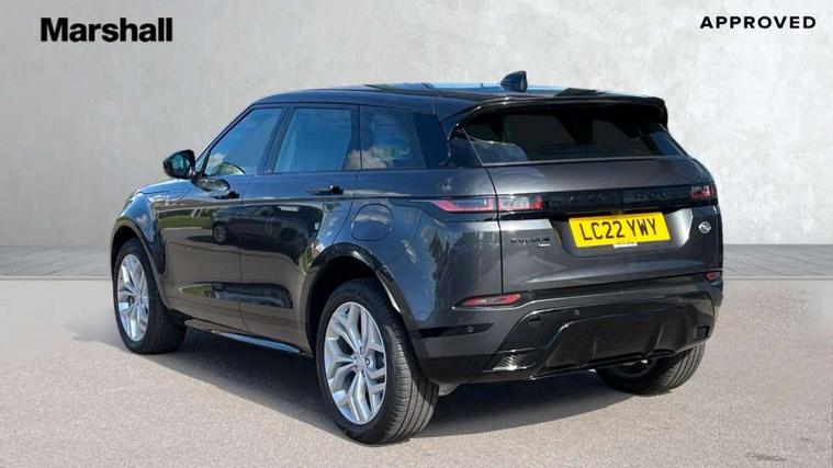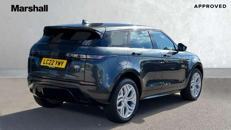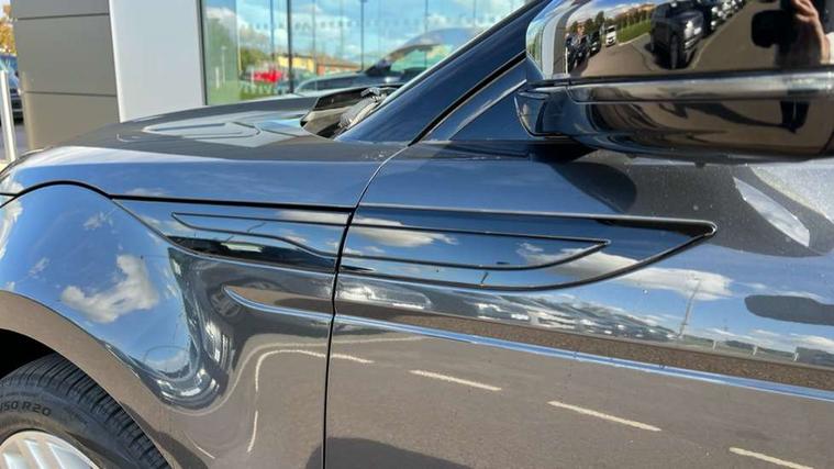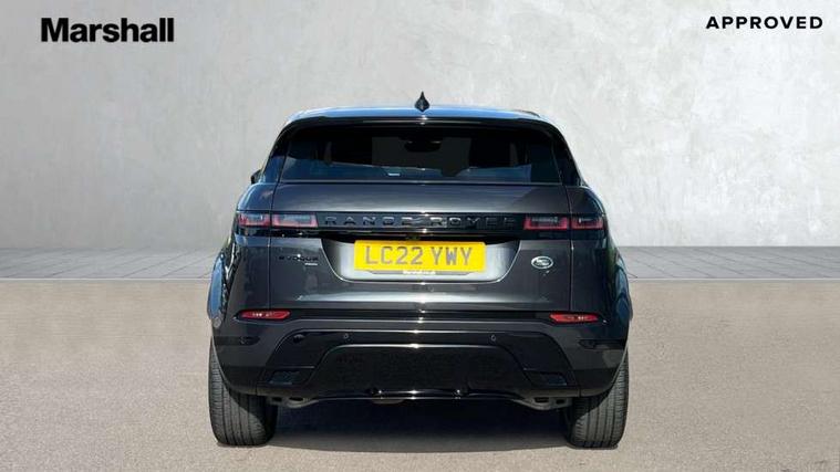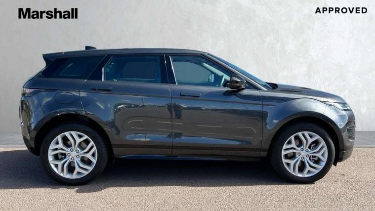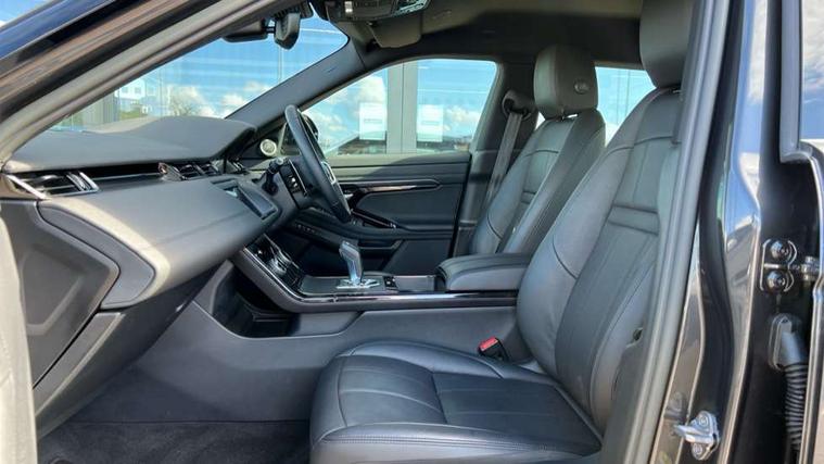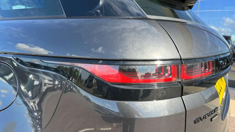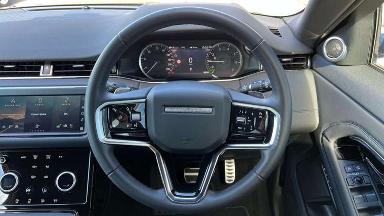 Adaptive cruise control, Android Auto, Apple car play, Blind spot assist, Bluetooth connectivity, Brake pad wear indicator warning light, Driver condition monitor, eCall emergency system, Electronic power assisted steering (EPAS), Front and rear parking aid, InControl remote, Land Rover InControl apps, Lane keep assist, Pivi pro connected includes upgraded infotainment, connected navigation pro, Nuance speech licence, Push button starter, Rear collision monitor, Rear traffic monitor, Traffic sign recognition with adaptive speed limiter, Voice control system, 7 kW onboard charger, All terrain progress control, Electric rear axle drive, Home charging cable, Large fuel tank, Passive suspension, Public charging cable, Terrain Response 2 Auto, Digital Audio Broadcast radio-DAB, Steering wheel mounted controls, Auto headlights, Automatic headlight levelling, Electric windows with one touch open/close and anti trap, Evoque and R-Dynamic badge, Flush deployable exterior door handles, Heated rear window with timer, Heated washer jets, Heated windscreen, P300e badge, Power fold, auto-dimming, heated door mirrors with approach lights and auto dimming driver side, Rain sensing windscreen wipers, Rear fog lights, Rear side wing doors, Rear wiper, Tailgate spoiler, Third brake light, 40:20:40 split folding rear seats with centre headrest and armrest, Ambient interior lighting, Bright metal pedals, Isofix system on outer rear seats, Overhead lighting console, Overhead stowage for sunglasses, Passive front head restraints, Rear air vents, Rear centre headrest, Rear head restraints, Satin chrome gearshift paddles, Single passenger seat, Sunvisors with illuminated vanity mirrors, Twin sliding front centre armrest, 3 rear 3 point seatbelts, Anti-lock braking system (ABS), Customer configurable autolock, DSC - Dynamic Stability Control, Electronic brake force distribution, Electronic parking brake, Electronic traction control, Emergency braking, Front and rear seatbelt reminder, Hill descent control, Hill launch assist, Low traction launch, Power operated child locks, Roll stability control, Six airbags - Driver and passenger airbags/driver knee airbag/front side airbag and curtain airbags, Torque vectoring brake, Tyre pressure monitoring system, Alarm, Immobiliser, Intrusion sensor, Keyless entry, Locking wheel nuts,