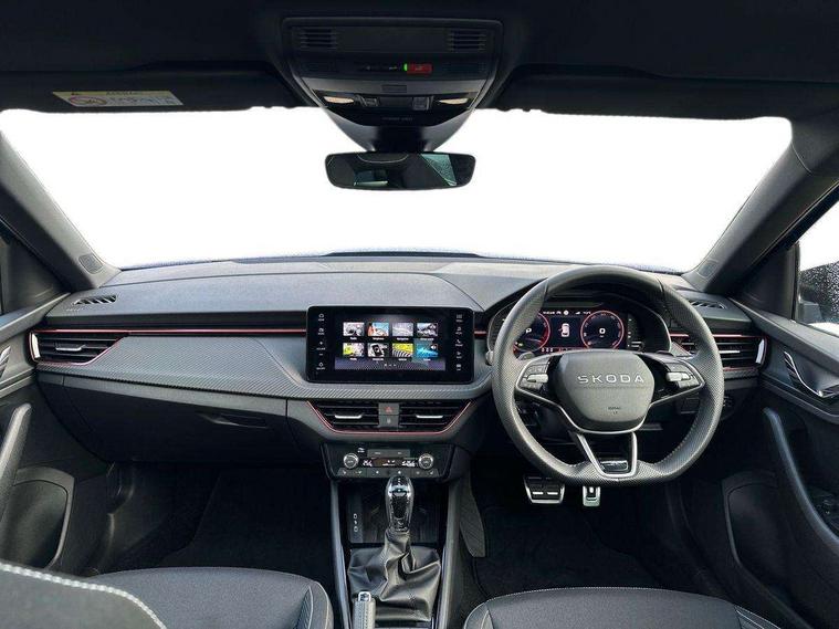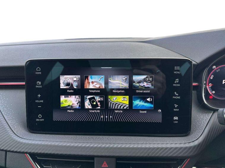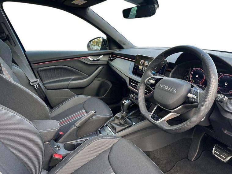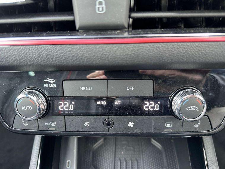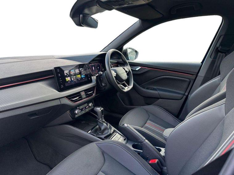 Advanced driver attention and drowsiness monitor, Bluetooth system, E-call, Front assist system, PAS, Rear parking sensors, Rear view camera, Service indicator, Speed limiter, Traffic sign recognition, Virtual cockpit with 10.25" display, Voice control system, Wireless smartlink, 4 USB C ports, 8 Speakers, 9.2" Skoda navigation display, DAB Digital radio, Auto dimming rear view mirror, Automatic headlight control with coming home and leaving home feature, Black door mirrors, Black radiator grille, Black rear diffuser, Black roof spoiler, Body colour bumpers, Body colour door handles, Boot lettering in black, Extended tailgate glass, Front and rear electric windows, Heated rear window, LED daytime running lights, LED high beam, LED low beam, LED third brake light, Light sensors, Monte carlo plaque, Panoramic sunroof with black roof rails, Privacy glass, Rear side wing doors, Rear wiper, Ticket holder inside windscreen, 12V socket in luggage compartment, 3 seat bench in 2nd row, Aluminium pedals, Ambient lighting in white/red, Art leather carbon decor inserts, Art leather carbon door inserts, Black roof lining, Cargo elements, Chrome inner door handles, Driver and passenger sun visors with vanity mirror, Dual zone climate control, Front and rear roof lights, Front centre armrest, Front head restraints, Glove compartment with illumination, Height adjustable driver seat, Height adjustable front passenger seat, Ice scraper, Inner circulation control with pollen filter, ISOFIX on front passenger seat, Isofix preparation for back seats, Leather gearknob and handbrake lever, Manual lumbar support for front seats, Monte Carlo cloth upholstery, Net package and top tether hooks in boot space, Net under rear shelf, Pocket on the back of both front seats include mobile phone pockets, Rake/reach adjustable steering wheel, Reading lights, Rear centre armrests, Red hotstamping, Single front passenger seat, Sports seats, Textile floor mats, Third rear headrest, Top tether for front passenger seat, Umbrella in driver's door, Light and view plus package - Kamiq, 3x3 point rear seatbelts, Airbags - driver and front passenger, Disc brakes, ESP, Extended and predictive pedestrian/cyclist protection, Front passenger airbag deactivation switch, Front side airbags with curtain airbags, Hill hold control, Manual leather parking brake, Manual rear child locks, One tone horn, Seatbelt reminder for driver an co-driver, Traction control, Tyre pressure monitor, Anti-theft alarm system with interior monitoring, backup horn, towing protection and remote central locking with SAFE system, Anti-theft wheel bolts, Electronic engine immobilizer, 18" Ursa black diamond cut alloy wheels,