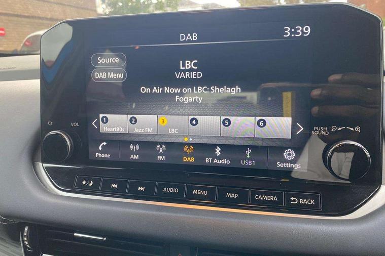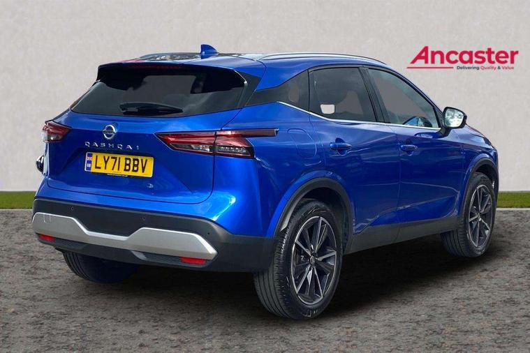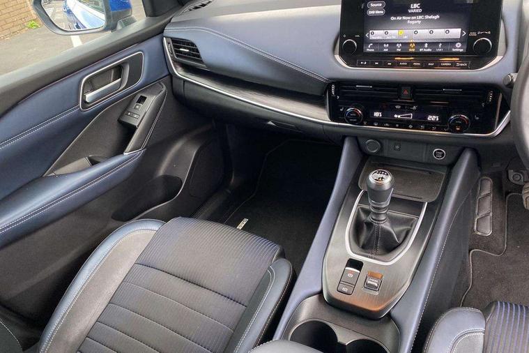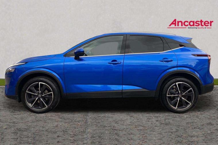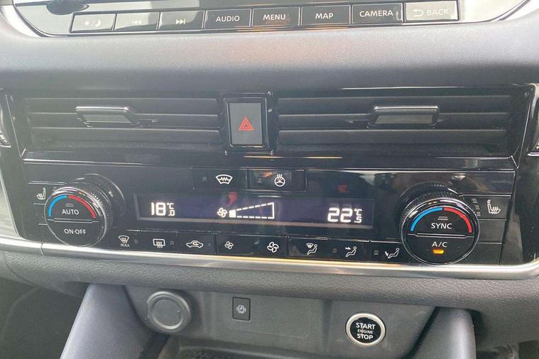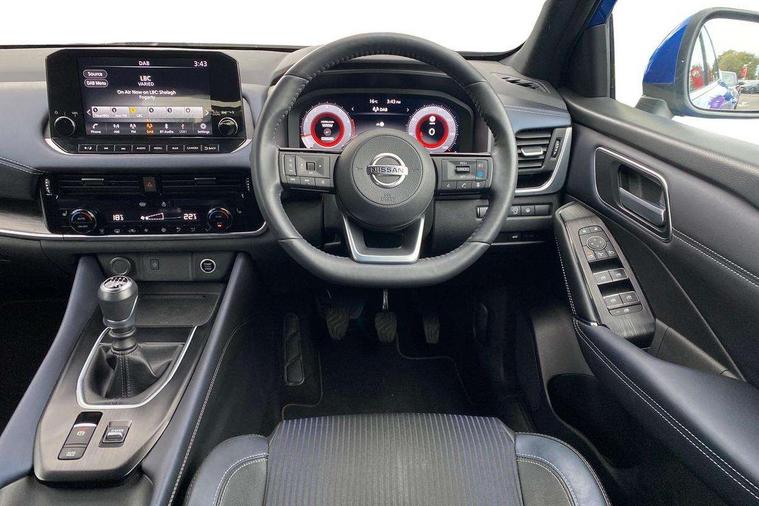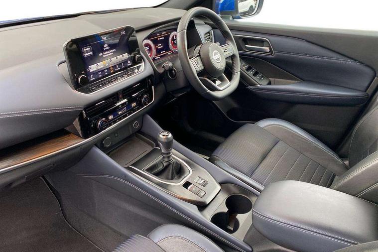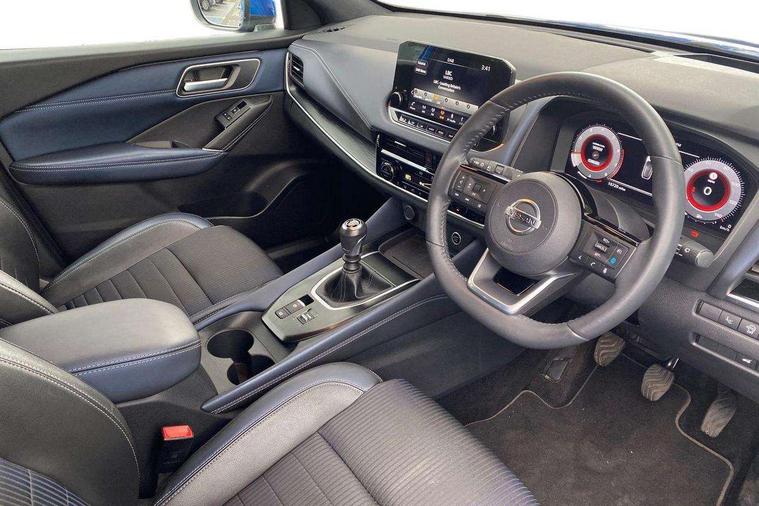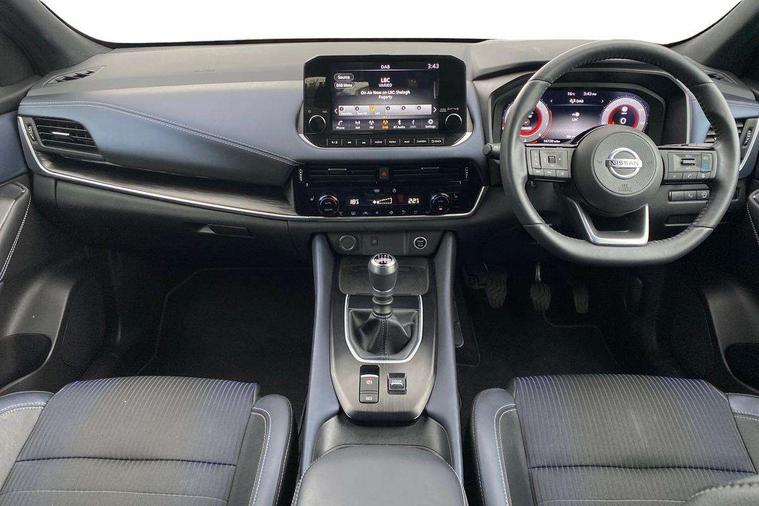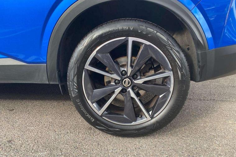 Blind spot warning, Drive modes (sport, normal, eco), Electric speed sensitive power steering, Emergency and breakdown call, Front and rear parking sensors, Full Digital 12.3" TFT Digital Combimeter, Google maps services - search, weather, 3D maps and Google street view, Hands free power tailgate, Idle stop/start system, Intelligent around view monitor, Intelligent Cruise control (ICC), Intelligent driver alert system, Intelligent forward collision warning, Intelligent lane intervention, Lane departure prevention, Lane departure warning system, Moving object detection, Nissan connect 9" touchscreen infotainment system, Nissan connect navigation, Push button starter, Rear cross traffic alert, Remote control services - door locks, lights, horn and car locator, Telematics - notifications and connectivity services, TomTom live traffic services, Traffic sign recognition with legal speed adjustment, Trip computer, Virtual personal assistant and firmware over the air capability, Wireless Apple CarPlay and wired Android Auto, Wireless charging pad, 6 speakers, AM/FM audio system with DAB, Bluetooth audio streaming, Front USB connections (Type-A and Type-C), Rear USB charging only ports (Type-A and Type-C), Auto dimming rear view mirror, Auto rear wiper when reversing, Body colour mirror caps, Body coloured door handles, Bodyside mouldings, Chrome side window finisher, Door handle with button, Dusk sensor, Electric auto folding door mirrors, Electrically adjustable and heated door mirrors with LED turn indicator, Fixed panoramic glass roof with electric sunshade, Follow me home headlights, Front and rear LED turning signals, Intelligent auto headlights, LED daytime running lights, LED rear lights, One touch front and rear electric windows with remote opening and closing, Partially body coloured bumpers, Privacy glass, Rear roof spoiler, Rear side wing doors, Rear styling plate, Roof rails, Shark fin antenna, Splash free rain sensing wipers, Super UV and infrared cut glass, Three blink turn signal, 12v power socket in dashboard and luggage, 2 way electrical driver lumbar adjustment, 2x Rear coat hooks, 3 bench rear seats in 2nd row, 3 rear headrests, 4 folding assist grip, 6 Luggage hooks - 4 on floor, 2 on side, 60/40 split folding rear seat bench, 8 way electric adjustable drivers seat, Ambient lighting around centre console, Ambient lighting in front doors, Centre console storage tray, Chrome interior door handles, Cloth/syntech leather monoform upholstery, Dark headlining, Driver and front passenger sunvisors with illuminated vanity mirrors, Driver seat back pocket, Dual zone automatic climate control with pollen filter, Front and rear door storage, Front cupholders x 2, Front door with bottle holders, Glovebox with light, Hard trunk cover, Height adjustable front headrests, Leather shift knob, Leather steering wheel, Luggage board system, Luggage space lighting, Manual lumbar support on passenger seat, Manually adjustable passenger (slide recline + lifter), Multifunction steering wheel, Passenger seat back pocket, PVC front centre console and armrest, Rear armrest with 2 cupholders, Rear door bottle holders, Single front passenger seat, Soft PVC kneepad, Steering wheel switches, Tilt/telescopic adjustable steering wheel, Two rear isofix child seat anchorage points with top tether, Welcome light and doors with console tray ambient lighting, Drive assist pack - Qashqai, Heat pack - Qashqai, Tech Pack (Drive Assist + HUD), 3x3 point rear seatbelt pretensioners + load limiters, ABS, ESP, EBD and brake assist, Active brake limited slip, Auto hold function, Child locks on rear doors, Curtain and front side, far side airbags, Driver and passenger airbags, Driver, passenger and 2nd row rear seat belt reminder, Electronic parking brake, Front seatbelt pretensioners + load limiters, Height adjustable front seatbelts, Hill start assist, Intelligent blind spot intervention, Intelligent front emergency braking with pedestrian, cyclist recognition and junction assist, Intelligent rear automatic braking, Tyre pressure monitoring system, Vehicle dynamic control, Capless fuel filler, Engine immobiliser, Nissan i-key, Rear bumper with silver insert, Remote central door locking with deadlocking, Thatcham Cat.1 alarm, 19" Alloy wheels,