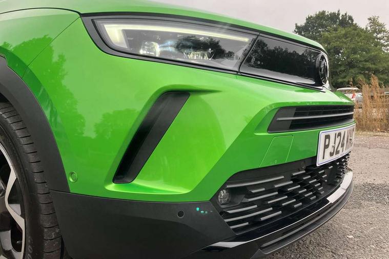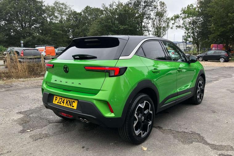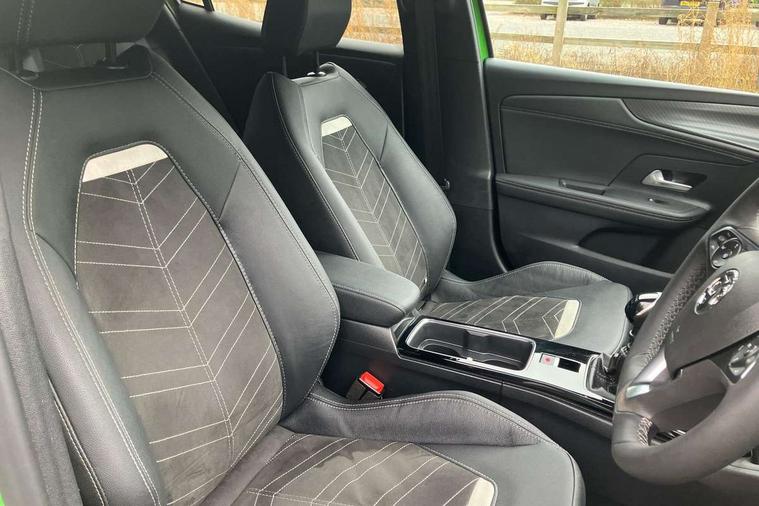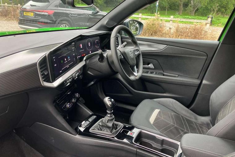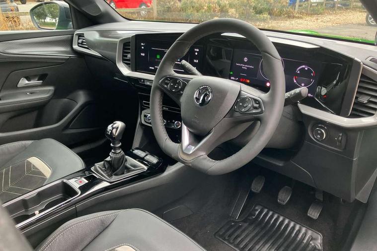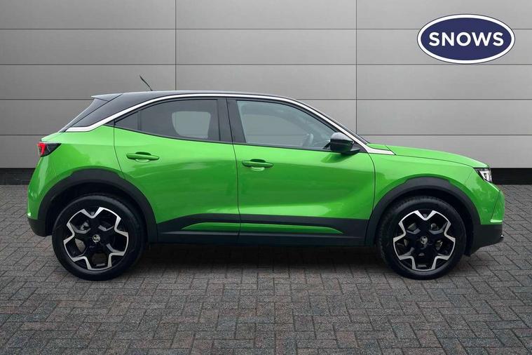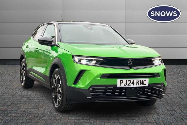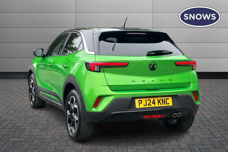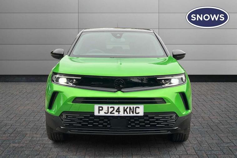 12" digital instrument cluster, Adaptive cruise control with speed limiter, Digital instrumentation with digital speedometer, rev counter, fuel and water temperature gauge, Driver drowsiness alert system, Driver information display with multi function trip computer, audio info, digital clock and outside air temperature with ice warning function, Engine start/stop button, EV information display, Extended traffic sign recognition, Front and rear parking distance sensors, Front camera and radar system, Gearshift up/down indication light, Lane keep assist system (LAS) with Lane departure warning system (LDWS), Lights on audible warning, Panoramic rear view camera, Power assisted speed sensitive steering, RDS with traffic programme, Side blind spot alert and flank guard, Smartphone integration compatible with Apple CarPlay and Android Auto, Sports switch with engine sound enhancement, Start/stop system, Vauxhall connect with e-Call, 6 speed manual transmission, 6 speakers, AM/FM stereo radio with 36 station presets, DAB Digital radio, Flexible Roof Mounted Radio Aerial, Front USB connection, Mobile phone portal - bluetooth connect, vehicle microphone, handsfree calls, SMS read out and reply, phone book access, Multimedia Navi Pro with 10" colour touchscreen, Steering wheel mounted controls, Two rear USB sockets, Adaptive brake lights, Auto high beam assist, Automatic headlamp levelling, Automatic lighting control with tunnel detection, Automatically dimming anti dazzle rear view mirror, Black door mirror housings, Black front and rear bumper inserts, Black Griffin logo and vizor frame, Body colour door handles, Body colour front and rear bumpers, Dark tinted rear side windows + tailgate window, Electric adjustable/heated/folding door mirrors + puddle lights, Electrically operated front and rear windows with safety auto reverse and one touch up/down facility, Hazard warning lights, Heated rear window+rear wash/wipe, Integrated black tailgate spoiler, IntelliLux Matrix LED headlights with adaptive forward lighting with anti glare beam, LED 3rd brake light, LED daytime running lights, LED front fog lamps, LED side repeat indicators, LED tail lights, Rear foglight, Rear side wing doors, Reversing light, Solar heat absorbing windscreen and windows, Two speed rain-sensitive windscreen wipers with variable intermittent wipe, Windscreen and side window demist vents, 12V Accessory socket, 3 seat bench in 2nd row, 3 spoke flat bottomed leather effect steering wheel with satin chrome effect bezel, 4 speed fan with illuminated controls, 4 Way driver seat with lumbar and massage function, 6 way manual adjustable driver fore/aft, up/down with reclining seatback, 6 way manual adjustable front passenger fore/aft, up/down with reclining seatback, 60/40 split folding rear seat, Air recirculation system, Alcantara/leather upholstery, Black headliner, Cabin particulate filter - removes dust, airborne particles and pollen, Centre console with two cup holders at front and one in rear, Chrome effect interior door handles, Door pockets with two litre capacity, Driver and passenger sun visors with vanity mirror, Electronic climate control (ECC), Four adjustable facia vents, Four load restraint lashing eyes, Front centre armrest with storage, Front head restraints, Front map reading lights, Front seat back storage pockets, Fully carpeted load area, Heated front seats, Heated steering wheel, Interior courtesy light, Interior tailgate handle, Luggage compartment cover, Luggage compartment lighting, Movable boot floor, Reach + rake adjustable steering column, Single front passenger seat, Three height adjustable rear seat head restraints, Twin gas assisted tailgate struts, Black Pack with badge - Mokka, 2x Isofix child seat fitting on outer rear seats, 3x3 point rear seat belts, Anti-lock braking system (ABS), Child proof locks on rear doors, Cornering brake control, Deactivation switch for front passenger front and side impact airbags, Drag torque control, Driver and front passenger airbags, front seat side impact airbags, full size curtain airbags, Electronic brake force distribution, Electronic Stability Programme (ESP), Emergency brake assist, Enhanced automatic emergency braking with pedestrian detection, Forward collision alert at all speed, Hill start assist, Inertia reel lap and diagonal seatbelts for all seats, Seatbelt unfastened audible warning and warning light, Straight line stability control, Traction control, Tyre pressure monitoring system, Electronically protected audio equipment, Engine deadlock immobiliser, Freewheeling door locks, Key left in ignition audible warning, Keyless entry and start, Locking wheel nuts, Remote control central locking, Remote control ultrasonic security alarm system, Visible vehicle identification number, Black facia with silver trim insert, Instrument panel bar in polar silver, Light grey trim inserts on front doors, 18" bi colour alloy wheels,