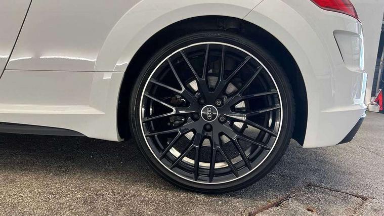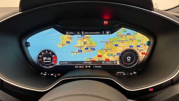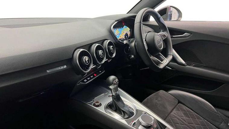 Audi drive select with 4 Pre configured modes, Audi virtual cockpit - 12.3" high-resolution LCD display with fully customisable instrument cluster, Cruise control + speed limiter, MMI touch panel, Mobile phone preparation with bluetooth interface, Progressive power assisted steering, Service interval indicator, Start/Stop system with energy recuperation, TP memo, S line sports suspension, AM/FM radio, Audi music interface, Bluetooth audio streaming, DAB Digital radio, MMI Radio with CD player and SD/XC card slot, Auto dimming rear view mirror, Auto headlight range control, Black chrome tailpipe, Black door mirrors, Dark privacy glass from B-pillar backwards, Dynamic rear indicators, Electric folding door mirrors, Electric front windows, Front fog lights, Green tinted heat insulating glass, Headlight wash system, LED daytime running lights, LED headlights with LED rear lights + dynamic rear indicators, Light and rain sensors, Sunband for windscreen, 12V socket, 3 spoke flat bottomed high multi-function leather sport steering wheel with gearshift paddles, 4 way electric lumbar support for driver and front passenger, Air conditioning, Black headlining, Extended aluminium look with stainless steel pedals, Front centre armrest, Front super sports seats, Heated front seats, Height adjustable driver's seat, Height adjustable front head restraints, Height/reach adjust steering wheel, ISOFIX child seat mounting for front passenger seat with airbag deactivation, Perforated leather gearknob, Rear head restraints, Rear top tether child seat ISOFIX attachment, Split folding rear seat, Top tether anchor plate for isofix child seat, Black styling pack - TT, Non smoking pack - TT/TT RS, 3 point front seat belts, ABS, ASR traction control, Brake energy regeneration, Curtain airbags, Driver and front passenger airbag with front passenger airbag deactivation, EDL traction control, Electromechanical parking brake, ESP, First aid kit, Front side airbags, Head airbags, Hill hold assist, Seatbelt warning, Tyre pressure warning, Warning triangle, Anti theft alarm, Anti theft wheel bolts, Immobiliser, Keyless Go, Remote central locking, Matt brushed aluminium inlays, Tool kit, Tyre repair kit,