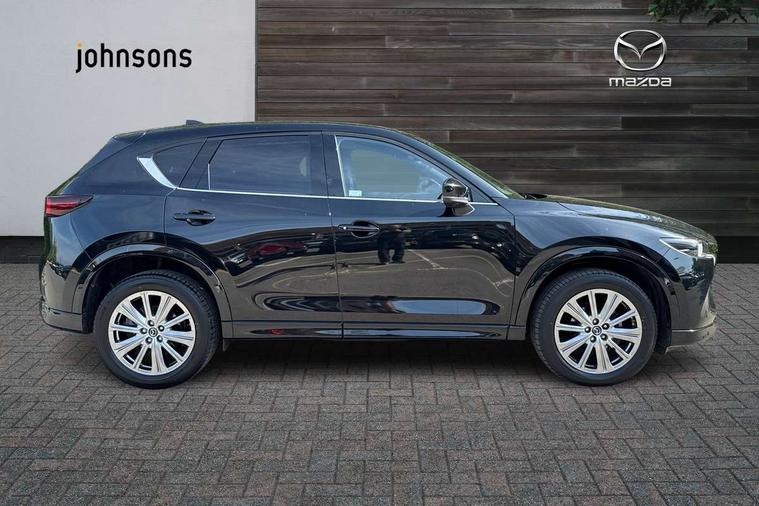 10.25" display with Mazda Connect infotainment, 360 degree surround camera, 7" colour TFT display, Advanced blind spot monitoring, Bluetooth connectivity with voice control, Collision prevention assist, Connected services, Cruising Traffic Support, Drive mode selector, Driver attention alert system, Electric power steering, Emergency stop signalling system, Engine start/stop button, Forward collision warning, Front and rear parking sensors, Integrated navigation system, Intelligent speed assist, Lane departure warning system, Lane keep assist, Off road modes, Power liftgate, Qi wireless phone charging, Radar cruise control with Stop and Go, Rear cross traffic alert, Service indicator, Traffic sign recognition (TSR), Trip computer, Windscreen projected colour active driving display (HUD) with memory, Wireless apple car play/android Auto, Cylinder Deactivation, I-ELOOP, i-stop, AM/FM radio, Bluetooth audio streaming, Bose premium sound system with 10 speakers, DAB Digital radio, Multimedia Commander including separate volume dial, Steering wheel mounted audio controls, Adaptive LED Headlights, Automatic headlights, Body colour door mirrors, Body colour roof spoiler, Body coloured front and rear lower bumper mouldings, Body coloured tire arch and side mouldings, Coming/leaving home lighting function, Door mirror integrated indicators, Dual large chrome tailpipes, Dusk sensitive headlamps, Electric front/rear windows with one touch auto up/down, Frameless auto dimming interior rear view mirror, Front grille in gloss black finish, Front grille in gloss black with black accent + chrome signature wing, Gloss black B and C pillars garnish, Gloss black front grille accent, Intermittent rear wash/wipe, LED auto levelling, LED daytime running lights, LED front fog lights, LED third brake light, Power folding and heated door mirrors, Power tilt/slide sunroof, Privacy glass (rear side windows only), Rain sensing front wipers, Real wood inlay dashboard panel, Rear side wing doors, Scuff plates, Shark fin antenna, Signature LED rear combination lights, Variable intermittent front wash/wipe, Vinyl with real wood inlay door trim panel, Windscreen wiper de-icer, 12v electrical power outlet, 3 seat bench in 2nd row, 3 stage heated front seats, 40:20:40 Karakuri fold-flat seat system, 6 way electric adjustable passenger seat, 8 way electric driver seat with lumbar support + memory, Black roof lining, Cargo room flat floor board with waterproof undertray, Driver seat power slide, recline and height adjustment, Driver, Front passenger and two rear grab handles with coat hooks, Driver/passenger front seatback pockets, Driver/passenger sunvisors + illuminated vanity mirrors (drivers with ticket holder), Dual zone climate control, Folding centre armrest with 2 cup holders, Front and rear door pockets, Front centre storage with two cupholders, Front passenger seat power slide, recline and height adjustment, Front seat ventilation, Heated outer rear seats, Heated steering wheel, Humidity sensor, Illuminated glovebox, Interior dome light with integral spotlight, ISOFIX child seat anchorage points attached on outer rear seats, Karakuri tonneau cover, Leather gear knob, Leather steering wheel with unique stitching and chrome centre bezel, Luggage compartment LED lighting, Luggage compartment power outlet, Nappa leather upholstery, Paddle shifts, Rear air vents, Rear headrests, Rear seat recline, Roof mounted sunglasses holder, Single front passenger seat, Three height adjustable head restraints, Tilt/height adjustable steering wheel, USB Connectivity (2x front Type-C, 2x rear Type-B), White interior LED illumination lighting, 3 point front seatbelts with pre-tensioners, 3 rear 3 point seatbelts, ABS, Advanced Smart City Brake Support - SCBS, Child locks on rear doors, Driver and front passenger side airbags, DSTC-Dynamic Stability and Traction Control, Dual front airbags, Electronic brake force distribution, Electronic parking brake with auto hold, ESP, Front and rear curtain airbags, Front passenger airbag deactivation, G-Vectoring control, Hill hold assist, Rear smart city brake support, Seatbelt reminder front and rear, Single stage passenger airbags, Smart brake support with forward obstruction warning, Tyre pressure monitoring system, Automatic door locking when moving off, Deadlock, Immobiliser, Power door locks, Remote central locking, Smart keyless entry, Thatcham Cat.1 alarm, Upper dashboard and door cards wood trim, 19" exclusive design bright alloy wheels, Tyre repair kit,