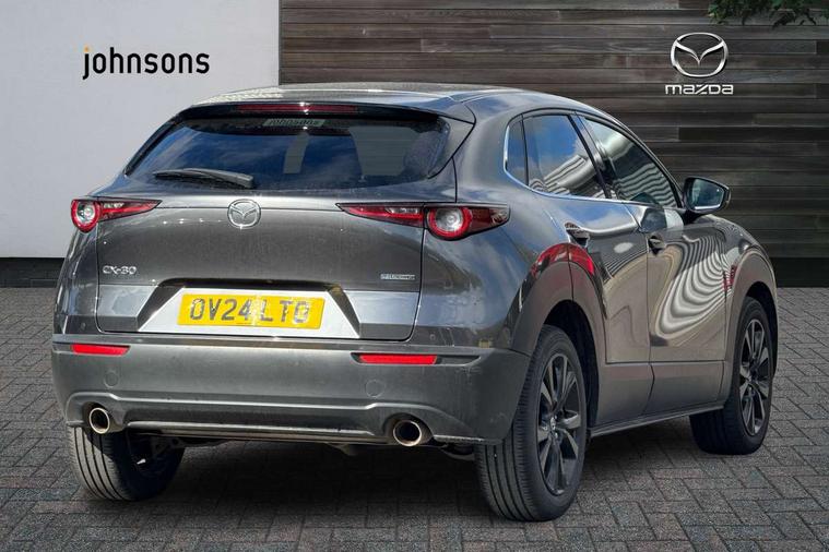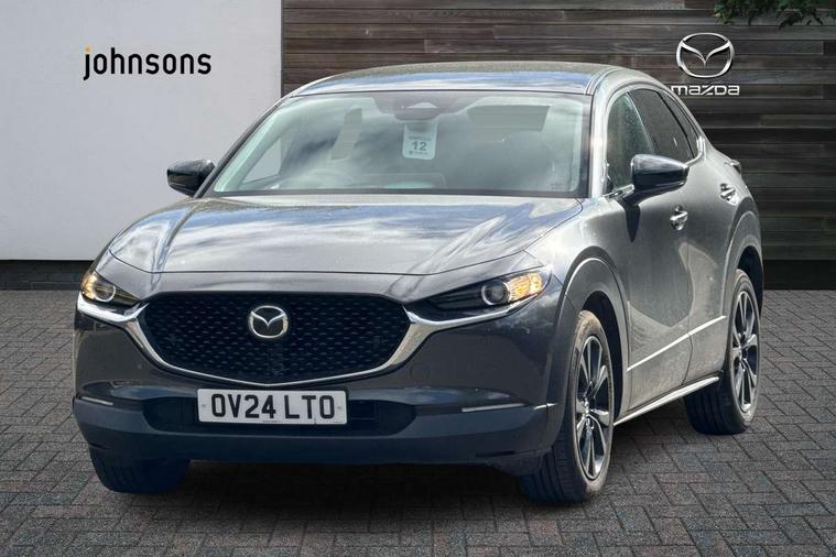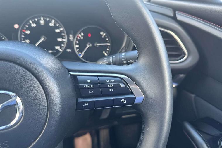 10.25" display with Mazda Connect infotainment, 7" TFT Colour driver instrument panel display, Adaptive cruise control (Mazda radar cruise control) features stop and go, Blind spot monitoring with rear cross traffic alert, Drive mode selector, Driver attention alert system, E-call with GPS, Emergency stop signalling system, Engine start/stop button, Front and rear parking sensors, Integrated bluetooth, Integrated Mazda navigation system, Intelligent speed assist, Lane keep assist system (LAS) with Lane departure warning system (LDWS), Mazda connected services, PAS, Power lift gate, Qi wireless charging, Reversing camera, Service indicator, Tailgate, Traffic sign recognition, Trip computer, Windscreen projected colour active driving display (HUD), Wireless Apple CarPlay/Android Auto, i-stop, 2 USB charging ports in front inner central armrest, AM / FM / DAB radio with 8 speakers, Multimedia Commander including separate volume dial, Steering wheel mounted audio/bluetooth controls, Auto dimming rear view mirror, Auto headlight levelling, B-pillar and C-pillar garnishes in piano black finish, Black electrically adjustable, heated auto power folding door mirrors with integrated indicators, Chrome finish signature wing in front grille, Coming/leaving home lighting function, Dual chrome exhaust, Dusk sensing headlights, Electric front/rear windows with one touch auto up/down, Front kodo turn signal, Gloss black front grille, Gloss black rear roof spoiler, LED headlights with halogen daytime running lights and high beam control, LED rear combination lights, Privacy glass (rear side windows and rear screen), Rain sensing front wipers with adjustable speed and intermittent wipe, Rear fog lights, Rear side wing doors, Rear wiper, Third brake light, 12V power outlet in centre console, 3 seat bench in 2nd row, 60/40 split fold down rear seats, Chrome interior trim accents with steering wheel centre bezel, surround of engine start / stop button and glove box handle, Cloth upholstery with red stitching and interior accents, Dark cloth door panel inserts, Dashboard, door cards and front centre armrest in black cloth with red stitching, Driver and front passenger visors with covered vanity mirror and driver ticket holder, Driver seat manual slide, recline, height and seat tilt adjust, Driver, front passenger and two rear door storage, Driver, Front passenger and two rear grab handles with coathooks, Dual zone climate control air conditioning with rear air vents, Folding rear centre armrest with two cup holders, Front and rear (x3) head restraints, Front and rear LED lighting, Front armrest, Front centre storage with two cupholders, Front passenger seatback pockets, Front passengers seat manual slide, recline and height adjustment, Gear shift indicator, Glovebox illumination, Heated front seats with 3 stage setting, ISOFIX child seat anchorage points attached on outer rear seats, Leather wrapped gear shift knob, Leather wrapped steering wheel with telescopic and tilt adjustment, LED luggage compartment lighting, Light roof headlining and pillars, Roof mounted sunglasses holder, Single front passenger seat, 3 point ELR front seat belts x2 with pretensioners, 3 point ELR rear seat belts, Anti-lock braking system (ABS), Drivers knee airbag, DSC - Dynamic Stability Control, Electronic parking brake with auto disengage function and auto hold function, Front and rear curtain airbags, Front dual stage driver and single stage front passenger airbags, Front passenger airbag cut-off switch, Front side airbags, Front smart city brake support, G-Vectoring control plus, Hill launch assist, Manual child lock in rear doors, Mild Hybrid system with regenerative braking, Seatbelt reminder for driver/front passenger and rear seats, Traction control system (TCS), Tyre pressure monitoring system (TPMS), Remote central locking with deadlocking and automatic door lock when driving, Smart keyless entry, Thatcham accredited alarm and immobiliser, 18" Black metallic alloy wheels, Emergency tyre repair kit,