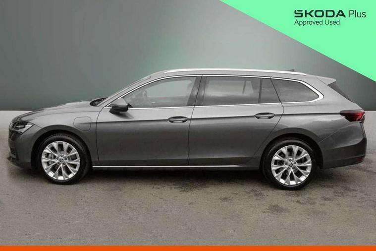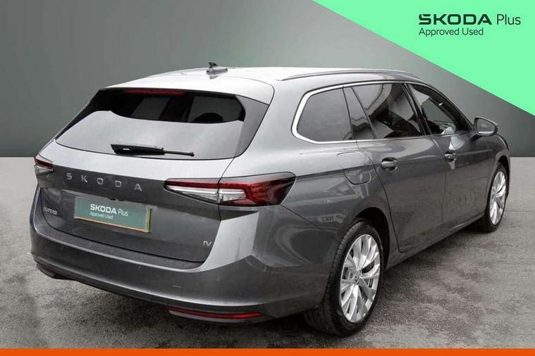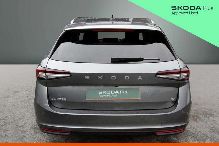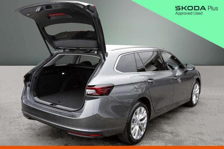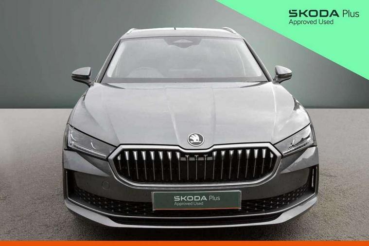 13" touchscreen display with satellite navigation, 4x USB-C ports (2x in front centre console and 2x in rear) (45W), Adaptive cruise control with speed assist, lane assist plus and traffic tram assist, Blind spot detection with door exit warning, Bluetooth system, CareConnect and Emergency Call, ChatGPT functionality, Drive mode selection, Driver fatigue sensor, Electrically operated boot with virtual pedal, Front assist with extended predictive pedestrian protection, Front cross traffic assist, PAS, Quick start all heating software functionality, Rear view camera with washer, Stop/start engine system, Traffic sign recognition, Turn assist with evasive assistance, Virtual Cockpit - 10.25" digital display, Voice control system, Wireless charging for one smartphone (15W) with cooling function, Wireless smartlink apple carplay, SmartLink+ android auto, DAB Digital radio, Display cleaner, FM radio connection, Web radio connection, Acoustic side windows and interior noise suppression, Backdrop lighting, Body colour door handles, Body coloured door mirrors, Chrome roof rails, Chrome window surround, Dynamic range control with poor weather light and integrated fog light, Electrically adjustable, heated, folding and driver side auto-dimming door mirrors with memory function, integrated indicators and logo projection, Frameless auto-dimming rear view mirror with USB-C, Front windscreen with heat-insulating glass, Ice scraper in fuel tank cap, LED 3rd brake light, Light assist with High beam control, Light assistant (coming/leaving home/tunnel light), Privacy glass, Rear fog lights (x2), Rear roof spoiler, Rear side wing doors, Rear windscreen wiper, Tow bar preparation, Unique dark chrome grille surround with dark chrome rib elements, Windscreen wipers with rain sensor, 12V socket 1x centre console 1x boot, 12V socket and 2x cargo elements in boot, 14-way electrically adjustable, memory, front seats with 4-way pneumatic lumbar support, and extendable thigh support with smart comfort entry aid, 2 spoke multifunction steering wheel with DSG paddles, 3 seat bench in 2nd row, 4x foldable bag hooks in boot, 60:40 Split folding rear seats, Advanced massage function for front seats, Bottle holders in the front doors 1.5 litre bottle and rear 1.5 litre bottle, Cup holder in front with easy open mat, Front and rear footwell illumination, Front armrest with storage box, Front sports comfort seats, Heated and ventilated front seats, Height adjustable front and rear head restraints, Height adjustable front passenger seat, Illuminated glovebox, Interior lights with control switches, Isofix child seat fittings in outer rear and front passenger seats, LED front and rear reading lights, Multi colour ambient lighting, Single front passenger seat, Storage pockets on back of front seats, Sun visors with illuminated vanity mirrors, Ticket holder on A Pillar, Tri zone climate control, Umbrella in driver's door, Light and view package - Superb, Transport package - Superb Estate, 3 rear seatbelts, 8 Airbags - Front driver and passenger, front side driver and passenger, centre, curtain front and rear, drivers knee, Crew protect assist, Driver and passenger seatbelts with warning light, Electronic parking brake, ESC including ABS, EBV, MSR, ASR, EDS, HBA, DSR, RBS, CBC, multi-collision brake (MKB) and Auto hold, Hill hold assist, Power operated child lock in rear doors, Alarm with interior monitoring tilt sensor and back up horn, Backrest remote release from trunk, Electronic engine immobiliser, Keyless start/stop, Remote central locking with SAFE system, Third key, Walk away locking, Decorative front door sills, Tyre repair kit,