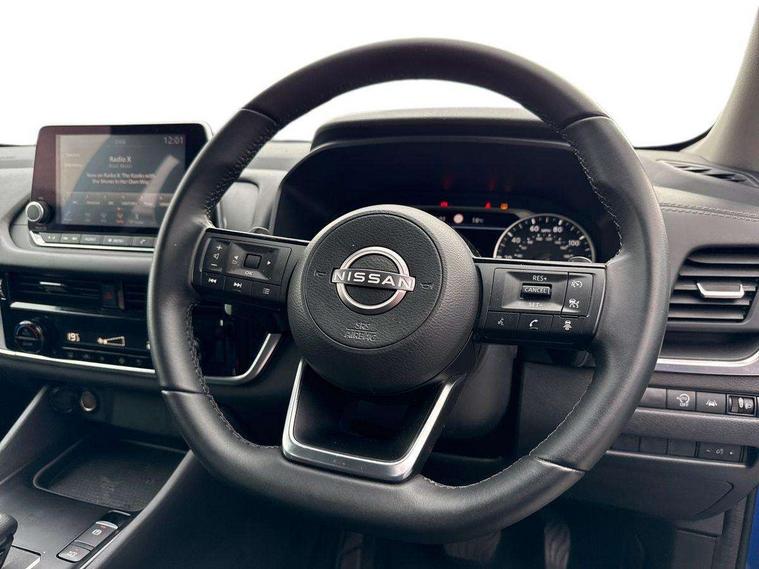 7" High definition full colour TFT screen combimeter, Android auto/Apple CarPlay (Wired), Blind spot warning, Drive modes (sport, normal, eco), Electric speed sensitive power steering, Emergency and breakdown call, Idle stop/start system, Intelligent Cruise control (ICC), Intelligent driver alert system, Intelligent forward collision warning, Intelligent lane intervention, Lane departure prevention, Lane departure warning system, Maximum speed limiter, Nissan connect 8" touchscreen infotainment system, Push button starter, Rear cross traffic alert, Rear parking sensors, Rear view camera, Traffic sign recognition with legal speed adjustment, Trip computer, 6 speakers, AM/FM audio system with DAB, Bluetooth audio streaming, Front USB connections (Type-A and Type-C), Auto dimming rear view mirror, Auto rear wiper when reversing, Automatic hazard signal with emergency stop signal, Body colour mirror caps, Body coloured door handles, Bodyside mouldings, Chrome side window finisher, Door handle with button, Electric auto folding door mirrors, Electrically adjustable and heated door mirrors with LED turn indicator, Follow me home headlights, High beam assist, Intelligent auto headlights, LED daytime running lights, LED Headlights, LED rear lights, One touch front and rear electric windows with remote opening and closing, Partially body coloured bumpers, Rear reversing light (bulb lighting), Rear roof spoiler, Rear side wing doors, Shark fin antenna, Splash free rain sensing wipers, Three blink turn signal, 12v power socket in dashboard and luggage, 2x Rear coat hooks, 3 bench rear seats in 2nd row, 3 rear headrests, 4 folding assist grip, 6-way manually adjustable driver's seat, 60/40 split folding rear seat bench, Centre console storage tray, Chrome interior door handles, Cloth monoform upholstery, Driver and front passenger sunvisors with illuminated vanity mirrors, Driver seat back pocket, Dual zone automatic climate control with pollen filter, Electrically adjustable lumbar support for driver, Front and rear door storage, Front centre console and armrest, Front cupholders x 2, Front door with bottle holders, Glovebox with light, Hard trunk cover, Height adjustable driver's seat, Height adjustable front headrests, Height adjustable passenger seat, Leather steering wheel, Luggage space lighting, Manually adjustable passenger (slide recline + lifter), Multifunction steering wheel, Passenger seat back pocket, Rear armrest with 2 cupholders, Rear door bottle holders, Single front passenger seat, Steering wheel gearshift paddles, Steering wheel switches, Sunglasses holder, Tilt/telescopic adjustable steering wheel, Two rear isofix child seat anchorage points with top tether, 3x3 point rear seatbelt pretensioners + load limiters, ABS with EBD and brake assist, Active brake limited slip, Auto hold function, Child locks on rear doors, Curtain and front side, far side airbags, Driver and passenger airbags, Driver, passenger and 2nd row rear seat belt reminder, Electronic parking brake, Front seatbelt pretensioners + load limiters, Height adjustable front seatbelts, Hill start assist, Intelligent blind spot intervention, Intelligent front emergency braking with pedestrian, cyclist recognition and junction assist, Intelligent rear automatic braking, Tyre pressure monitoring system, Vehicle dynamic control, Capless fuel filler, Engine immobiliser, Intelligent Key, Remote central door locking with deadlocking, Thatcham Cat.1 alarm, Interior instrumental panel A finisher, 17" Alloy wheels, Tyre puncture repair kit,