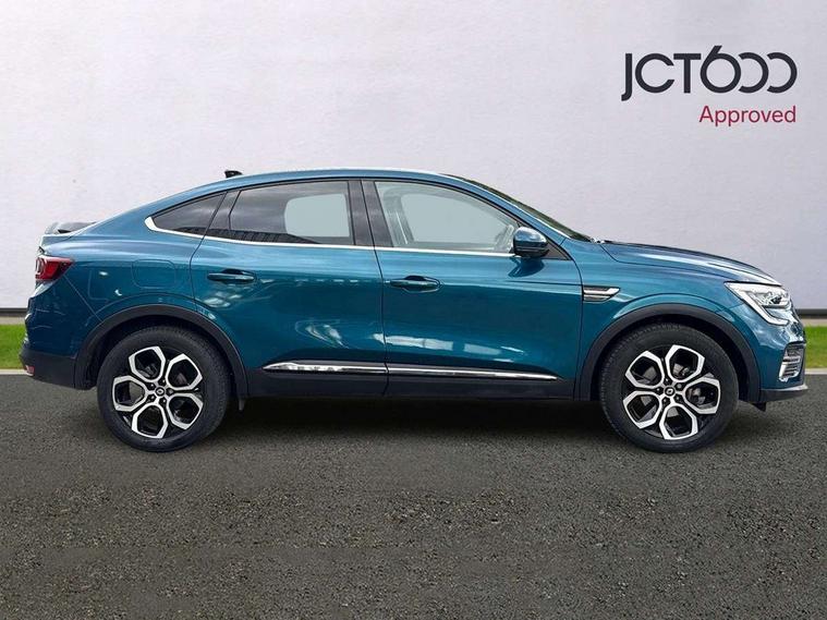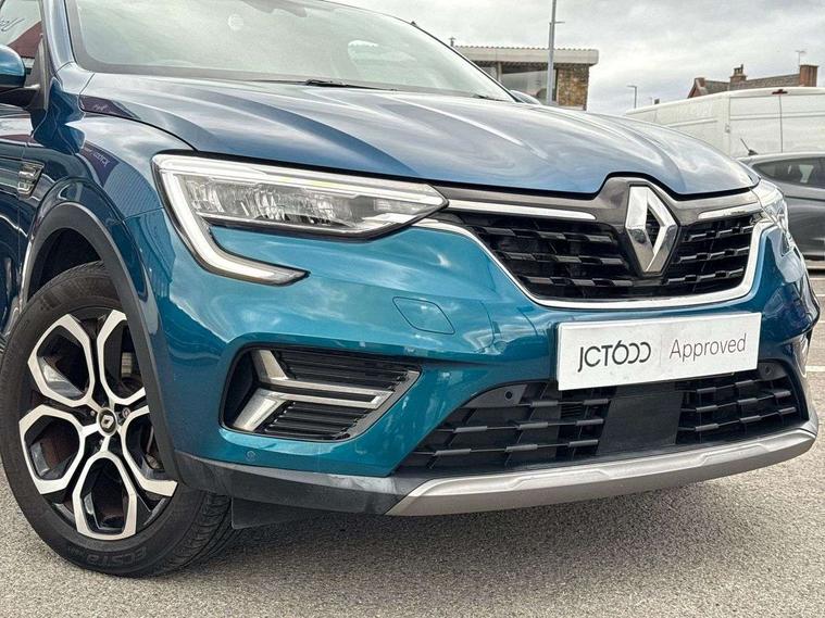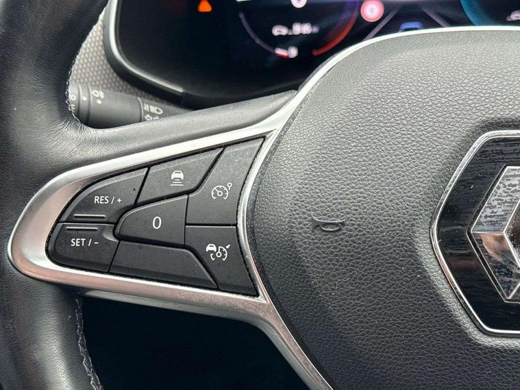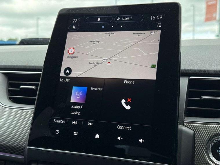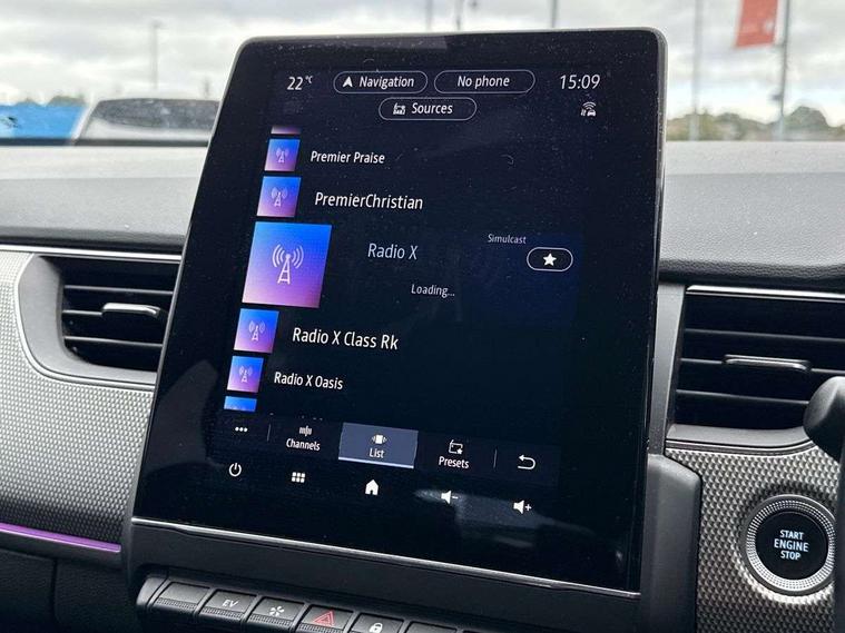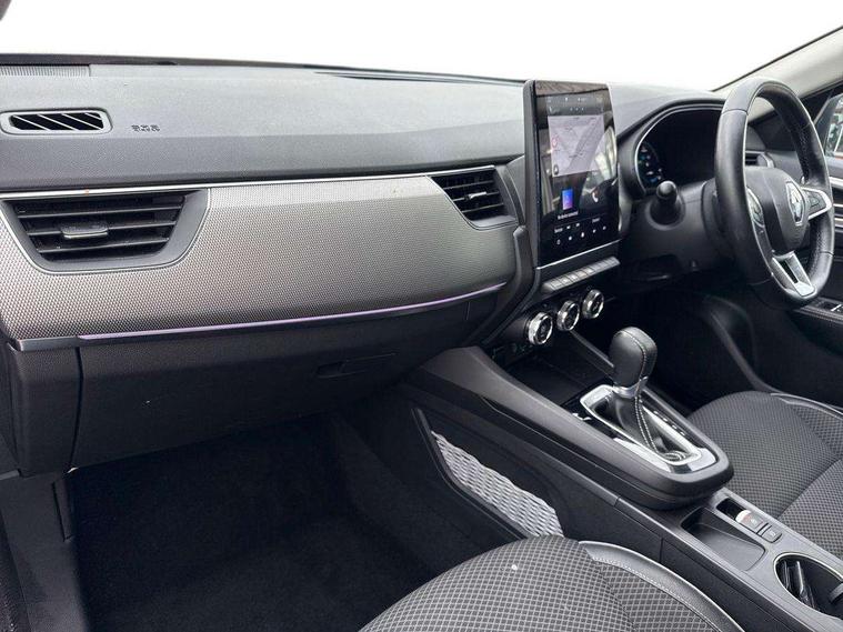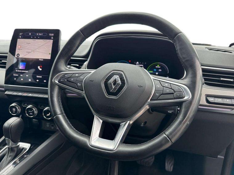 7" TFT Driver information display, Blind spot warning, Bluetooth system, EASY LINK 9.3" portrait touchscreen with navigation, Google search and traffic information, eCall emergency call system, Eco mode, EV button to activate pure mode, Front and rear parking sensors, Gear change indicator, Lane departure warning, Lane keep assist, Multi-sense - 3 driving modes and 8 ambient lighting, Rear cross traffic alert, Rear view camera, Renault automatic emergency assist, Smartphone integration compatible with Apple CarPlay and Android Auto, Traffic sign recognition with over speed prevention, Trip computer, Variable assistance electric power steering, Arkamys classic sound system with 6 speakers, DAB radio, USB port, 3rd brake light, Auto dimming rear view mirror, Automatic headlights, Automatic high / low beam, Automatic windscreen wipers with rain sensor, Black side door protection with chrome insert, Body coloured bumpers, C-shaped LED front signature lighting, Chrome decopart on wing (fender molding), Chrome window lower lining, Extra tinted rear windows and tailgate, Front and rear electric windows, Front driver window with one touch facility and anti-pinch function, Front grille with chrome on upper part, Full LED headlights, Grey front and rear skid plates, Heated rear window, Rain sensor, Rear windscreen wiper, Shiny black shark fin antenna, Side mirrors adjustable electrically, electrically foldable, with defrosting and temperature sensor, automatically foldable at vehicle closure, 3 seat bench in 2nd row, 60:40 split and fixed base rear seats, Automatic climate control with combined filter, humidity sensor and AQS, Central console with storage, Front and rear head restraints, Height and reach adjustable steering wheel, ISOFIX child seat fixing points on rear outermost seats, Leather steering wheel, LED front and rear roof lights, Rear air vents, Single front passenger seat, 3x3 point rear seat belts, ABS+EBA, Active emergency braking system, B Brake Mode - One pedal driving with increased regenerative braking, Distance warning alert, Driver airbag, Driver and passenger front and side airbag deactivation, Driver and passenger side airbags, Driver height adjustable seat belt, Electronic parking brake with auto hold, ESC (Electronic Stability Control), Front and rear no seatbelt warning sound, Front curtain airbags, Front head airbags, Hill start assist, Passenger airbag, Tyre pressure warning light, Anti drill door locks and locking fuel cap, Central door locking, Deadlocking system, Hands free keycard with Keyless access and start, RAID (Renault Anti-Intruder Device) automatic door locking, Rear side wing door and window child locking function (front driver door control panel), Superlocking, Thatcham alarm, 18" Pasadena diamond cut alloy wheels with grey inserts,