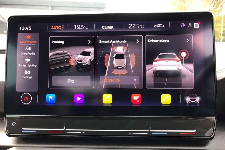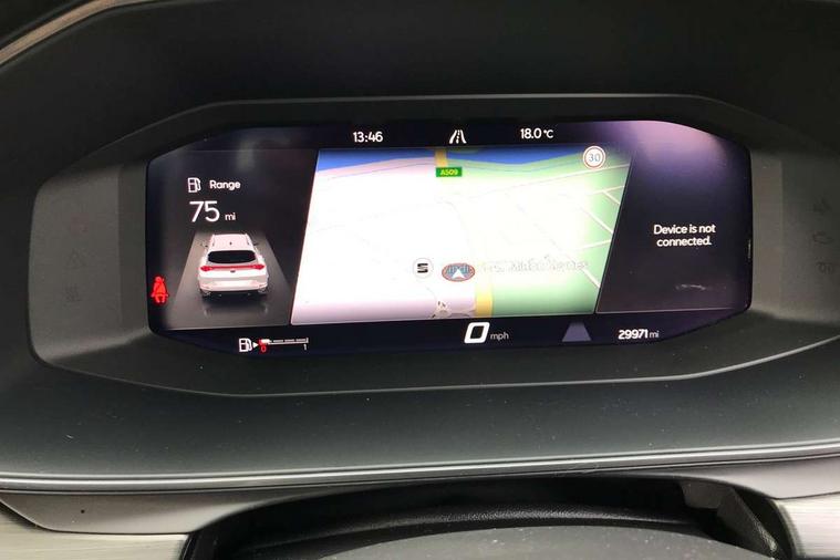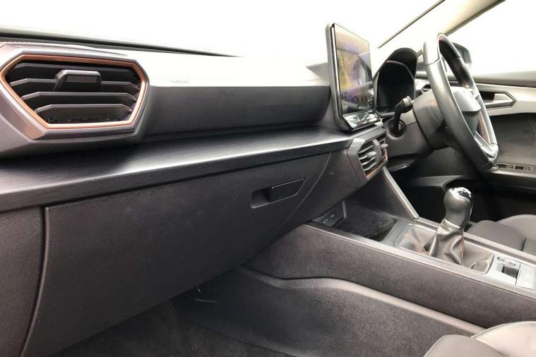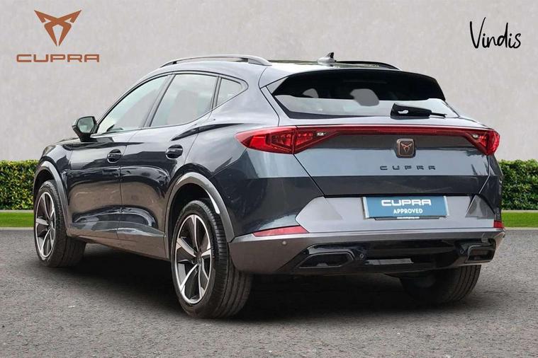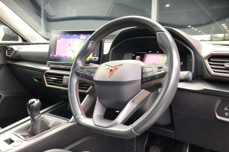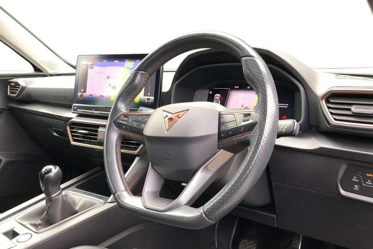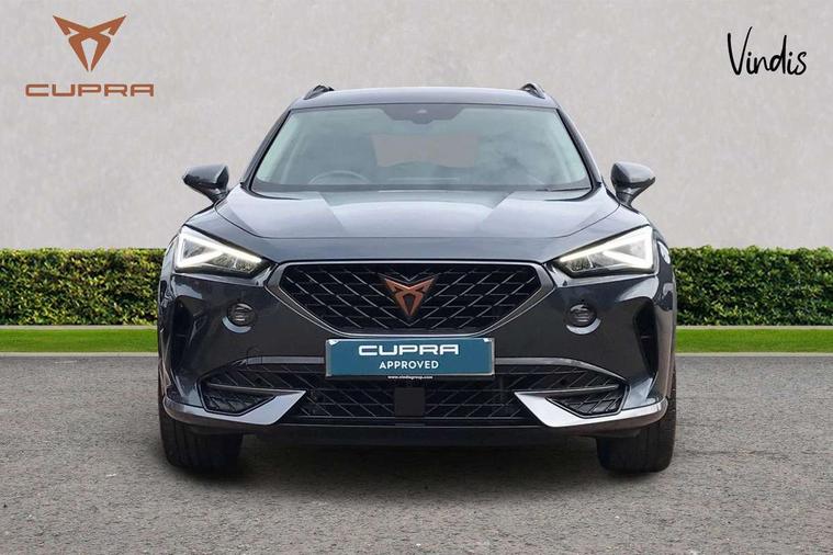 Copper and aluminium interior detailing, Navigation system pack with 10" navigation system - Formentor, Safety and driving pack (M) - Formentor, Anti theft alarm system, Keyless entry and start system (KESSY), Locking wheel bolts, 2 front and 2 rear USB type C sockets, Auxiliary input socket, DAB radio, 3 point seatbelts on all rear seats, ABS, Brake control system - ESC and brake booster, Child proof door locks, Driver and front passenger airbags with front passenger airbag de-activation, Electronic parking brake, Front and rear disc brakes, Front side curtain airbags, Hill hold control, Seat belt reminder for front and rear seats, Tyre pressure monitoring system, Auto dimming rear view mirror, Body colour door handles, Body coloured bumpers, Dark grey wing mirror, Daytime running light with automatic headlight control and coming home feature, Dynamic headlight range control, Electric front/rear windows, Electrically adjustable, heated and folding door mirrors, Front fog lamps with cornering function, Gloss black roof rails and window surrounds, LED Headlights, LED Taillights with dynamic indicator, Rain sensing wipers, Rear diffuser with black simulated exhaust pipes, Rear wash/wipe, Tinted rear windows, Welcome lights, 12v power supply in centre console, 12V socket, 12v socket in loadspace, 2 front and 2 rear reading lights, 230V socket, 60/40 split rear bench seat with armrest and mechanical seat release, Dust/pollen filter, Front and rear head restraints, Front centre armrest, Height/reach adjust steering wheel, Illuminated interior front door sills, Illuminated sunvisor with mirror, Interior ambient lighting, Isofix, Leather multi function steering wheel, Luggage tie-down hooks, Manually adjustable height and lumbar support for front seats, PVC/Cloth upholstery with copper stitching + Sport seats, Three zone climate control with control panel in rear, Variable luggage/load compartment floor, Digital cockpit and configurable dashboard, Driver alert system, Driving profile selection, Forward collision warning with automatic braking, Lane assist, PAS, Predictive adaptive cruise control with speed limiter, Rear parking sensors, RPM, trip computer, outside temp gauge, instrument light brightness, low fuel warning light, lights on reminder, gearshift indicator, Service interval indicator, Start/stop system with regenerative braking, Wireless apple carplay, Wireless phone charger, Electronic locking differential and dynamic traction support, Standard suspension,