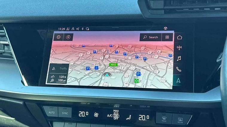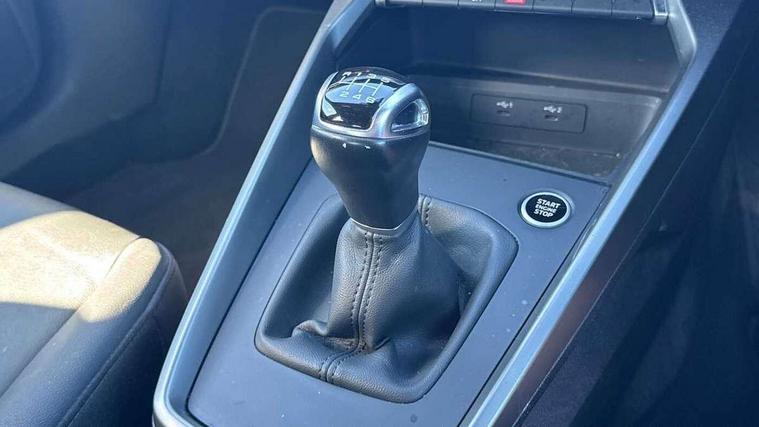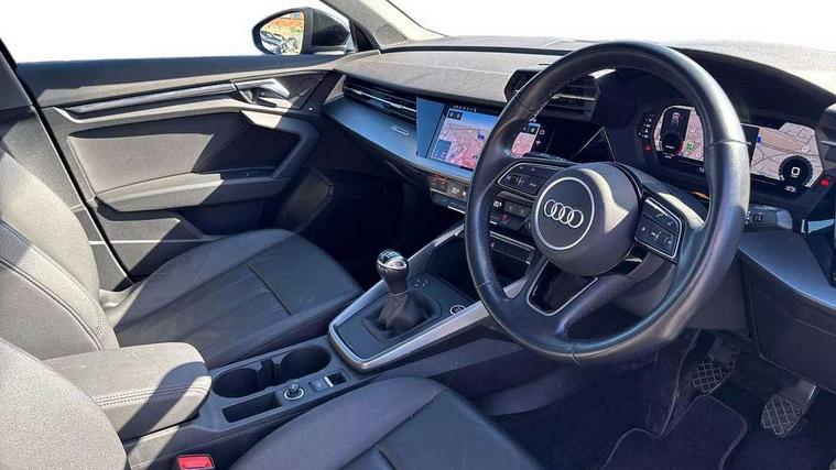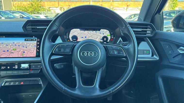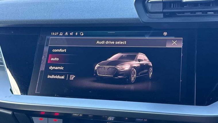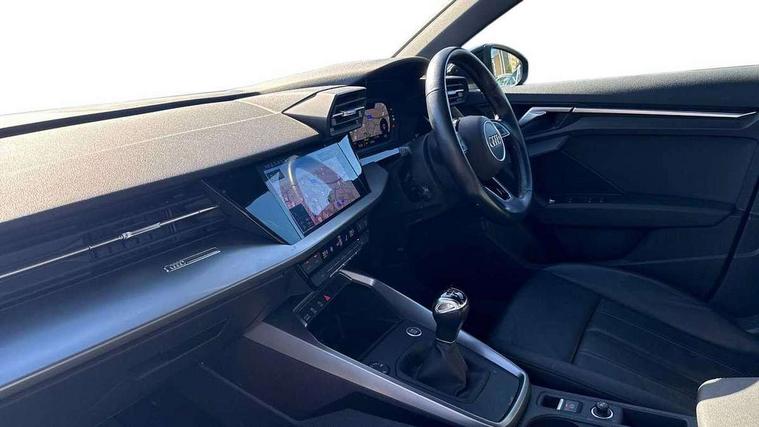 Audi connect emergency call and service, Audi drive select (Auto, Comfort, Dynamic and Individual), Audi smartphone interface, Audi Virtual Cockpit - 10.25" digital and colour instrument cluster, Automatic start/stop system with recuperation, Bluetooth interface, Collision avoidance assistant, Cruise control, Electromechanical power speed sensitive steering, Lane departure warning system, MMI Navigation Plus with high resolution 10.1" colour touch screen display, Rear parking sensors, Service indicator, Trip computer, Voice control system with natural language interaction, Standard suspension, 2xUSB-C connection with data and charging functions, 6 passive loudspeakers, DAB Digital radio, Acoustic glass windscreen, Aluminium window trim, Auto dimming frameless rear view mirror, Body colour exterior mirrors, Body colour roof spoiler, Electrically adjustable/heated/folding/auto dimming door mirrors with integrated LED indications + kerb view function for passenger side, Front electric windows, LED daytime running lights, Light and rain sensors, Rear electric windows, Rear window, rear door windows and rear side windows in clear glass, Rear wiper, 12V socket and storage compartment in front centre console, 40/20/40 split folding rear seat bench with cupholder, Dual zone electronic climate control, Front and rear centre armrest, Front and rear headrests, Front door sill trims with aluminium inlay, Front/rear floor mats, Height and reach adjustable steering wheel, Interior lighting - Front and rear roof module including reading lights, glove compartment light and right hand side, Luggage compartment floor covering, Manual boot compartment lid, Manually adjustable front seats, Seat side bolsters, Steel grey cloth headlining, Twin leather upholstery, Aluminium interior elements pack - A3 Sportback, Sport styling pack - A3 Sportback, 3x3 point rear seat belts, Driver and front passenger airbag with passenger airbag deactivation, Electronic Stabilisation Control (ESC) including ABS, ASR and EDL, First aid kit with warning triangle and 2 safety vests, Front side airbags with head airbags and interaction airbag, Hill hold assist, Pre-sense front with pedestrian and cyclist detection, Seatbelt monitoring, Tyre pressure loss indicator, Anti theft alarm, Anti-theft wheel bolts, Electronically operated child lock, Immobiliser, Remote control central locking, Inlays with silk effect paint in platinum grey,