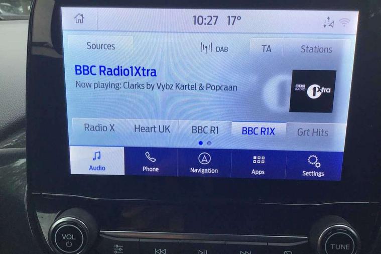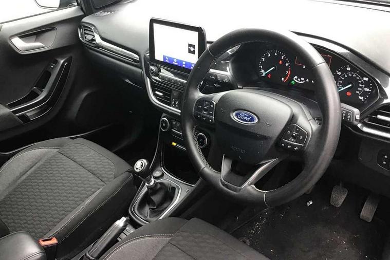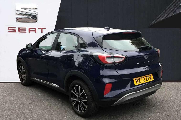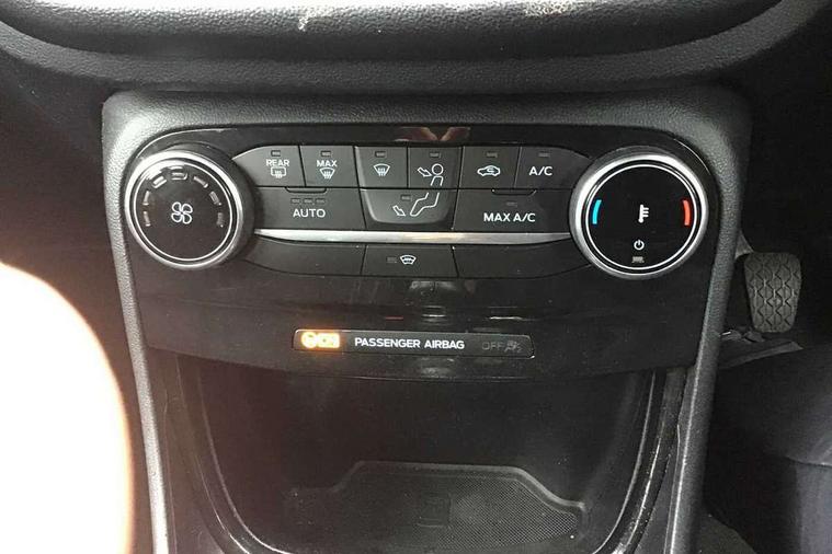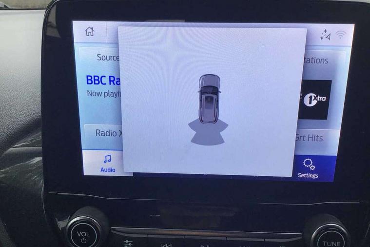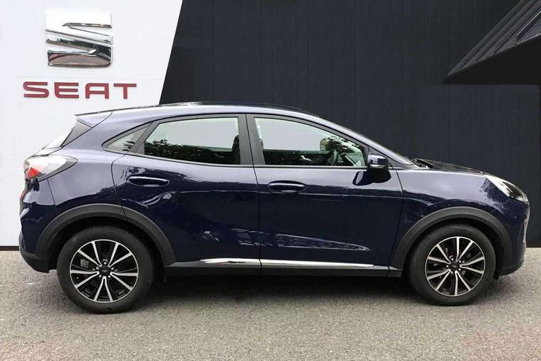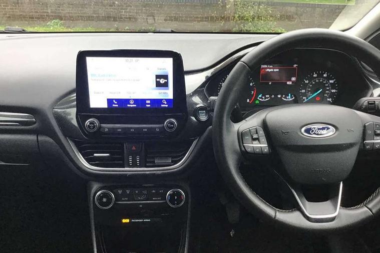 Driver impairment monitor, Emergency call service, Ford easy fuel, Lane keeping aid with lane departure warning, Power assist steering, Power start button, Rear parking sensor, Selectable drive modes(Normal, sport, Eco, trail, slippery), Speed sign recognition, Standard suspension, Automatic headlights with auto high beam, Automatic rain sensing wipers, Body colour rear spoiler, LED rear lamps, Power foldable heated door mirrors with puddle lamps, Projector headlamps with LED day time running lights and front fog lamps, Quickclear heated windscreen, Rear side wing doors, Rear wiper, Third brake light, 3 seat bench in 2nd row, Centre console with armrest and stowage, Electronic automatic temperature control (EATC), Ford megabox extended bootspace, Front and rear head restraints, Front floor mats, Manual 2 way passenger seat adjustment, Manual 4 way driver seat adjust with lumbar adjustment, Sensico leather steering wheel/gear knob/handbrake, Single front passenger seat, Titanium cloth upholstery, Ford SYNC 3 navigation pack - Puma, 3 rear seatbelts, Child safety lock, Electronic stability control (ESC) and hill start assist, Pedestrian/cyclist detection & post-collision braking, Pre collision assist system, Tyre pressure monitoring system (TPMS), Thatcham alarm, 17" 10 spoke absolute black machined finish alloy wheel,