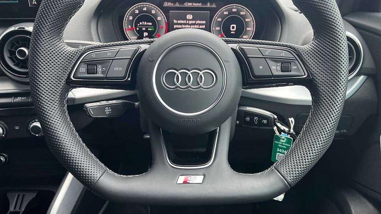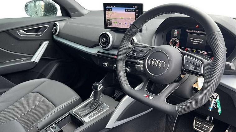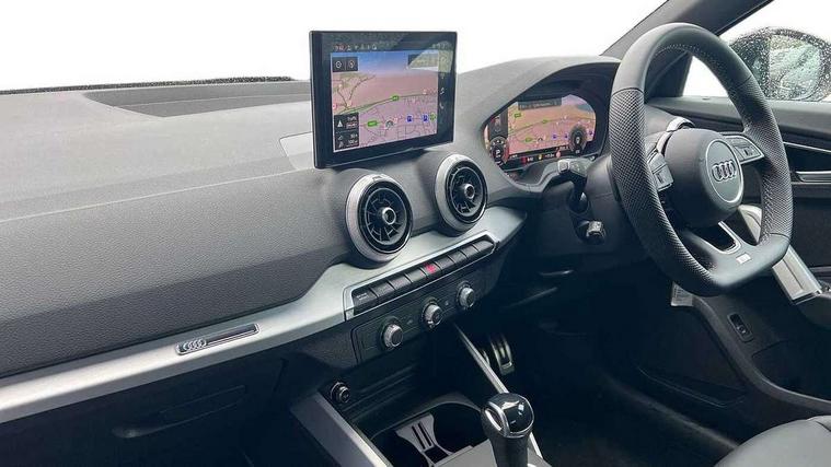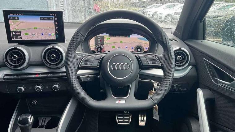 3D map display, Audi connect navigation and infotainment includes innovative services, Audi connect remote and control connects your vehicle to your smartphone, Audi drive select: S tronic - power steering assistance + engine + gearshift (modes: comfort, auto, dynamic, efficiency, individual), Audi smartphone interface - Apple carplay/Android Auto, USB connect, 2xSDXC card readers, voice control for navi, telephone, music and 3rd party apps, Audi virtual cockpit, Automatic start/stop system with recuperation, Bluetooth interface includes bluetooth audio streaming, Camera based traffic sign recognition, Cruise control, Distraction and Fatigue warning, E-call, Jukebox hard drive memory for music (10GB), Lane departure warning, MMI navigation plus with 8.8" touchscreen, Natural voice recognition, Power operated tailgate, Progressive steering, Rear parking sensors, Sport suspension, 6 passive loudspeakers, DAB Digital radio, USB type C port, Audi beam, Auto dimming rear view mirror, Black window trims, Bumper in full body colour paint finish, Electrically adjustable, folding, auto dimming and heated door mirrors with integrated LED side indicators, Front windscreen with grey tinted sunband, LED daytime running lights, LED headlights with dipped beam, high beam, position lights, indicators, LED rear lights, LED third brake light, Privacy glass - dark tinted rear and rear side windows from B-pillar backwards, Rear side wing doors, Rear wiper, Variable front intermittent wipers, Wheel arch trims in manhattan grey, 12v socket in front, 3 seat bench in 2nd row, 3 spoke flat bottomed multi-function leather sport steering wheel with gear shift paddles, 4-way electric lumbar support for front seats including manual seat height adjustment for both front seats, 60/40 split folding rear seat bench, Black carpets, Black cloth headlining, Front and rear head restraints, Front centre armrest, Front sport seats, Front/rear floor mats, Height/reach adjust steering wheel, Illuminated door sill trims with S logo, ISOFIX child seat mounting in front passenger and rear outer seats, Manual air conditioning, Single front passenger seat, Stainless steel pedals, Black styling pack - Q2, 3x3 point rear seatbelts, 6 airbags - Front, curtain and front side airbags, Electromechanical parking brake, Electronic stabilisation control including ABS, ASR and EDL, Front passenger airbag deactivation, Hill hold assist, Pre-sense front with pedestrian recognition, Seatbelt monitoring, Tyre pressure warning light with visual and acoustic warning, Warning triangle and first aid kit, Anti theft alarm, Anti theft wheel bolts, Electronically operated child locks, Remote central door locking, Aluminium interior element, Black dashboard, Gloss black centre console, Matt brushed aluminium trim inlays, Tool kit,