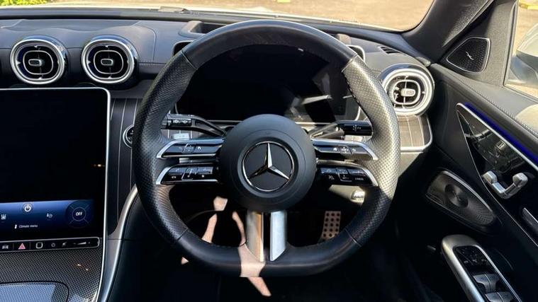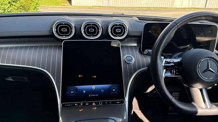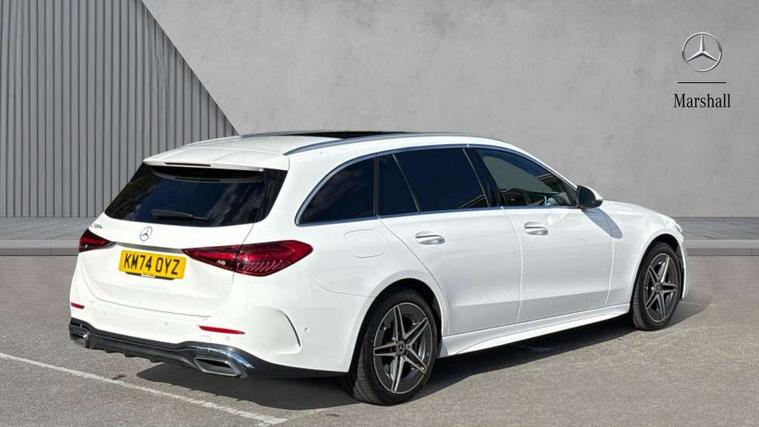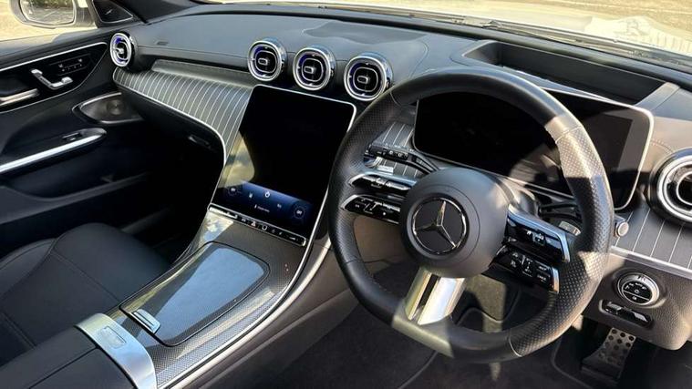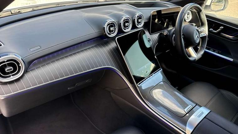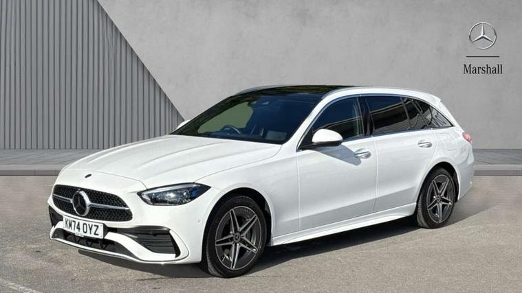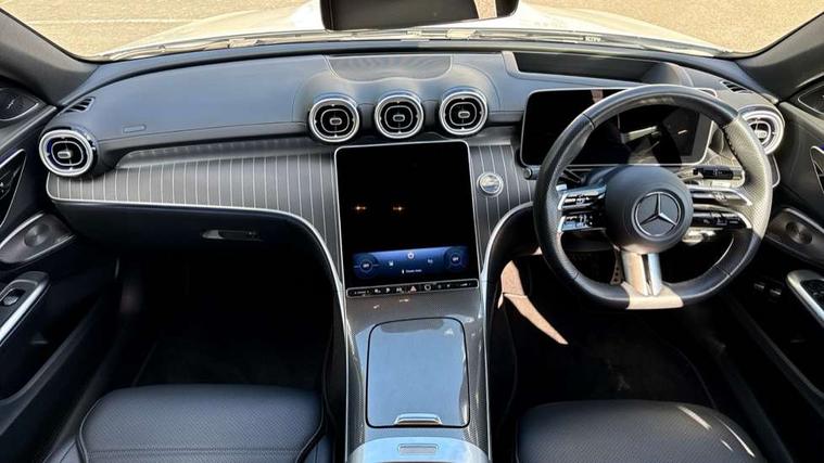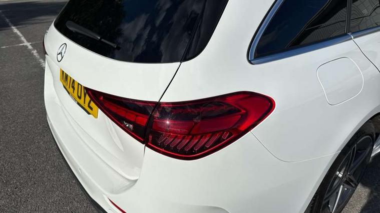 11.9" high resolution multimedia colour display, 12.3" digital instrument cluster display, Acoustic ambient protection, Active parking assist with PARKTRONIC, Attention assist, Charging services plus, DYNAMIC SELECT with a choice of driving modes (Comfort, ECO, Sport, Sport+, Individual), E-call, Extended MBUX functions, Finger print sensor, Fluorescent jacket for driver, Hard disc navigation, Head up Display, MBUX navigation premium, Mercedes me remote services, Outside temperature gauge, Service indicator (ASSYST), Smartphone integration, Sports direct steer speed sensitive steering, Status display for rear seat belts in instrument cluster, Tailgate, Traffic sign assist, Wireless charging system for mobile devices, 5m charging cable for household socket (mode 2), 5m charging cable for wall box/public charging stations(mode 3), 9G TRONIC 9 speed automatic transmission, AC/DC charging, Comfort and self levelling suspension, Petrol Particulate Filter, Burmester 3D surround sound system, DAB Digital radio, MBUX multimedia system, Adaptive brake lights, Adaptive high beam assist plus, Aluminium roof rails, AMG body styling front apron, rear apron and side skirts, AMG Line exterior, Body coloured bumpers, Body coloured door mirrors, Digital light LED headlamps, Electric panoramic glass sunroof, Electric windows with one touch opening/closing and obstruction sensors, Electrically adjustable and heated door mirrors, Heat insulating dark tinted glass, LED daytime running lights, LED Indicators, LED tail lights, LED third brake light, Noise acoustic glass, Radiator diamond grille with integrated Mercedes Benz star and louvre silver with chrome pins, Rain sensor with automatic windscreen wiper activation, Rear side wing doors, Rear wiper, Two visible exhaust pipes integrated into rear bumper, 3 seat bench in 2nd row, 40:20:40 split folding rear bench seat, Ambient lighting premium, Ambient lighting with projection of brand logo, AMG floor mats, AMG line interior, Artico man-made leather upholstery, Auto Mercedes-Benz child seat recognition sensor, Black roof liner, Comfort seats, Double cupholder in centre console, Electrically height/reach adjustable steering column, Folding rear seat backrest, Front and rear head restraints, Gearshift paddles on steering wheel, Illuminated door sills with Mercedes Benz lettering, Illuminated glove compartment stowage, Load compartment cover, Multifunction sports steering wheel in nappa leather, Rear top tether child seat ISOFIX attachment, Single front passenger seat, Sunvisors with illuminated vanity mirrors, THERMATIC 2 zone automatic climate control, AIR BALANCE Package - C Class, Boot comfort package - C Class, Easy pack tailgate - C Class, Energizing package plus - C Class, Interior light package - C Class, Keyless go comfort package - C Class, Memory package - C Class, Mirror package - C Class, Parking package with 360 degree camera - C Class, Stowage space pack - C Class, USB package plus - C Class, 3 rear 3 point seatbelts, Active bonnet pedestrian safety measure which detects an impact and raises bonnet, Adaptive brake system with HOLD function and brake drying in the wet, Anti-lock braking system (ABS), Black seat belts, Brake calipers with Mercedes-Benz lettering + perforated front brake discs, Child proof door locks, Drivers knee airbag, Drivers pelvis airbag, Dual stage driver/passenger airbags, Electric parking brake, Electronic Stability Programme (ESP), Front centre airbag between driver and front passenger seats, Front side airbags, Tyre pressure monitoring system, Warning triangle and first aid kit, Window airbags for driver, front passenger and rear passenger, Antitheft alarm system, Interior monitoring system and Increased antitheft protection, Central locking with interior switch, automatic locking and crash sensor with emergency opening function, Chrome surround electric key, Urban guard vehicle protection plus, Black open pore aluminium lines wood trim with centre console in metal structure finish, Dashboard, instrument panel and beltlines in ARTICO man made leather in nappa look, 18" AMG 5 spoke design aerodynamically optimised alloy wheels painted in tantalite grey with high sheen finish, TIREFIT with tyre inflation compressor,