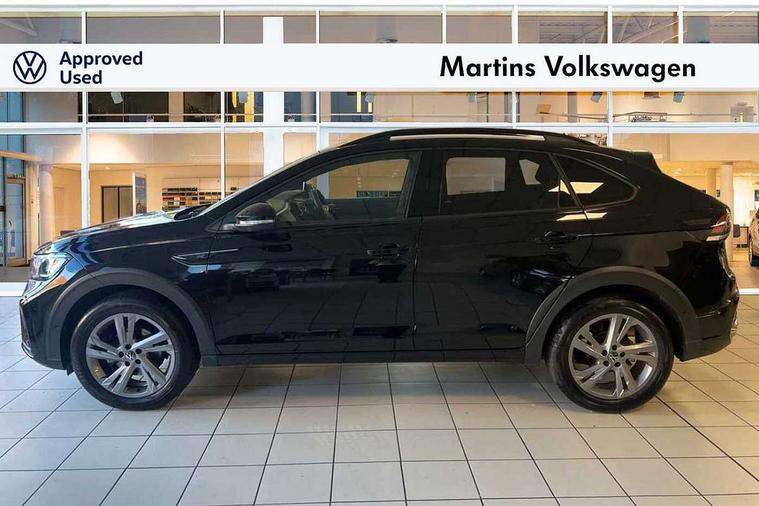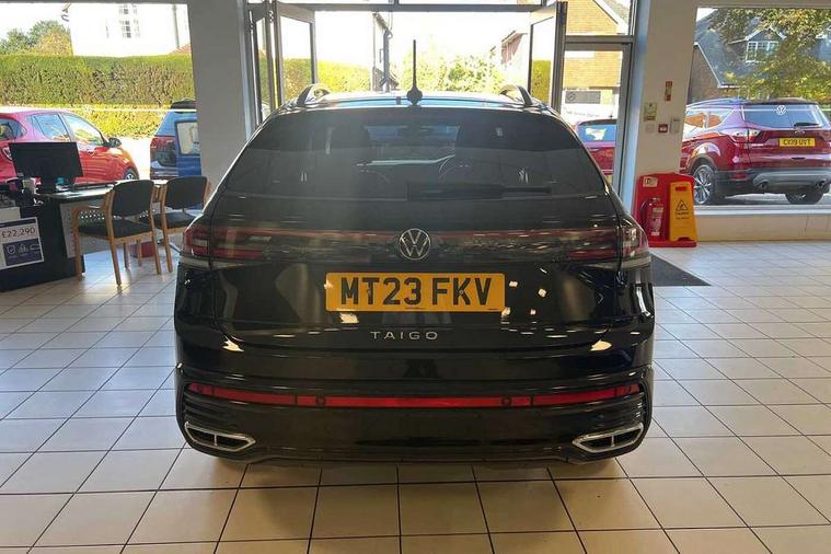 Adaptive cruise control, App-Connect including App-Connect Wireless, Digital cockpit pro - 10.25" high resolution TFT dash display screen with customizable menus and information, Driver alert system, Driving profile selection, e-Call (emergency call), Power Steering, Travel assist including emergency assist, Washer fluid level indicator, Wireless Charging including Bluetooth, Start-stop system with battery regeneration (recuperation - energy recovery during braking), XDS electronic differential lock for improved traction and handling, Digital radio reception (DAB+), Diversity antenna for FM reception, WeConnect plus, Ambient lighting with logo projection, Aspherical driver's exterior mirror, Auto headlights, Body coloured bumpers, Body coloured exterior mirror housings and door handles, Bumpers in R-Line style, Electric windows, External USB type C socket and charging sockets, Front fog lamps with cornering function, Front scuff plates with R-Line logo, Headlight range control, LED headlamps, LED rear combination lamp, LED third brake light, Left convex exterior mirror, Power folding adjustable/heated exterior mirrors and front passenger exterior mirror lowering function, Rear fog light on one side, reversing light on both sides, Rear side wing doors, Rear wash/wipe with intermittent wipe setting, 12V socket in centre console, 2 front reading lights, 3 rear head restraints, 3 seat bench in 2nd row, Air care climatronic air conditoning system with active combination filter and 2-zone temperature control, Black carpets, Black roof lining, Child seat anchor for child seat system i-Size, 2x top tether and child seat anchor in front on front passenger side, Chrome bezel for instrument cluster, vents, door handles + gear shift, Driver and front passenger seat height adjustment, Front + rear carpet mats, Front centre armrest, Front footwell illumination, Front sports comfort seats, Height and reach adjustable steering wheel, Interior ambient lighting and surround lighting, Karoso artvelours cloth upholstery, Leather trimmed gear knob, Leather wrapped multifunction steering wheel, Luggage compartment floor, Luggage compartment light, Lumbar support for driver's and front passengers seat, Seat covers in grey + titanium black, Single front passenger seat, Split folding backrest with centre armrest and unsplit rear seat bench, Stainless steel pedals, Storage compartment under front seats, Sun visors with illuminated vanity mirrors, Chrome Package - Taigo, Drivers assistance pack - Taigo, Light and Sight pack including High beam assist - Taigo, 2 x 3-point seatbelts/outer rear seats with ECE label, 3-point seat belts in front with pretensioner and height adjustment, 3-point seatbelt for centre rear seat, Driver and front passenger airbags with front passenger airbag de-activation, front side and curtain airbags, Driver and front passenger safety-optimised head restraints, Electronic stability control, Extended and predictive pedestrian/ cyclist protection, Front and rear disc brakes, Front curtain and side airbags with center airbag, Hill start assist, Manual rear child locks, Single tone horn, Tyre pressure loss indicator, Anti-theft alarm system with interior monitoring, backup horn, and towing protection, Anti-theft wheel bolts, Grey anodised matte decorative inserts in dash and front door panels, Low rolling resistance tyres,