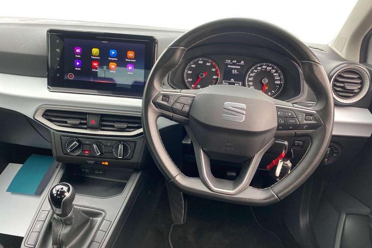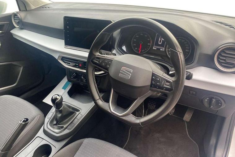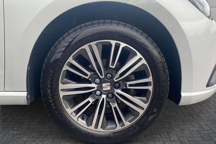 'Lights On' Reminder warning buzzer, 9.2" touchscreen navigation system with type C USB socket, Voice control and DAB/AM/FM radio, Auto start and stop system, Bluetooth audio streaming with handsfree system, Cruise control, Digital clock, E-call, Full link smartphone integration with mirror link, wireless apple carplay, Google android auto + USB Type C cable for apple and android devices, Lane assist, Low fuel warning light, Outside temperature gauge, Power Steering, Seat connect with safety, service, remote and online, SEAT logo boot release, Speed limiter, Trip computer, Comfort suspension, Auxiliary input socket, Radio/MP3 player, SD card slot, Steering wheel mounted controls, Anti theft roof antenna, Body colour bumpers, Body colour door handles, Body colour door mirrors, Dimming interior rear view mirror, ECO LED automatic headlights and LED daytime running lights, Electric front windows, Electric headlight adjustment, Electrically adjustable door mirrors, Front/rear fog lights, Halogen tailights, Rain sensor, Rear side wing doors, Rear wiper, Third brake light, 3 seat bench in 2nd row, 60/40 split folding rear seat, Air conditioning with dust and pollen filter, Chrome interior detailing and grey headlining, Cloth upholstery, Comfort seats, Front courtesy lights, Front cupholders x 2, Front reading lights, Gear shift indicator, Glovebox, Height adjustable front and rear headrests (five), Height adjustable front seats, Height/reach adjust steering wheel, Illuminated boot, Instrument lighting with brightness control, Isofix, Leather multifunction flat bottomed sports steering wheel, Passenger sunvisor, Single front passenger seat, Sunvisors with mirror and driver side card holder, 3 point seatbelts on all 3 rear seats, ABS, Active front headrests, Child locks on rear doors, Electronic stability control, Energy recovery system, Front assist forward collision warning and autonomous emergency braking, Front driver and passenger side airbags with curtain airbag and front passenger airbag deactivation, Hill hold control, Multi-Collision braking, Seat belt reminder for front and rear seats, Tiredness recognition system, Tyre pressure monitoring system, Electronic engine immobiliser, Locking wheel bolts, Remote central locking + deadlocks, 16" Design machined alloy wheels in Nuclear grey,