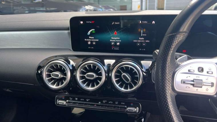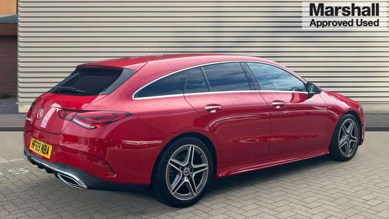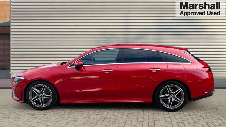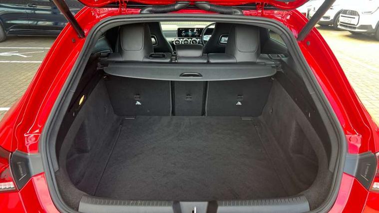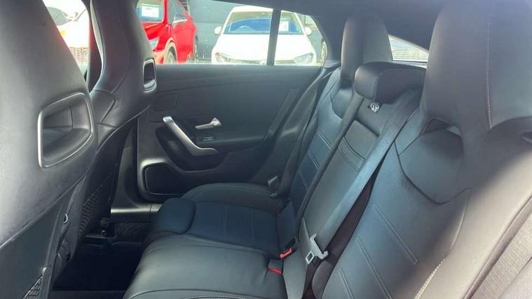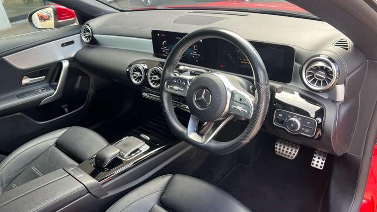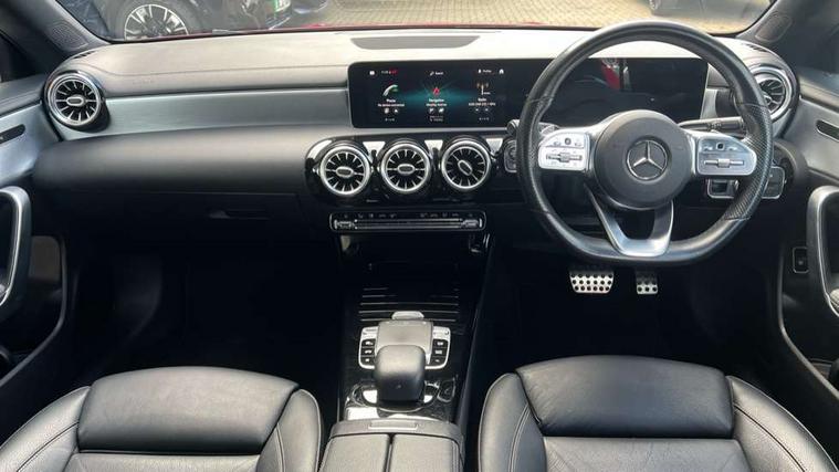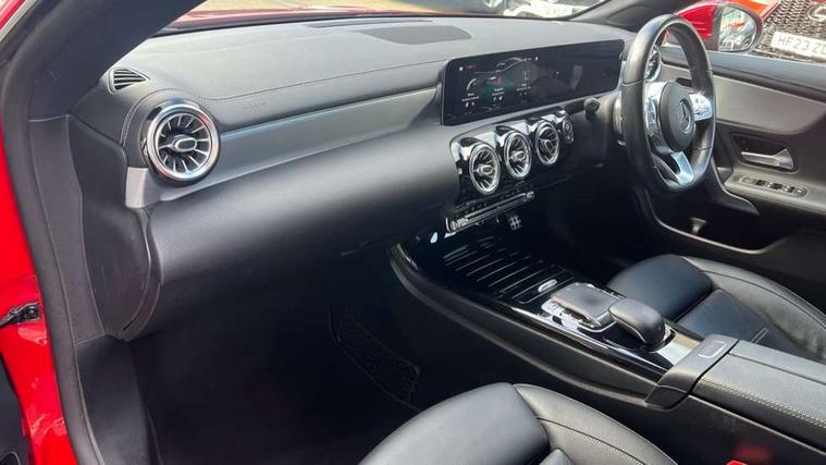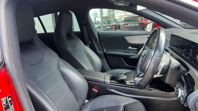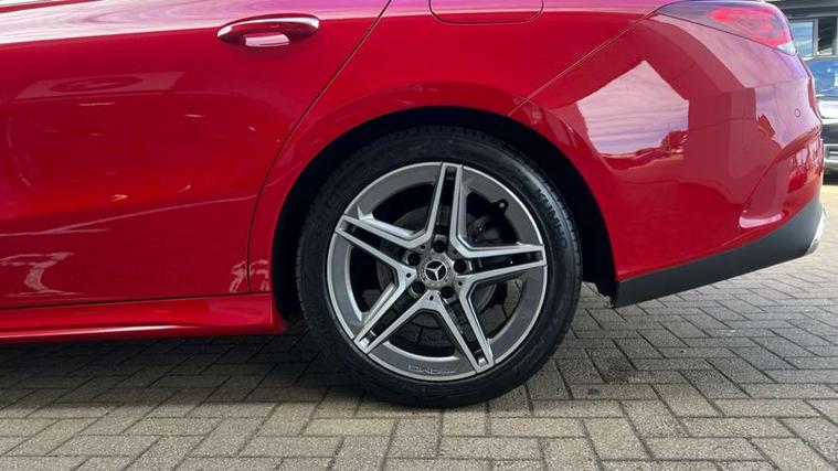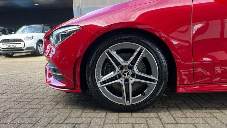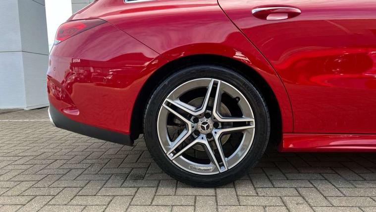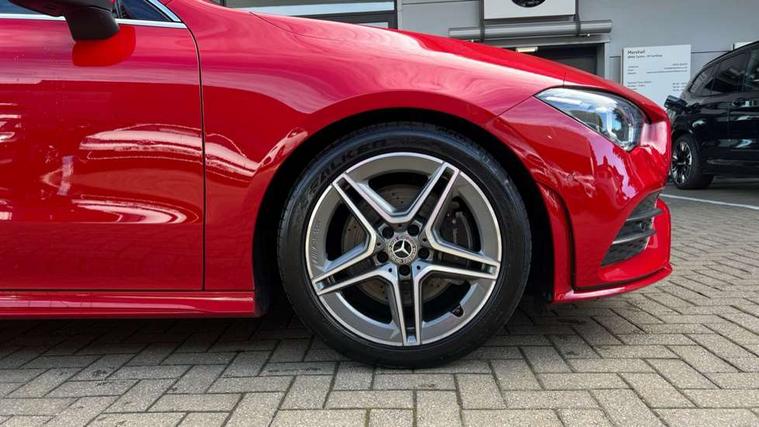 10.25 inch display instrument, 10.25 inch touchscreen central media display, Active lane keeping assist, Attention assist, Cruise control with limiter, Direct steer system with speed sensitive power steering, Dual bluetooth interfaces, DYNAMIC SELECT with a choice of driving modes (ECO, Comfort, Sport, Sport+ and Individual), ECO start/stop function, Fluid level warning indicator for fuel, oil, coolant and washer fluid, Hard-disk navigation, Hey Mercedes Voice activation, Instrument cluster, Lamp failure indicator, MBUX augmented reality for navigation, Mercedes connect me, Outside temperature gauge, Pre-installation for private car sharing, Preinstallation for Mercedes Benz link, Radio aerial integrated into front and rear windshields, Service indicator (ASSYST), Smartphone integration with Apple CarPlay and Android auto, Speed limit assist, Trip computer in multifunction display with current consumption indicator, Wireless charging, Lowered comfort suspension, Rear axle multi-link, DAB digital radio tuner, MBUX multimedia system with DAB digital radio and touchpad including satellite navigation, Mercedes Benz sound system (225w) includes mid-range sound system, USB (type C) port in front stowage compartment, USB (type C) ports (2) in stowage compartment, Active radiator shutters open for cooling air and close when not needed to improve aerodynamics and fuel efficiency, Adaptive brake lights, AMG body styling front apron, rear apron and side skirts, Beltline strips and weather strip in chrome, Body colour bodystyling side skirt, Body colour bumpers, Body colour door handles with chrome inserts, Diamond radiator grille pins in chrome with silver painted louvres and chrome insert, Electric windows, Electrically adjustable and heated door mirrors with integrated LED indicators, Exhaust system - Twin trapezoidal tailpipes in polished stainless steel, Headlamp assist automatic headlamp activation, Heated glass rear windscreen + timer control, High level LED third brake light, LED high performance headlamps with integrated LED daytime running lights, LED tail lamp, Privacy glass, Rain sensing windscreen wipers with two sensitivity settings, Rear fog lamp, 3 spoke flattened bottom nappa leather multifunction steering wheel with perforated leather in grip area, 40:20:40 split folding rear seat backrests, Air vents with surround in silver chrome, Automatic child seat recognition sensor, Black roof lining, Brushed stainless steel sports pedals with rubber studs, Cup holder and stowage compartment lighting, Floor mats with stitched AMG lettering, Freight packaging with tie-down hooks, Front and rear Handle recess/closing handle light in left and right, Front centre armrest with stowage, Front door sills with Mercedes Benz lettering, Front footwell lights, Front reading lamps in left and right console downlighter, Front seat cushion length adjustment, Front signal exit lamp in left and right, Front vanity light in left and right, Galvanished gear shift paddles on steering wheel, Heated front seats, Illuminated glove compartment stowage, Illuminated Mercedes benz door sills, Interior lighting - 64 colour Ambient lighting, Luggage net on driver/front passenger seat backrest, Manually adjustable front seats, Manually height and reach adjustable steering column, Oddments tray lighting, Rear armrest, Rear interior lamp, Rear reading lamp in support plate in left and right, Spectacles compartment for driver, Sport seats with fixed head restraints, Stowage compartment in centre console with retractable cover, Sunvisors with illuminated vanity mirrors, Thermatic single zone climate control, Touchpad illumination, Touchpad on center console, Twin front cupholders, Two outer rear seat isofix and top tether child seat fixing points, Light and sight pack - CLA, Mirror pack - CLA, Parking package - CLA, Seat comfort pack - CLA, Active bonnet pedestrain safety measure which detects an impact and raises bonnet by 65mm, Active brake assist, Adaptive brake assist with hold function and hill start assist, Anti-lock braking system (ABS), Brake pad wear warning indicator, Childproof locks manually operated for rear doors and electrically operated for rear power windows, Crash responsive emergency lighting, Driver and front passenger head and sidebags, Driver and front passenger windowbags, Drivers knee airbag, Dual stage driver and front passenger airbags, Electric parking brake, Electronic stability programme with acceleration skid control, ESP curve dynamic assist, Front and rear seatbelt reminder, Front brake callipers with Mercedes Benz lettering, Front passenger seat occupancy sensor, Perforated front brake discs, Three point rear seat belts, Tyre pressure monitoring system, Warning triangle and first aid kit, Alarm system with immobiliser and interior protection -Thatcham category 1, Keyless entry lock/unlock, Keyless Go starting function, Remote central locking and crash sensor with emergency opening function, Light aluminium with longitudinal grain interior trim, 18" 5 twin spoke design alloy wheels painted in titanium grey with high sheen finish, Summer tyres, Tirefit tyre sealant kit,