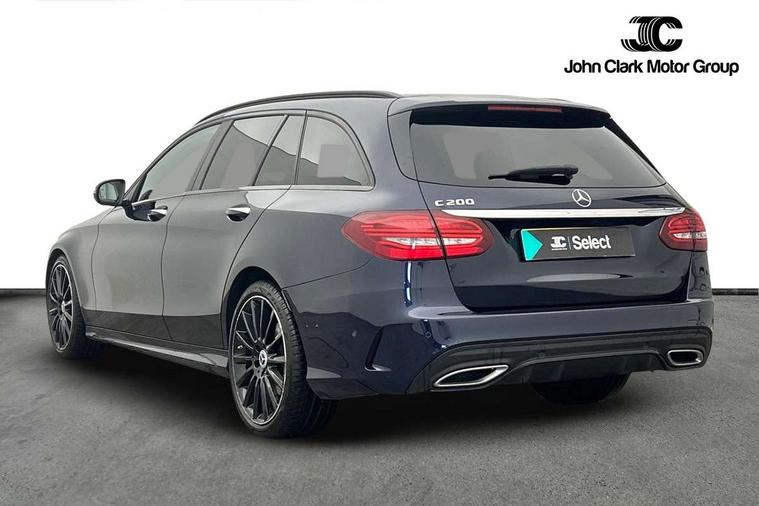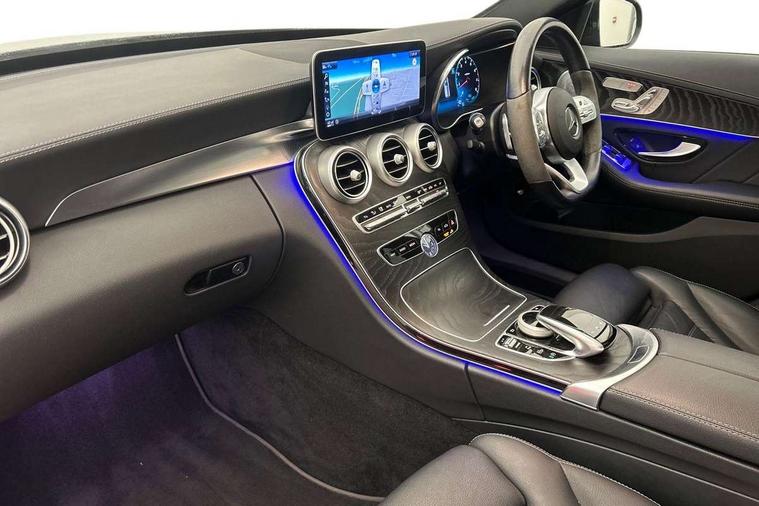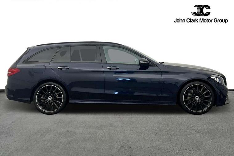 12.3" digital instrument cluster display, 360 degree parking camera, Active park assist with parktronic system, Analogue clock, Attention assist, Collision prevention assist plus, Colour display - 10.25" colour display screen, Comand Online HDD Nav with media interface, linguatronic voice control, 2 USB port and one SD card slot in centre console, DYNAMIC SELECT with a choice of driving modes (ECO, Comfort, Sport, Sport+ and Individual), Easy pack automatic powered tailgate, Mercedes connect me, Multi function trip computer, Outside temperature gauge, Remote boot release, Service indicator (ASSYST), Smartphone integration with Apple CarPlay and Android auto, Sports direct steer speed sensitive steering, Status display for rear seat belts in instrument cluster, Wireless charging, 66 litre fuel tank, 9G TRONIC 9 speed automatic transmission, Agility control sports suspension lowered by 15 mm, Petrol Particulate Filter, Burmester surround sound system with 13 speakers and a 9 channel amplifier with total output of 590 watts, DAB Digital radio, Steering wheel mounted audio controls, Adaptive brake lights, AMG body styling front apron, rear apron and side skirts, Automatically dimming rear view mirror and driver's exterior mirror, Chrome pins diamond radiator grille with integrated stars, Electric front sliding and fixed rear panoramic glass sunroof, Electric windows with one touch opening/closing and obstruction sensors, Electrically adjustable and heated door mirrors, Green tinted glass, Heated windscreen washers, High gloss black exterior mirror housing, High gloss black rear bumper insert, LED Indicators, LED tail lights, LED third brake light, Multi beam LED headlights, Privacy glass (rear side windows and rear screen), Radio aerial integrated into rear window, Rain sensor windscreen wipers, Rear wiper, Side windows surround in matt black, Twin tailpipe design integrated into rear bumper, 2 cupholders in front centre console, 3 spoke flat bottom AMG steering wheel in nappa leather with chrome inserts perforated leather grip, 40:20:40 split folding rear seats, AMG sports seats, Auto Mercedes-Benz child seat recognition sensor, Black floor mats with AMG lettering, Dual zone automatic climate control, Front and rear head restraints, Front centre armrest with storage compartment, Front door sills with Mercedes Benz lettering, Gearshift paddles on steering wheel, Heated front seats, Illuminated glovebox, Interior lighting - 64 colour Ambient lighting, Leather upholstery, Load compartment cover, Multifunction steering wheel, Rear top tether child seat ISOFIX attachment, Sports pedals with stainless steel surfaces and rubber studs, Sunvisors with illuminated vanity mirrors, Keyless go comfort package - C Class, Lighting pack - C class, Memory pack with Electric adjustable steering wheel - C Class, Mirror pack - C Class, Night package - C Class estate, Seat comfort pack - C Class, Stowage space pack - C Class, 3 rear 3 point seatbelts, Active bonnet, Adaptive brake system with HOLD function and brake drying in the wet, Anti-lock braking system (ABS), Black seat belts, Brake calipers with Mercedes-Benz lettering + perforated front brake discs, Child proof door locks, Drivers knee airbag, Drivers pelvis airbag, Dual stage driver/passenger airbags, Electronic parking brake, ESP with ASR, Front passenger seat occupancy sensor, Front side airbags, Hill start assist, Rear seatbelt warning indicator, Tyre pressure monitoring system, Warning triangle and first aid kit, Window airbags, Alarm system/interior protection/immobiliser, Central locking with interior switch, automatic locking and crash sensor with emergency opening function, Chrome surround electric key, Urban guard, Artico man-made leather dashboard with contrast stitching, Open pore black ash wood trim, 19" AMG multi spoke design alloy wheels painted black, Runflat tyres,