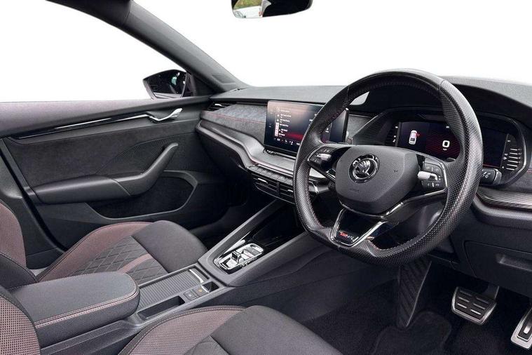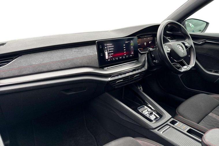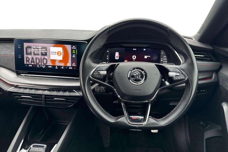 1x USB Type C port in rear view mirror (charging only), 2x USB Type C ports in rear of front centre armrest (charging only), Bluetooth system, Colour multifunction trip computer, Columbus satellite navigation with 10" touchscreen display, Drive mode selector, Front assist system, Progressive dynamic steering, Smartlink (includes android auto and mirrorlink), Speed limiter, Turn Assist, Virtual Cockpit - 10.25" digital display, Voice control system, Wireless SmartLink for Apple Car Play, Front and rear stabilizers, Sports suspension with 15mm lower, 2x USB Type C ports (for charging and data transfer), DAB Digital radio, Swing radio with 8.25" touchscreen, Aero front windscreen wipers with intermittent function, Auto dimming rear view mirror, Body colour door handles, Chrome exhaust tailpipes, Door sills with vRS logo, Electric front and rear windows, Electrically adjustable, heated and folding door mirrors with memory function, Exterior gloss black sports styling including front grille, side strip, window surrounds, door mirror and badging, Full LED Matrix headlights with AFS, rear LED lights and dynamic indicators and cornering front fog lights, Heated rear windscreen, High level third brake light, Ice scraper in fuel cap, Rain and light sensors, Rear fog light on one side, Rear privacy glass, vRS bumpers and lip spoiler, 3 rear headrests, 4 foldable roof handles, Alcantara padded dash panel with contrast stitching, Aluminium pedals, Black headlining, Chrome inner door handles, Cloth upholstery, Front centre armrest, Front head restraints, Heated front seats, Height adjustable driver and passenger seat with lumbar support, Illuminated air conditioned glovebox, Leather trimmed gearshift lever, Luggage compartment lighting x1 light, Mechanical rear seat release, Parcel shelf - folding, Satin black textured with artificial stiching in dash board pads, Sun visors with mirrors, Sunglasses storage, Textile floor mat set, Three spoke leather sports multifunction steering wheel with paddles, Ticket holder, Umbrella in door panel, Unsplit rear bench seat and split folding backrest, LED interior light pack - Octavia, 3 point front/outer rear seatbelts+pre-tensioners, Alarm with interior monitoring, tilt sensor and back up horn, Automatic door unlocking in case of crash, Automatic fuel cut off in case of crash, Automatic warning lights in case of emergency braking, Drivers knee airbag, Electronic parking brake, Emergency call and proactive services, ESC including ABS, EBV, MSR, ASR, EDS, HBA, DSR, Front and rear disc brakes, Head and curtain airbags, Hill hold control, Hill start assist, ISOFIX on front passenger seat and outer rear seats, Passenger airbag deactivate switch, Red brake calipers, Two tone horn, Tyre pressure monitor, Visual and acoustic seat belt reminder, Warning reflectors in front door, Door locks with immobiliser, Keyless entry and start/stop including rear doors, Remote central locking, Carbon optic decorative inserts, Gloss black air vent surrounds, 19" Altair anthracite alloy wheels,