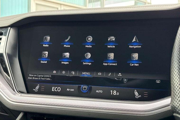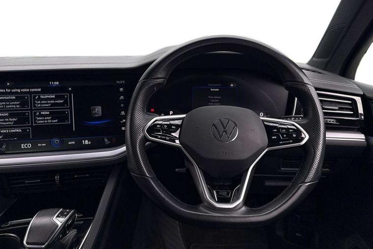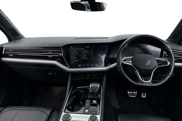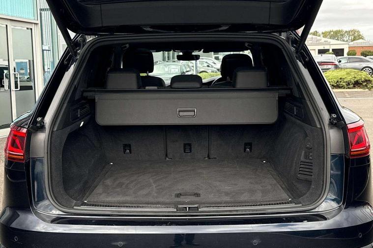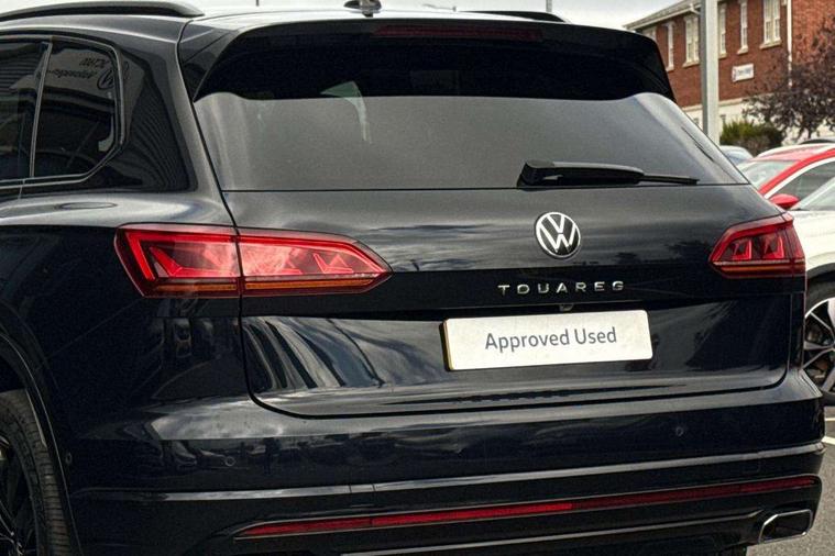 2D/3D map view, ACC - Adaptive cruise control with front assist, forward collision warning, distance monitoring, city emergency brake and speed limiter, Apple car play/Android Auto, Audible and visual fatigue detection system, Bluetooth hands free telephone connection, Car information display, Drive select with Damper control, Driver alert system, Driver profile selection, Dynamic road sign display camera controlled system with visual warning for traffic and road signs, eCall emergency system, Fully electric tailgate + keyless entry and start, Instrument cluster, MirrorLink, Multifunction camera, Multifunction computer premium with 7" colour display, One touch indicators with repeat function, Service interval indicator, Speed sensitive power steering, Start/stop system with regenerative braking, Tailgate power latch, Think blue trainer driver tips and journey analysis, Traffic sign recognition, Voice control system, Wireless Smartphone charger, 24 litre AdBlue tank, Torsen limited slip differential, DAB Digital radio, Dynamic navigation based on TMC+, Gesture control for infotainment system, Multi device interface (MDI) with illuminated USB-C connection, Music playback - MP3, WMA and AAC files, SD card slot, Simultaneous pairing of 2 compatible mobile devices, SMS functionality - read, compose and send SMS messages using touch-screen display, Title and cover art display, Volkswagen media control, Adaptive low beam for urban and motorway use, Auto dimming rear view mirror, Automatic coming/leaving home lighting function, Automatic headlights, Black anodised roof rails, Black door mirrors, Black rear diffuser, Black side window surrounds, Black upper and lower grille louvres extending into headlights and radiator grille, Body colour door handles, Body coloured wheel arches, C signature gloss black front air intake, Chromed tailpipe on the left and right integrated in the bumper with trapezoid design, Dusk sensor, Dynamic headlight range control, Electric front tilt/slide panoramic sunroof and fixed rear sunroof, Electrically power adjustable, heated, folding, auto dimming, front passenger exterior door mirror lowering function, Front and rear electric windows, Galvanised body, Gloss black finish B pillar, Gloss black rear diffuser, Headlight washers, Heat insulating darkened glass in side and rear windows, Heated windscreen washer jets, IQ.Light-LED matrix headlight, daytime running light with dynamic cornering light and indicator, LED 3rd brake light, LED rear fog light, LED rear number plate lights, Plastic scuff plates in door apertures, Poor weather light, Puddle lights, Rain sensor, Rear side wing doors, Rear wiper, 12V socket in front and rear centre console and boot, 2 Coat hooks on B pillar, 3 rear head restraints, 3 seat bench in 2nd row, 3 spoke sport heated leather multi-function sports steering wheel with gear shift paddles - generation 2, 4 way adjustable front head restraints, 4 way electric lumbar support for driver and front passenger, 4 zone climate control, 40:20:40 split folding slide/recline rear seat, B pillar vents, Black lower edge of door extending sills, Branded points of interest, Double sun visor for drivier and passenger with LED illuminated vanity mirrors, Electric luggage compartment cover, Folding rear centre armrest with 2 cupholders, Front + rear carpet mats, Front centre armrest with storage box, Gear shift indicator, Height/reach adjust steering wheel, Illuminated air conditioned glovebox, Isofix preparation for 2 rear child seats, Jack and tool kit, Leather trimmed gear knob with gloss black inlay/aluminum trim, Leatherette door trim, LED luggage compartment lighting, Load through provision, Luggage compartment with load lashing rings, Plastic loading edge protection, Rear seat remote release levers, Single front passenger seat, Soul black headlining, Stainless steel pedals, Innovision cockpit pack - Touareg, 3 point front seatbelts with pre-tensioners, ABS, Active bonnet, Automatic post collision braking system, Curtain airbags, Driver/Front Passenger airbags, EBD + Brake Assist, EDL, Electronic parking brake with auto hold, ESC with ASR, Front seat side impact airbags, Hill descent control, Hill start assist, Passenger airbag deactivate switch, Seatbelt warning lamp and buzzer, Three 3 point rear seatbelts, Two tone horn, Volkswagen roadside assistance, Warning triangle and first aid kit, Alarm with interior monitoring in cab, backup horn and towing protection, Child security locks for front and rear doors, Electronic engine immobiliser, Remote central locking, Black decorative trims on the side windows, High gloss black centre console,