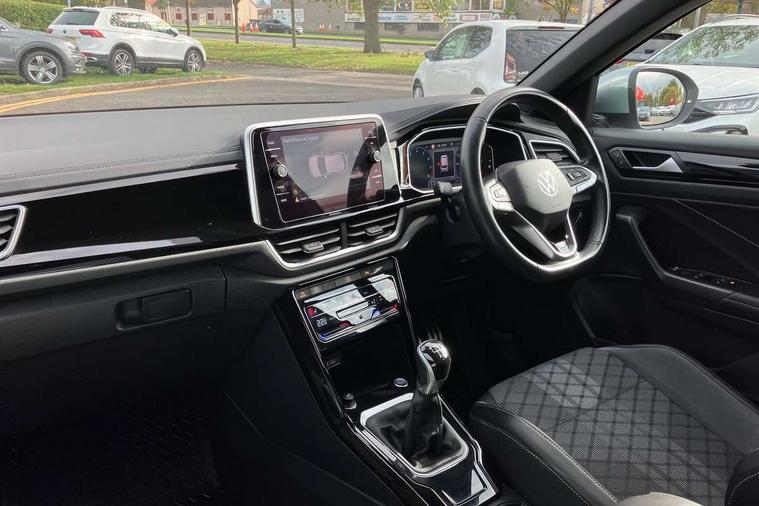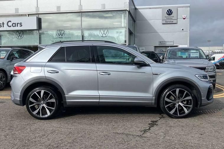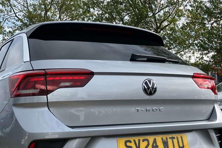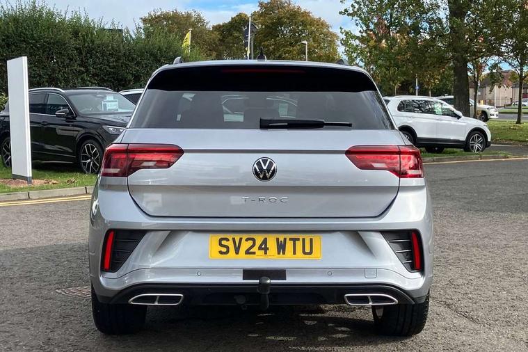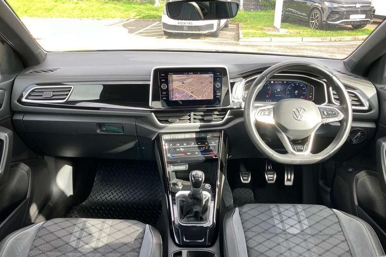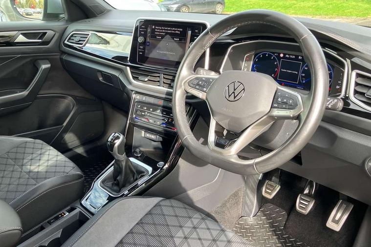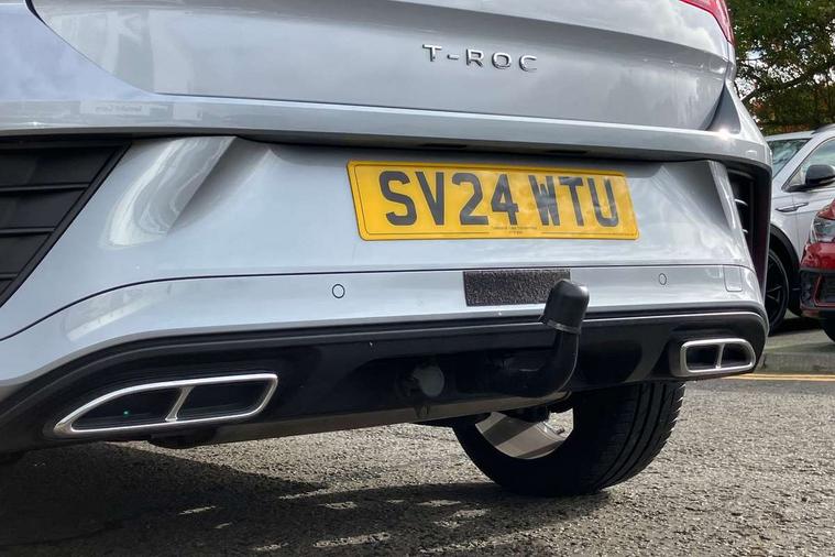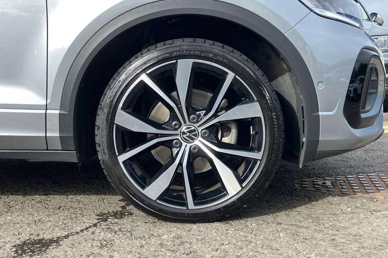 10.25" Digital cockpit pro, Advanced driver attention and drowsiness monitor, Bluetooth mobile phone interface, Emergency call service, Lane keeping system Lane Assist, Modified key software - reduce switch off time for key status change to Long no motion, Online services, Park assist including front and rear parking sensors, Service interval indicator, Tailgate/trunk lid release from outside, Think blue trainer driver tips and journey analysis, Warning sound and light for front seatbelts unfastened, Wireless app connect, Battery regeneration during braking, Start/stop function with battery regeneration, Diversity antenna for FM reception, Music playback - MP3, WMA and AAC files, Premium USB cable in choice of either Apple or Android smartphone compatibility, SD card slot, Simultaneous pairing of 2 compatible mobile devices, Title and cover art display, We Connect and We Connect Plus functionality, 3rd brake light, Auto dimming interior rear view mirror, Automatic hazard lights activation under emergency braking, Automatic headlight control with LED separate daytime running lights with coming/leaving home function, Electrically adjustable and heated door mirrors, Extended roof spoiler, Exterior mirrors aspherical on driver side, convex on front passenger side, External USB type C socket and charging sockets, Front windscreen wiper with intermittent wipe and 4 position delay, Heated rear window, LED rear combination lamps, LED rear number plate lights, Power windows with comfort operation and circuit breaker, R-Line design body coloured bumpers, Rain sensor, Rear exhaust tailpipe, Rear fog light on one side and reversing lights on both sides, Rear side wing doors, Rear wash/wipe with intermittent wipe setting, Remote electrically foldable door mirrors, puddle lights and reverse activated passenger's door mirror, 12V power socket in centre console, 3 rear head restraints, 3 seat bench in 2nd row, 4 load lashing points in luggage compartment, Air care climatronic air conditoning system with active combination filter and 2-zone temperature control, Black roof lining, Chrome plated radiator grille inserts, air vent surrounds and light switch surrounds, Door and side trim panel with leatherette insert, Front + rear carpet mats, Front centre armrest, Front cupholders x 2, Front footwell illumination, Front reading light, Front scuff plates with R Line logo, Front seat back storage pockets, Glove compartment door with light, Instrument lighting, white adjustable panel illumination, Interior ambient lighting and surround lighting, Interior light delay, Isofix child seat preparation, Leather gearshift handle, Load-through provision with cup holder when folded down ('Unsplit rear seat bench, split folding backrest, with centre armrest), Luggage compartment lighting, Single front passenger seat, Stainless steel pedals, Storage compartment in left and right luggage area, Storage compartment in rear doors, Storage compartments in driver and front passenger doors, Sunvisors with illuminated vanity mirrors, Variable boot floor, height adjustable and removable, Driver assistance pack without proactive passenger protection - T-Roc, 3 point height adj front seatbelts + pretensioners, 3 point seatbelts in outer rear with ECE label, ABS, Child locks on rear doors, City emergency braking and pedestrian monitoring, Driver and front passenger airbag with front passenger airbag deactivation, Driver and front passenger safety-optimised head restraints, Drivers seatbelt reminder, Electronic parking brake, Electronic Stability Control (ESC) inc EDL (Electronic Differential Lock) and ASR (Traction Control), Front and rear passengers curtain airbag system including front side airbags, Hill start assist, Predictive pedestrian protection, Rear disc brakes, Two tone horn, Tyre pressure loss indicator, Volkswagen roadside assistance, Anti-theft alarm system with interior monitoring, backup horn, and towing protection, Remote central locking with SAFELOCK, radio remote control with 2 remote control folding keys, Trims for alloy wheels,