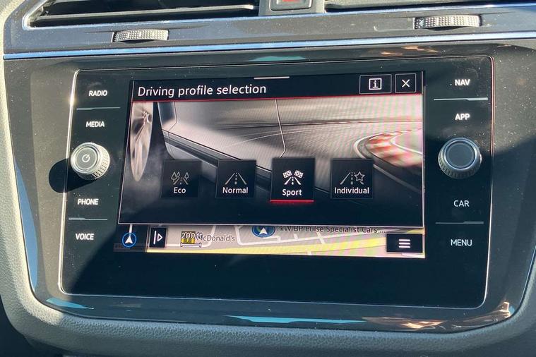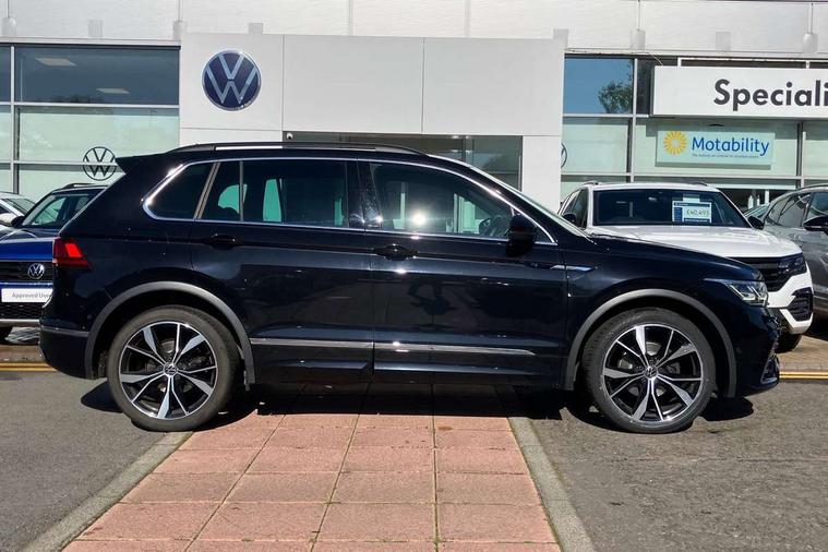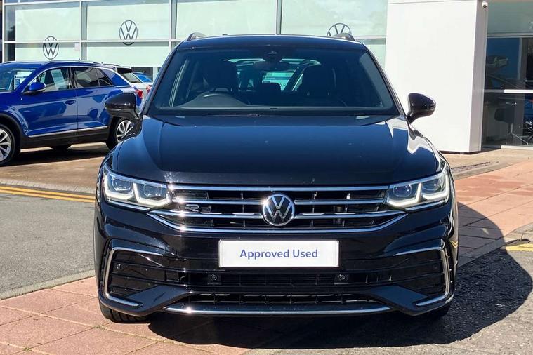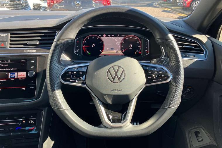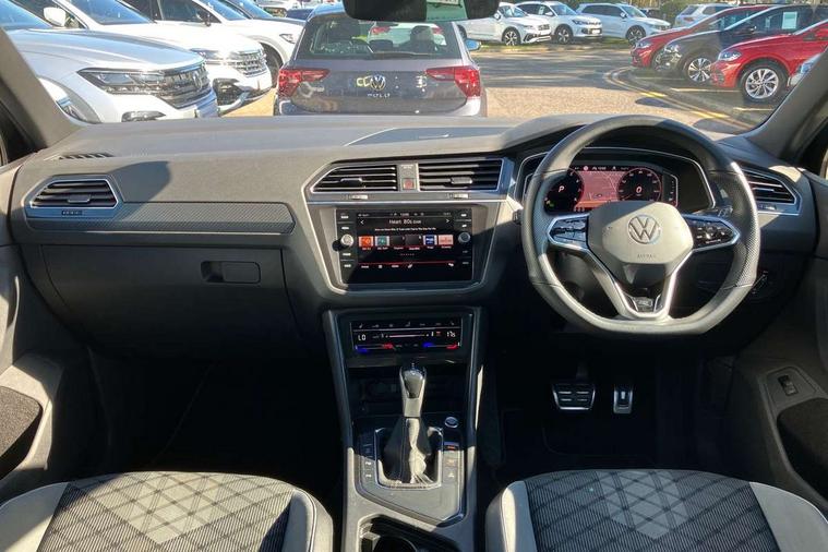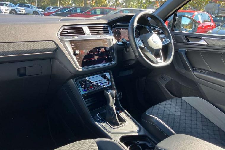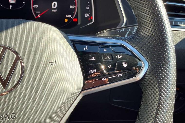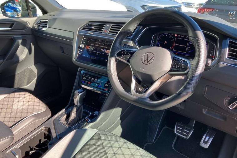 Adaptive cruise control ACC stop and go including speed limiter, App-Connect incl. App-Connect Wireless for Apple CarPlay and Android Auto, Bluetooth phone integration system, Digital Cockpit Pro - Active info display, Distance control assist, Driver alert system, Driver profile selection, Dynamic road sign display, eCall emergency call system, Electromechanical speed sensitive power steering, Engine start/stop button, Lane keeping system Lane Assist, Lights on warning, Multifunction front facing camera, Outside temperature display, Premium multifunction display with multi colour display, Remote control boot opening, Rev counter, Revision / skills operating concept travel assistant, Service interval indicator, Speed limit display, Start/stop system with regenerative braking, Trip computer, Warning sound and light for doors and tailgate open, Battery regeneration during braking, XDS electronic differential lock for improved traction and handling, 2 USB-C ports in the front, 1 USB-C charging socket on the center console in the rear, Diversity antenna for FM reception, Radio, SD card slot, Simultaneous pairing of 2 compatible mobile devices, SMS functionality - read, compose and send SMS messages using touch-screen display, Title and cover art display, Auto dimming interior rear view mirror, Automatic headlight control system, Black roof rails, Body colour door handles, Body coloured bumpers in R Line style, Body coloured door mirrors with integrated indicators, Chrome moldings on the side windows, Coming/leaving home lighting function, Dynamic headlight range control, Front and rear electric windows, Heated rear window, High level 3rd brake light, Laminated safety glass windshield, heat and sound insulating, LED rear number plate lights, License plate carrier in front and rear, Poor weather light and cornering light, Privacy glass for rear side windows and rear window, R Line body kit, R Line side sills, Rain sensor windscreen wipers, Rear exhaust tailpipe, Rear fog lamp, Rear spoiler in R style, Rear windscreen washer and wiper with interval delay, Side and rear windows in heat insulating glass, Third brake light, Trailer Stability Programme, Unique R Line badging, Windscreen wipers/ intermittent wipe + 4 position delay, 12V outlet in center console rear and in luggage compartment, 2 cup holders in front, 2 LED front reading lights, 2 LED rear reading lights, 3 rear headrests, 4 load lashing points, 40:20:40 split folding rear seats, Air Care Climatronic 3 zone automatic climate control with enhanced air filter and controls in the rear, Backrest release for left front seat, Black headlining, Brushed stainless steel pedals and footrest, Carpet mats in front and rear with decorative stitching in Gray, Climate control unit rear with touch function, Door and side trim panel in foam film, insert in leatherette, Front centre armrest, Front footwell illumination, Front seats head restraints (x-adjustment), Height adjustable front seats, Height/reach adjust steering wheel, Instrument lighting white adjustable panel illumination, Interior light with delay, Isofix Preparation 2 Rear child seats, Leather gear knob, Lockable cooled glovebox, Luggage compartment lighting, Luggage net, Rear bench seat asymetrically split folding, longitudinally movable and folding with load-through hatch and center armrest, Remote unlocking for rear seat backrest, Removable luggage cover, Safety optimised front head restraints, Sliding/reclining rear seats, Standard rear seat release, Storage compartment in driver's door, Storage compartment in passenger's door, Storage compartment in rear doors, Storage compartments in luggage area left and right, Storage tray on dashboard, Sun visors with illuminated vanity mirrors, Top front comfort seats, Variable boot floor, height adjustable and removable, Ambience pack - Tiguan R Line, Driver assistance pack plus - Tiguan DSG, 3 point seat belt for centre rear seats, 3 point seat belts with seat belt pretensioners for the outer rear seats, Active bonnet, Curtain airbags for front and rear passengers, Driver/Front Passenger airbags, Drivers knee airbag, Electronic parking brake with auto hold, Electronic Stability Control with driver steering recommendation, ABS, ASR, EDL, EDTC and trailer stabilization, Front assist with autonomous emergency braking (for Adaptive Cruise Control ACC up to 130 mph), Front disc brakes, Front passenger airbag deactivation, Front side airbags, Height adjustable front 3 point seatbelts + pretensioners, Hill hold control, Pedestrian monitoring system, Power assisted brakes, Proactive passenger protection system in combination with front assist, Rear disc brakes, Rigid safety cell with front and rear crumple zones, Two tone horn, Warning sound and light for front seat belts if unfastened, Anti theft alarm system with interior monitoring, backup horn and towing protection, Anti theft wheel bolts, Electronic engine immobiliser, 20" Misano black with diamond turned surface alloy wheels with Airstop tyres, Tool kit,