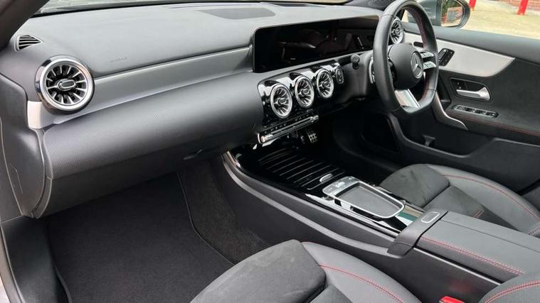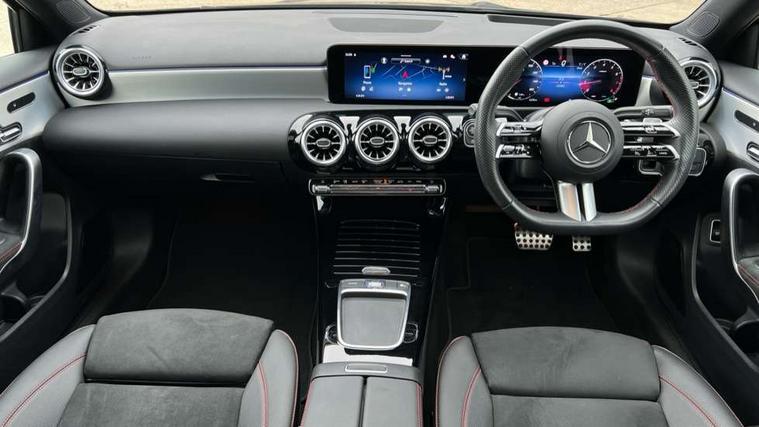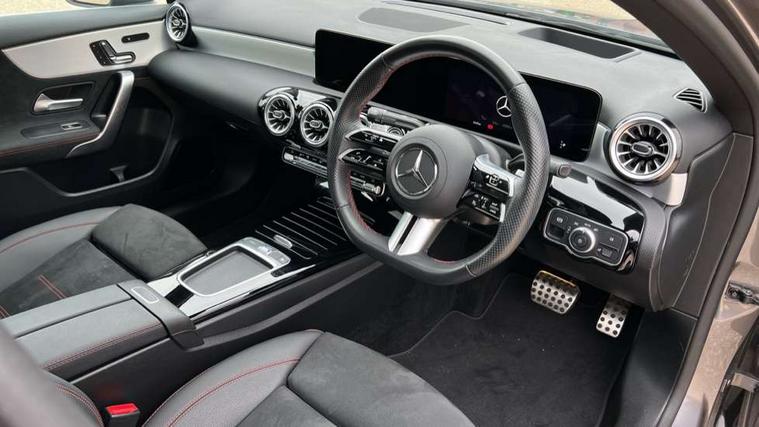 10.25 inch touchscreen central media display, 10.25" Digital instrument cluster display screen, Attention assist, Brake pad wear indicator warning light, Car wash mode, Direct steering, Direction indicators with lane change function, Dual bluetooth interfaces, DYNAMIC SELECT with a choice of driving modes (ECO, Comfort, Sport and Individual), ECO start/stop function, Engine start/stop button, Fingerprint scanner, Fluid level warning indicator for fuel, oil, coolant and washer fluid, Fluorescent jacket for driver, Hard-disk navigation, Head up Display, Hey Mercedes Voice activation, Lamp failure indicator, Mercedes me connect including emergency call system, accident recovery, breakdown and maintenance management, Mercedes me remote services, Outside temperature gauge, Owners manual in English, Pre-installation of private car share, Preinstallation for Mercedes Benz link, Remote boot closing, Service indicator (ASSYST), Smartphone integration with Apple CarPlay and Android auto, Speed sensitive power steering, Traffic sign assist, Trip computer in multifunction display with current consumption indicator, Wireless charging, Lowered comfort suspension, DAB Digital radio, MBUX multimedia system, Mercedes Benz advanced sound system (225 W) with 10 speakers, 1 central speaker, speakers on doors, a tweeter on door, one sub woofer + boost amplifier, 4 Electric Front and Rear windows, Adaptive brake lights, AMG body styling - AMG front apron with front splitter and AMG rear apron and visible exhaust tailpipe trim elements, Body colour bumpers, Body colour door handles with chrome inserts, Body colour side skirt, Chrome beltline strips, Diamond radiator grille with pins in fine star pattern, Electric adjustable and heated door mirrors with integrated LED side indicators, Exhaust system with 2 visible tailpipe trim elements and rear apron, Headlamp assist automatic headlamp activation, Heat insulating dark tinted rear and rear side windows, Heated glass rear windscreen + timer control, LED daytime running lights, LED tail lamp, Multibeam LED headlamps with adaptive highbeam assist and cornering function, Panoramic sliding sunroof, Privacy glass, Radio aerial, Rain sensing windscreen wipers with two sensitivity settings, Rear boot, Rear fog lights, Rear side wing doors, Third brake light featuring LED technology, 3 seat bench in 2nd row, 3 Spoke flat bottom leather multi function steering wheel with perforated leather in grip area, 40:20:40 split folding rear seats, Air conditioning - Two zone thermotronic luxury automatic climate control with display, AMG floor mats, Automatic child seat recognition sensor, Black air vents with surround in silver chrome, Black roof lining, Brushed stainless steel sports pedals with rubber studs, Electrically adjustable front memory seats including lumbar support and backrest inclination, Front centre armrest with stowage, Front seat backs luggage nets, Galvanished gear shift paddles on steering wheel, Height/reach adjustable steering column, Illuminated Mercedes Benz lettering front door sills with changeable cover, Interior lighting - 64 colour Ambient lighting, Interior mirror with reading lamps in black and frameless, Rear armrest with 2 cupholders, Seat occupancy sensor for front passenger seat, Single front passenger seat, Sports seats with adjustable head restraints, Stowage compartment in centre console with retractable cover, Sunvisors with illuminated vanity mirrors, Twin front cupholders, Keyless go comfort pack - A Class, Light and sight package - A Class, Mirror package - A Class, Night pack - A Class Sport, Parking pack with 360 degree camera - A Class, Seat comfort pack - A Class, USB pack plus - A Class, Winter pack - A Class, 3 rear 3 point seatbelts, ABS with Brake Assist, Active bonnet, Adaptive brake assist with hold function and hill start assist, Black seatbelts, Bonnet with power domes, Childproof locks manually operated for rear doors and electrically operated for rear power windows, Crash responsive emergency lighting, Driver and passenger head and side airbags, Drivers knee airbag, Dual stage driver/passenger airbags, Electronic parking brake, ESP curve dynamic assist, ESP with ASR, Exit warning, Front and rear seatbelt reminder, ISOFIX and top tether child seat fixing points in two outer rear seats, Tyre pressure monitoring system, Warning triangle and first aid kit, Window airbags, Alarm system/interior protection/immobiliser, Guard 360 degree vehicle protection, Remote central locking and crash sensor with emergency opening function, Light longitudinal grain aluminium trim, 19" AMG multi-spoke light alloy wheels, aerodynamically optimised, painted in black with high sheen rim flange, Summer tyres, Tirefit sealant kit,