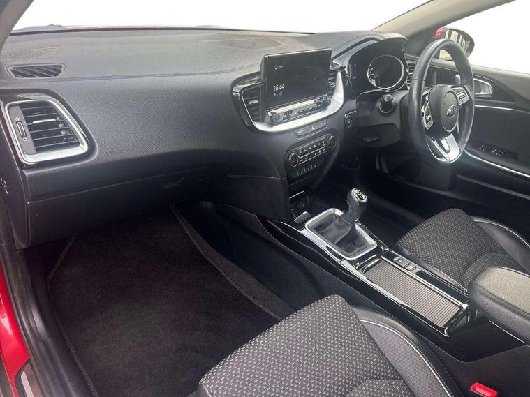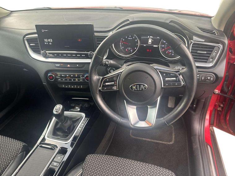 10.25" touchscreen satellite navigation with telematics, 4.2" supervision colour cluster display, Android auto with voice control, Apple car play with voice control, Bluetooth with Voice Recognition & Music Streaming, Cruise control + speed limiter, Driver attention warning, Forward Collision-Avoidance Assist (FCA) - City/Pedestrian/Cyclist, Kia connected services featuring TomTom live, Lane keep assist, Motor driven power steering, Rear parking sensor, Reversing camera with dynamic guide lines, Trip computer, Intelligent Stop and Go, 7 speakers, DAB Radio with MP3, Front USB port, Steering wheel mounted controls, USB Fast Charger in Front Centre Console, All-round Electric Windows with Auto Up & Down Function, Auto dimming rear view mirror, Automatic defog system, Automatic headlights, Black wheel arch extensions, Body colour bumpers, Body colour exterior door handles, Body colour side sill mouldings, Body coloured door mirrors with matt black lower housing, Body coloured rear spoiler, Body coloured shark fin antenna, Electrically folding, adjustable and heated door mirrors with integrated LED indicator lights, Heated rear window with timer, High beam assist, High Gloss Black and Satin Chrome Radiator Grille, LED Bi-Function projection headlights, LED daytime running lights, LED High-mounted Brake Light, LED rear fog light, LED rear lights, Privacy glass - Rear windows and tailgate, Projection front fog lights, Rain sensing front wipers, Rear wiper, Satin chrome window surround, Silver roof rails, Tinted glass, Wide view drivers door mirror, Windscreen Washer Level Warning, 12V power socket in front centre console, 12V socket in luggage compartment, 60/40 split folding rear seat, All-round height adjustable headrests, Centre console with cupholders and sliding cover, Centre Console with Storage Box and Sliding Armrest, Chrome interior door handles, Cloth/faux leather upholstery, Driver + front passenger electric lumbar support, Driver's seat height adjuster, Dual zone automatic air conditioning, Faux leather door trim, Front and rear door storage, Front cabin map light with sunglasses case, Front Passenger Seat Height Adjuster, Front seat and rear pockets, Heated front seats, Heated steering wheel, Illuminated driver and front passenger sunvisors with vanity mirror, ISOFIX Child seat top tethers and anchor fixings, Leather steering wheel and gearshift, Luggage area light, Luggage area parcel shelf, Luggage hooks, Rear cabin light, Rear centre armrest with cupholders, Tilt/telescopic adjustable steering wheel, ABS with Electronic Brakeforce Distribution (EBD) and Brake Assist System (BAS), All round 3-point seatbelts, Dual front side airbags, Dual horn, Electronic parking brake, Electronic stability control (ESC) and vehicle stability management (VSM), Front passenger airbag cut off switch, Height adjustable front seatbelts, Hill start assist control (HAC), Impact sensing auto door unlocking, Rear door child safety locks, Seatbelt reminder warning, Traction control, Twin curtain airbags, Twin front airbags, Tyre pressure monitoring system, Alarm system, Engine Immobiliser & Deadlocks, Engine Start/Stop Button with Smart Entry System, Locking wheel nuts, 18" Alloy wheels, Tyre mobility kit,
