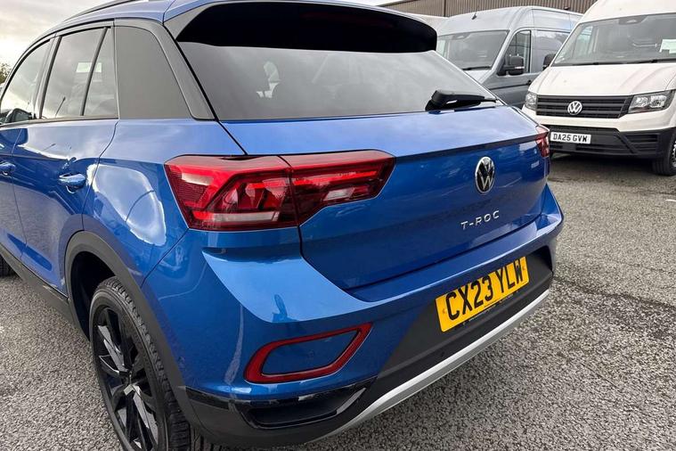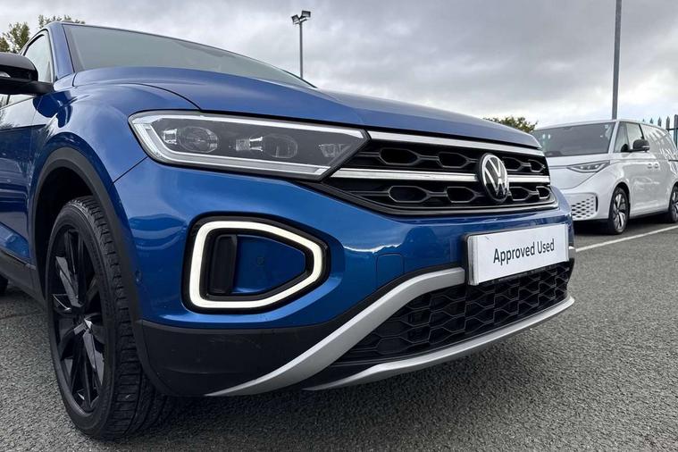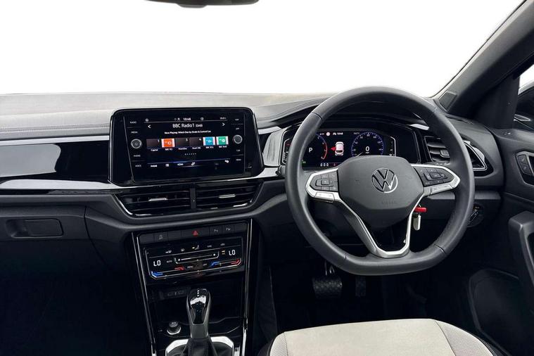 10.25" Digital cockpit pro, Bluetooth mobile phone interface, Driver alert system with fatigue detection, Driver tips and journey analysis, Emergency call service, Lane keeping system Lane Assist, Modified key software - reduce switch off time for key status change to Long no motion, Online services, Park assist including front and rear parking sensors, Service interval indicator, Tailgate/trunk lid release from outside, Think blue trainer driver tips and journey analysis, Warning sound and light for front seatbelts unfastened, Wireless app connect, Battery regeneration during braking, Start/stop function with battery regeneration, Diversity antenna for FM reception, Front and rear 6 speakers, Music playback - MP3, WMA and AAC files, Premium USB cable in choice of either Apple or Android smartphone compatibility, SD card slot, Simultaneous pairing of 2 compatible mobile devices, Title and cover art display, We Connect and We Connect Plus functionality, 3rd brake light, Auto dimming interior rear view mirror, Automatic hazard lights activation under emergency braking, Automatic headlight control with LED separate daytime running lights with coming/leaving home function, Body colour sports bumpers with silver metallic underbody fascia, Dynamic headlight range control with self adjusting whilst driving, Extended roof spoiler, Exterior mirrors aspherical on driver side, convex on front passenger side, External USB type C socket and charging sockets, Front windscreen wiper with intermittent wipe and 4 position delay, Heated rear window, LED Plus headlamps, LED rear combination lamps, LED rear number plate lights, LED tail lamp rear comination lamps, Light mode for poor weather, rain, fog or snow, Power windows with comfort operation and circuit breaker, Rain sensor, Rear exhaust tailpipe, Rear fog light on one side and reversing lights on both sides, Rear side wing doors, Rear wash/wipe with intermittent wipe setting, Remote electrically foldable door mirrors, puddle lights and reverse activated passenger's door mirror, 12V power socket in centre console, 3 rear head restraints, 3 seat bench in 2nd row, 4 load lashing points in luggage compartment, Air care climatronic air conditoning system with active combination filter and 2-zone temperature control, Chrome plated radiator grille inserts, air vent surrounds and light switch surrounds, Door and side trim panel with leatherette insert, Drawer under drivers seat, Front + rear carpet mats, Front centre armrest, Front comfort sports seats, Front cupholders x 2, Front footwell illumination, Instrument lighting, white adjustable panel illumination, Interior ambient lighting and surround lighting, Interior light delay, Isofix child seat preparation, Leather gearshift handle, LED interior light with switch off delay/dimmer and 2 front/rear LED reading lights, Load-through provision with cup holder when folded down ('Unsplit rear seat bench, split folding backrest, with centre armrest), Luggage compartment lighting, Non-folding front passenger seat backrest, Single front passenger seat, Storage compartment in left and right luggage area, Storage compartment in rear doors, Storage compartments in driver and front passenger doors, Sunvisors with illuminated vanity mirrors, Variable boot floor, height adjustable and removable, Driver assistance pack without proactive passenger protection - T-Roc, 3 point height adj front seatbelts + pretensioners, 3 point seatbelts in outer rear with ECE label, ABS, Child locks on rear doors, Driver and front passenger airbag with front passenger airbag deactivation, Driver and front passenger safety-optimised head restraints, Drivers seatbelt reminder, Electronic parking brake, Electronic Stability Control (ESC) inc EDL (Electronic Differential Lock) and ASR (Traction Control), Front and rear passengers curtain airbag system including front side airbags, Front assist with city emergency braking and pedestrian monitoring, Front seat side impact airbags, Predictive pedestrian protection, Rear disc brakes, Single tone horn, Tyre pressure loss indicator, Volkswagen roadside assistance, Alarm with interior protection, Anti-theft alarm system with interior monitoring, backup horn, and towing protection, Remote central locking with SAFELOCK, radio remote control with 2 remote control folding keys, Trims for alloy wheels,