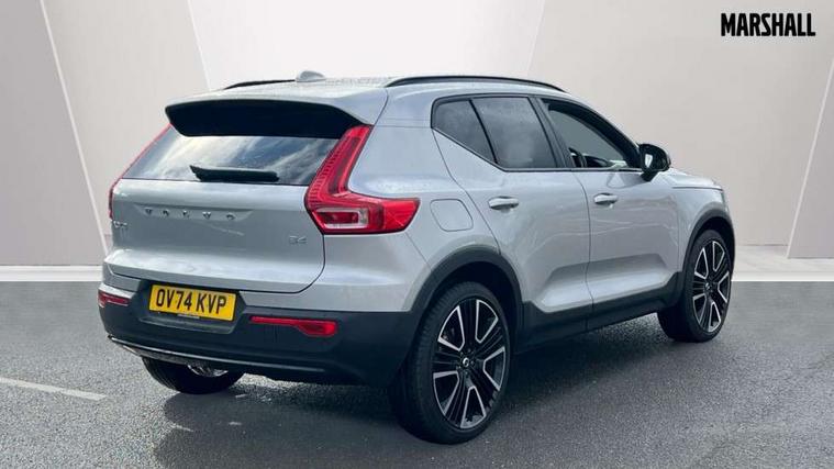 12.3" Progressive Driver Display, 360 degree surround view parking camera with side proximity sensors, 9" centre console portrait touch screen, Adjustable steering wheel force, Apple carplay (wired), Bluetooth handsfree system, Driver alert control, Driver assistance (pilot assist and adaptive cruise control), Driver awareness - Blind spot information system with steer assist, cross traffic alert with autobrake and rear collision warning and mitigation, E-call, Google automotive services - Enabled entertainment apps, navigation with google maps, voice recognition with google assistant, Hands free power tailgate, Intelligent speed assistance, Lane keeping aid, Oncoming Lane Mitigation, Speed sensitive steering, Volvo cars services with app - Driving journal, emergency and breakdown call, engine remote start, remote door locking/unlocking and vehicle dashboard, Wireless/Inductive Mobile Phone Charging, Automatic transmission with start/stop and manual change functions, Dynamic chassis, DAB Digital radio, Premium Sound by Harman Kardon, Dolby Pro Logic II Surround Sound, Dirac Unison, 12 speakers/600W and subwoofer, Steering wheel mounted remote controls, Active bending pixel LED headlights with adaptive shadow technology, Active high beam incorporating daytime running lights, Adaptive brake lights with high level LED brake lights, Auto dimming feature for exterior door mirrors, Auto dimming interior mirror, Automatic headlamp levelling, Dark tinted windows - rear side windows and rear screen, Front aluminium tread plates, Front and rear electric windows, Headlight cleaning system, High gloss black front and rear skid plate, High gloss black front bumper deco, High gloss black mesh front grille with high gloss black surround, High gloss black window trim, Home safe and approach lighting, Integrated roof rails in high gloss black, LED front fog lights with cornering function, Power glass tilt and slide panoramic sunroof with sun curtain, Puddle lights, Rain sensor with automatic windscreen wiper activation, Rear side wing doors, Rear wiper, Roof antenna, Roof spoiler, Visible VIN plate, 12V socket in front tunnel console and luggage compartment, 2-Zone electronic climate control with CleanZone air quality system and pollen filter, 3 seat bench in 2nd row, 3 Spoke tailored steering wheel with chrome trim, 60/40 versatile split folding rear seat, Centre console cupholders and storage, Flexible load floor and grocery bag holder, Floor mats, Front cabin courtesy lights, Front door pocket, front cupholder, ambient front door, rear reading, rear courtesy, instrument panel and tailgate lighting, Front footwell illumination, Front headrests, Front reading lights, Front seat cushion extensions, Front side step illumination (under door), Glovebox bag hook, Heated front seats, Height/reach adjustable steering column, High gloss centre tunnel deco, Illuminated glovebox, Illuminated luggage compartment, Illuminated vanity mirrors + ticket holder, Integrated waste bin, Isofix attachments on outer rear seats, Load cover, Load protection net, Multi directional lumbar support for driver and passenger seat, Power driver seat with memory + exterior mirrors memory, Power folding rear headrests, Power passenger seat, Rear armrest with cupholders, Single front passenger seat, Underfloor cargo storage, Climate pack without heated front seats - XC40, 3x3 point rear seatbelts, City safety with steering support with Pedestrian + cyclist + front collision warning with full auto brake and rear auto brake, Driver and passenger airbags, Drivers knee airbag, Electronic parking brake with auto hold, First aid kit, Front and outer rear seatbelt reminder and pretensioners, Front seats SIPS airbags, Hill descent control, Hill start assist, Inflatable curtain, Passenger airbag cut-off device, Power child locks on rear doors, Road sign information display, Run off Road Protection, SIPS (Side Impact Protection System), Slippery road and hazard light alert, Stability and Traction Control with Spin control, Engine Drag Control and Corner Traction Control, Tyre pressure monitoring system, Vehicle deceleration control with Anti-lock Brake System, Electronic Brake Distribution and Emergency Brake Assist, Warning triangle, WHIPS whiplash protection system - front, 2 x Key integrated remote control central locking including with deadlocking system and auto open/close windows and sunroof, Anti-theft alarm including immobiliser/volume sensor + level sensor, Keyless drive includes keyless entry and keyless start, Locking wheel nuts,