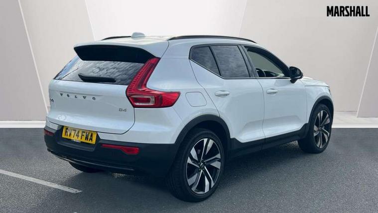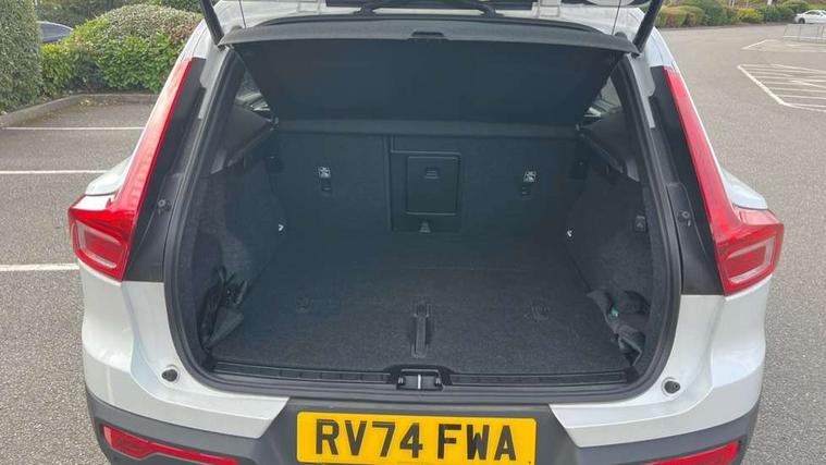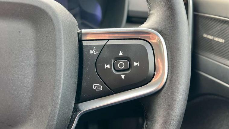 12.3" Progressive Driver Display, 360 degree surround view parking camera with side proximity sensors, 9" centre console portrait touch screen, Adjustable steering wheel force, Android auto (Wired), Apple carplay (wired), Bluetooth handsfree system, Driver alert control, Driver assistance (pilot assist and adaptive cruise control), Driver awareness - Blind spot information system with steer assist, cross traffic alert with autobrake and rear collision warning and mitigation, E-call, Front park assist, Google automotive services - Enabled entertainment apps, navigation with google maps, voice recognition with google assistant, Hands free power tailgate, Intelligent speed assistance, Lane keeping aid, Oncoming Lane Mitigation, Rear park assist, Speed sensitive steering, Volvo cars services with app - Driving journal, emergency and breakdown call, engine remote start, remote door locking/unlocking and vehicle dashboard, Wireless/Inductive Mobile Phone Charging, Automatic transmission with start/stop and manual change functions, Dynamic chassis, DAB Digital radio, Premium Sound by Harman Kardon, Dolby Pro Logic II Surround Sound, Dirac Unison, 12 speakers/600W and subwoofer, Steering wheel mounted remote controls, Active bending pixel LED headlights with adaptive shadow technology, Active high beam incorporating daytime running lights, Adaptive brake lights with high level LED brake lights, Auto dimming feature for exterior door mirrors, Auto dimming interior mirror, Automatic headlamp levelling, Dark tinted windows - rear side windows and rear screen, Front aluminium tread plates, Front and rear electric windows, Headlight cleaning system, High gloss black front and rear skid plate, High gloss black front bumper deco, High gloss black mesh front grille with high gloss black surround, High gloss black window trim, Home safe and approach lighting, Integrated roof rails in high gloss black, LED front fog lights with cornering function, Power glass tilt and slide panoramic sunroof with sun curtain, Puddle lights, Rain sensor with automatic windscreen wiper activation, Rear side wing doors, Rear wiper, Roof antenna, Roof spoiler, Visible VIN plate, 12V socket in front tunnel console and luggage compartment, 2-Zone electronic climate control with CleanZone air quality system and pollen filter, 3 seat bench in 2nd row, 3 Spoke tailored steering wheel with chrome trim, 60/40 versatile split folding rear seat, Centre console cupholders and storage, Flexible load floor and grocery bag holder, Floor mats, Front cabin courtesy lights, Front door pocket, front cupholder, ambient front door, rear reading, rear courtesy, instrument panel and tailgate lighting, Front footwell illumination, Front headrests, Front reading lights, Front seat cushion extensions, Front side step illumination (under door), Glovebox bag hook, Heated front seats, Height/reach adjustable steering column, High gloss centre tunnel deco, Illuminated glovebox, Illuminated luggage compartment, Illuminated vanity mirrors + ticket holder, Integrated waste bin, Isofix attachments on outer rear seats, Load cover, Load protection net, Multi directional lumbar support for driver and passenger seat, Power driver seat with memory + exterior mirrors memory, Power folding rear headrests, Power passenger seat, Rear armrest with cupholders, Single front passenger seat, Underfloor cargo storage, Climate pack without heated front seats - XC40, 3x3 point rear seatbelts, City safety with steering support with Pedestrian + cyclist + front collision warning with full auto brake and rear auto brake, Driver and passenger airbags, Drivers knee airbag, Electronic parking brake with auto hold, First aid kit, Front and outer rear seatbelt reminder and pretensioners, Front seats SIPS airbags, Hill descent control, Hill start assist, Inflatable curtain, Passenger airbag cut-off device, Power child locks on rear doors, Road sign information display, Run off Road Protection, SIPS (Side Impact Protection System), Slippery road and hazard light alert, Stability and Traction Control with Spin control, Engine Drag Control and Corner Traction Control, Tyre pressure monitoring system, Vehicle deceleration control with Anti-lock Brake System, Electronic Brake Distribution and Emergency Brake Assist, Warning triangle, WHIPS whiplash protection system - front, 2 x Key integrated remote control central locking including with deadlocking system and auto open/close windows and sunroof, Anti-theft alarm including immobiliser/volume sensor + level sensor, Keyless drive includes keyless entry and keyless start, Locking wheel nuts,