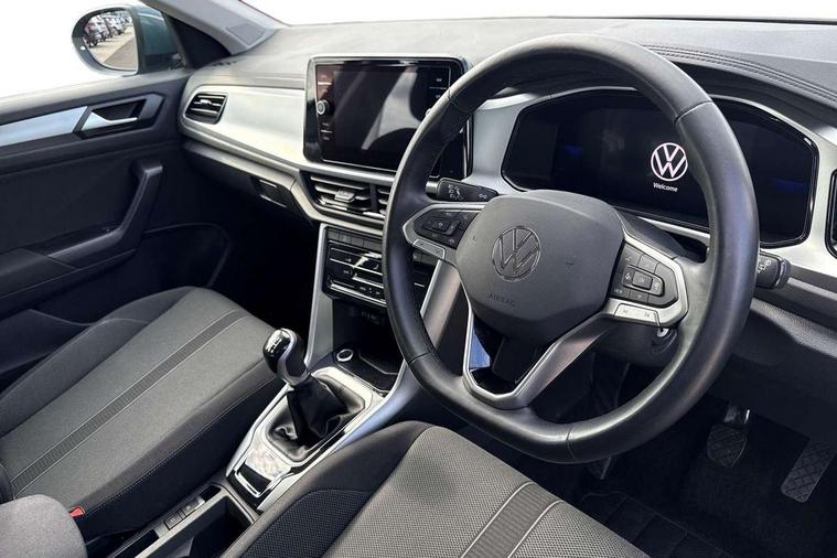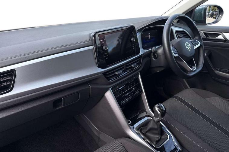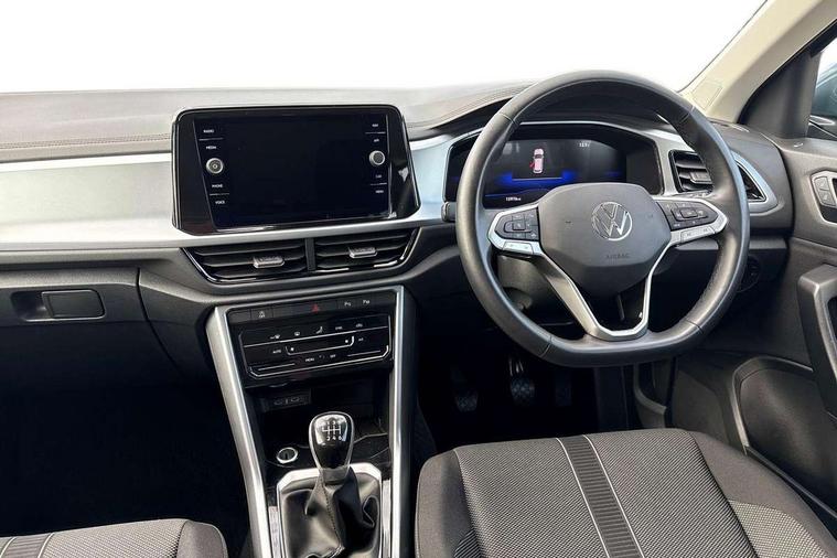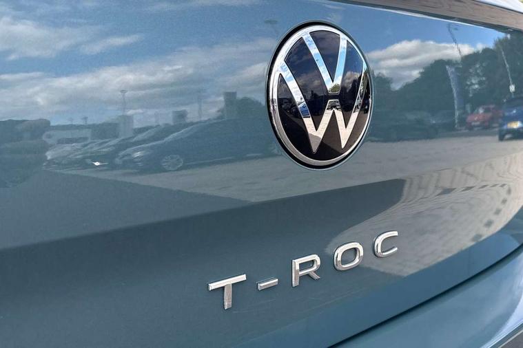 Advanced driver attention and drowsiness monitor, Bluetooth mobile phone interface, Dynamic road sign display, Emergency call service, Lane keeping system Lane Assist, Modified key software - reduce switch off time for key status change to Long no motion, Online services, Park assist including front and rear parking sensors, Power assisted speed sensitive steering, Service interval indicator, Tailgate/trunk lid release from outside, Think blue trainer driver tips and journey analysis, Warning sound and light for front seatbelts unfastened, Wireless app connect, Battery regeneration during braking, Front shock absorption, Rear shock absorption chassis with increased ride height, Start/stop function with battery regeneration, DAB Digital radio, Diversity antenna for FM reception, Music playback - MP3, WMA and AAC files, Premium USB cable in choice of either Apple or Android smartphone compatibility, SD card slot, Simultaneous pairing of 2 compatible mobile devices, Title and cover art display, We Connect and We Connect Plus functionality, 3rd brake light, Auto dimming interior rear view mirror, Automatic hazard lights activation under emergency braking, Automatic headlight control with LED separate daytime running lights with coming/leaving home function, Black roof rails, Body coloured bumpers and radiator grille with chrome trim and front fog lamps with chrome bezel, Body coloured exterior mirror housings and door handles, Electrically adjustable and heated door mirrors, Extended roof spoiler, Exterior mirrors aspherical on driver side, convex on front passenger side, External USB type C socket and charging sockets, Front windscreen wiper with intermittent wipe and 4 position delay, Heated rear window, LED rear combination lamps, LED rear number plate lights, Power windows with comfort operation and circuit breaker, Rain sensor, Rear exhaust tailpipe, Rear fog light on one side and reversing lights on both sides, Rear side wing doors, Rear wash/wipe with intermittent wipe setting, Remote electrically foldable door mirrors, puddle lights and reverse activated passenger's door mirror, 12V power socket in centre console, 3 rear head restraints, 3 seat bench in 2nd row, 4 load lashing points in luggage compartment, Air care climatronic air conditoning system with active combination filter and 2-zone temperature control, Ambient lighting with mirror logo projection, Cloth upholstery, Door and side trim panel in cloth, Drawer under drivers seat, Driver/front passenger seat height adjustment, Front centre armrest, Front comfort sports seats, Front cupholders x 2, Front reading light, Front seat back storage pockets, Glove compartment door with light, Instrument lighting, white adjustable panel illumination, Interior light delay, Isofix child seat preparation, Leather gearshift handle, Load-through provision with cup holder when folded down ('Unsplit rear seat bench, split folding backrest, with centre armrest), Luggage compartment lighting, Lumbar support for driver's and front passengers seat, Non-folding front passenger seat backrest, Single front passenger seat, Storage compartment in left and right luggage area, Storage compartment in rear doors, Storage compartments in driver and front passenger doors, Sunvisors with illuminated vanity mirrors, Variable boot floor, height adjustable and removable, Driver assistance pack without proactive passenger protection - T-Roc Life/Match, 3 point height adj front seatbelts + pretensioners, 3 point seatbelts in outer rear with ECE label, ABS, Child locks on rear doors, City emergency braking and pedestrian monitoring, Driver and front passenger airbag with front passenger airbag deactivation, Driver and front passenger safety-optimised head restraints, Drivers seatbelt reminder, Electronic parking brake, Electronic Stability Control (ESC) inc EDL (Electronic Differential Lock) and ASR (Traction Control), Front and rear passengers curtain airbag system including front side airbags, Front disc brakes, Hill start assist, Predictive pedestrian protection, Rear disc brakes, Two tone horn, Tyre pressure loss indicator, Volkswagen roadside assistance, Alarm with interior protection, Anti-theft alarm system with interior monitoring, backup horn, and towing protection, Remote central locking with SAFELOCK, radio remote control with 2 remote control folding keys, Pewter matt decorative inserts for intrument panel, centre console and door panels at the front, Trims for alloy wheels,