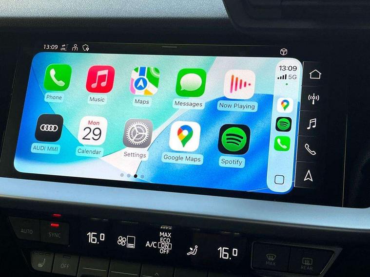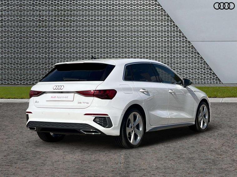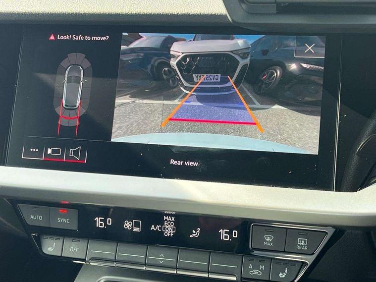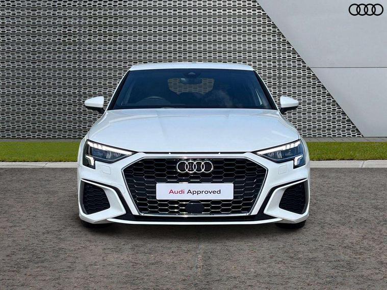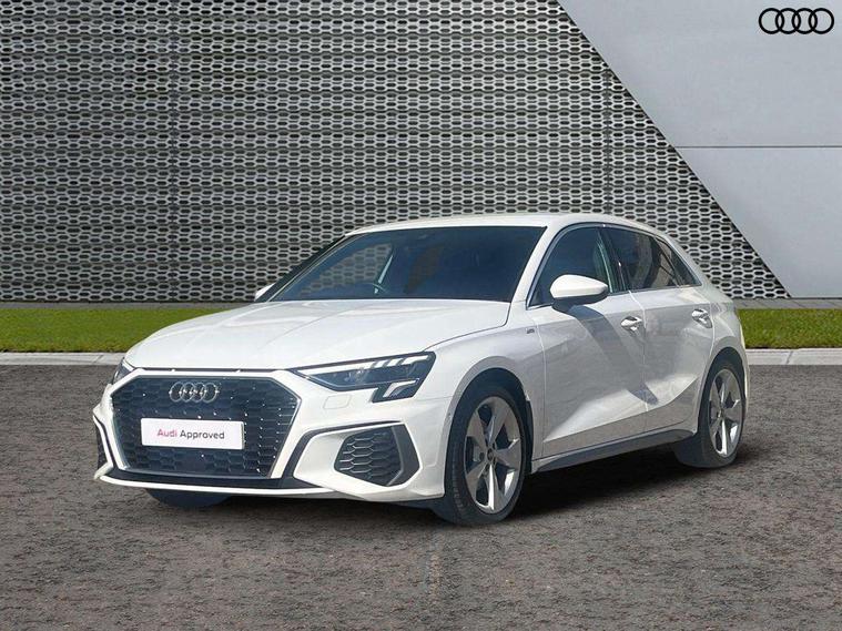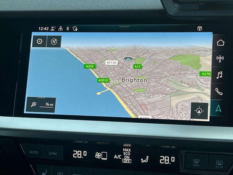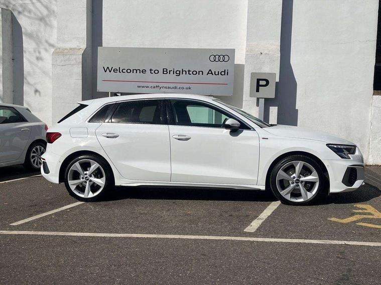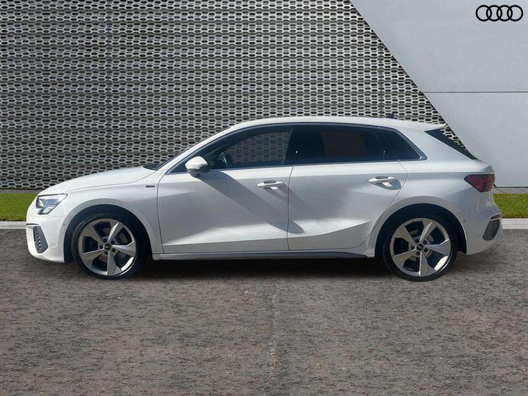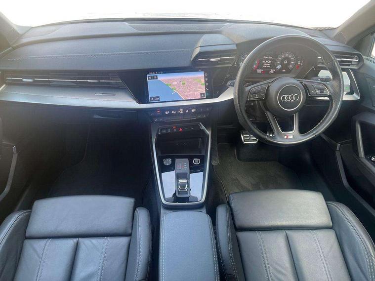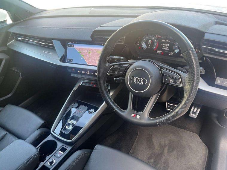Audi connect emergency call and service, Audi drive select (Auto, Comfort, Dynamic, Efficiency and Individual), Audi smartphone interface, Audi Virtual Cockpit - 10.25" digital and colour instrument cluster, Automatic start/stop system with recuperation, Bluetooth interface, Collision avoidance assistant, Electromechanical power speed sensitive steering, Lane departure warning system, MMI Navigation Plus with high resolution 10.1" colour touch screen display, Service indicator, Trip computer, Voice control system with natural language interaction, 2xUSB-C connection with data and charging functions, 6 passive loudspeakers, DAB Digital radio, 3rd brake light, Acoustic glass windscreen, Aluminium window trim, Auto dimming frameless rear view mirror, Electrically adjustable/heated/folding/auto dimming door mirrors with integrated LED indications + kerb view function for passenger side, Front electric windows, Illuminated aluminium inserts front door sills with S logo, LED daytime running lights, LED headlights with LED rear lights and dynamic rear indicators, Light and rain sensors, Privacy glass - dark tinted rear window, rear door and side windows, Rear electric windows, Rear side air outlets in grained matt black, Rear wiper, S line bumpers, S roof spoiler, 12V socket and storage compartment in front centre console, 40/20/40 split folding rear seat bench with cupholder, Black cloth headlining, Dual zone electronic climate control, Front and rear centre armrest in leather, Front and rear headrests, Front/rear floor mats, Height and reach adjustable steering wheel, Interior lighting - glove compartment light and right hand side, Luggage compartment floor covering, Manual boot compartment lid, Manually adjustable front seats, Seat side bolsters, Stainless steel pedals and front footrest, Twin leather upholstery with front sports seats S embossed logo, Aluminium interior elements pack - A3 Sportback, S line styling pack - A3 Sportback, 3x3 point rear seat belts, Driver and front passenger airbag with passenger airbag deactivation, Electronic Stabilisation Control (ESC) including ABS, ASR and EDL, First aid kit with warning triangle and 2 safety vests, Front side airbags with head airbags and interaction airbag, Hill hold assist, Pre-sense front with pedestrian and cyclist detection, Seatbelt monitoring, Tyre pressure loss indicator, Anti theft alarm, Anti-theft wheel bolts, Electronically operated child lock, Immobiliser, Remote control central locking, Accent surfaces in the dashboard and centre console in platinum grey silk effect paint finish, Dark spectrum aluminium inlays,