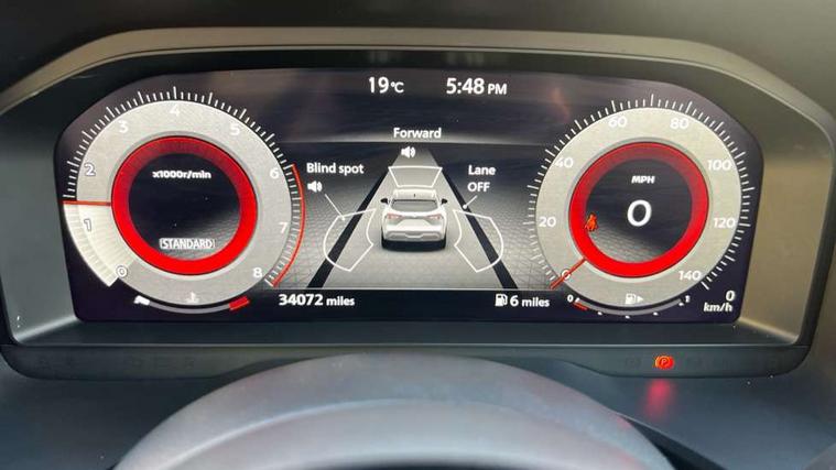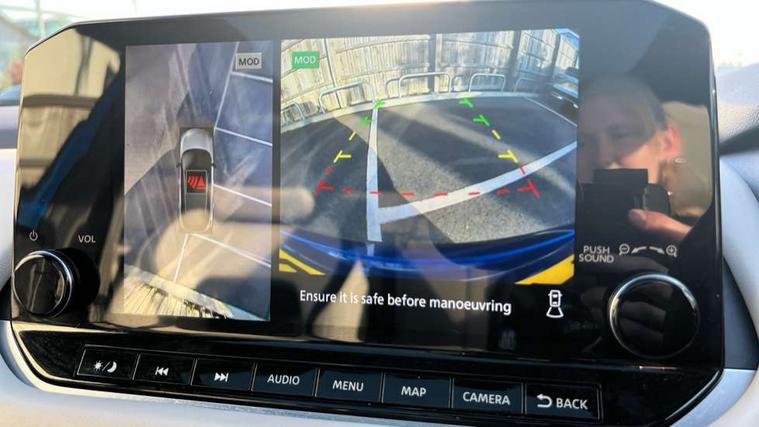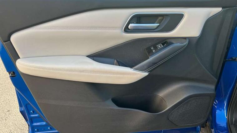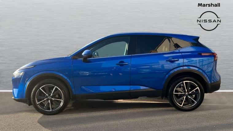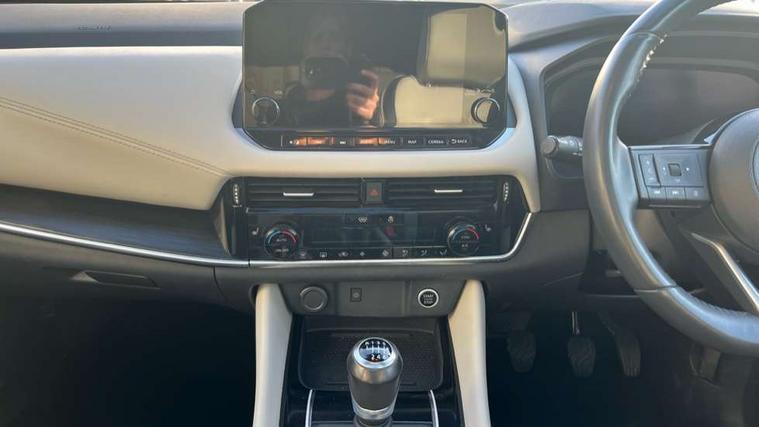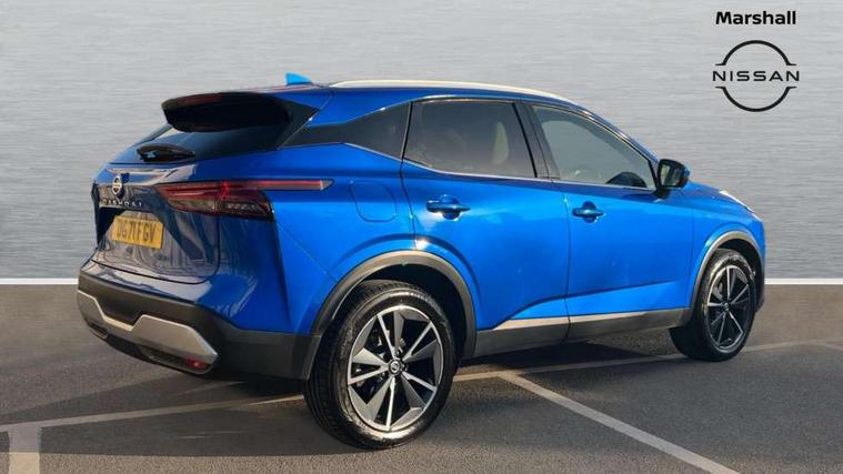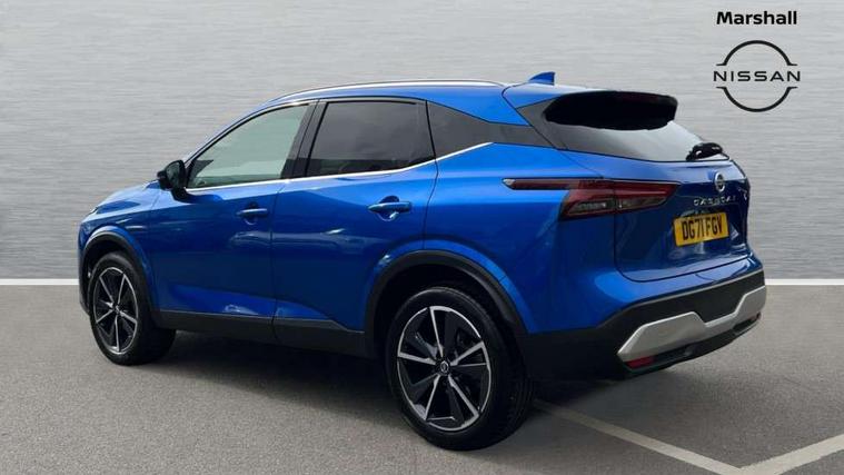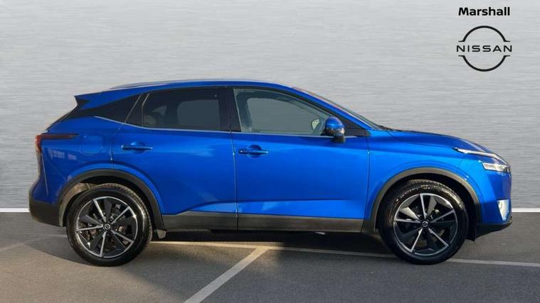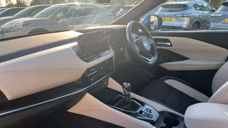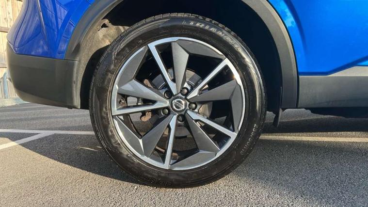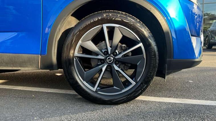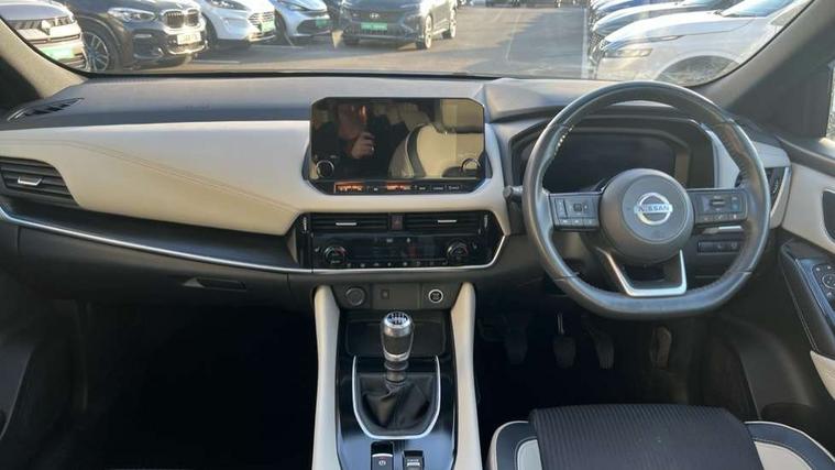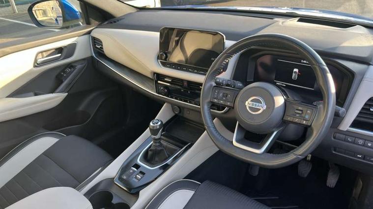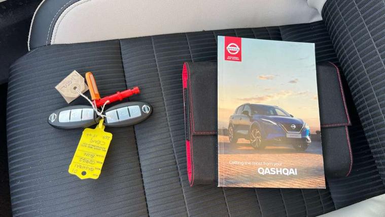 Blind spot warning, Drive modes (sport, normal, eco), Electric speed sensitive power steering, Emergency and breakdown call, Front and rear parking sensors, Full Digital 12.3" TFT Digital Combimeter, Hands free power tailgate, Idle stop/start system, Intelligent Cruise control (ICC), Intelligent driver alert system, Intelligent forward collision warning, Intelligent lane intervention, Lane departure prevention, Lane departure warning system, Moving object detection, Push button starter, Rear cross traffic alert, Traffic sign recognition with legal speed adjustment, Trip computer, 6 speakers, AM/FM audio system with DAB, Bluetooth audio streaming, Front USB connections (Type-A and Type-C), Rear USB charging only ports (Type-A and Type-C), Auto dimming rear view mirror, Auto rear wiper when reversing, Body colour mirror caps, Body coloured door handles, Bodyside mouldings, Chrome side window finisher, Electric auto folding door mirrors, Electrically adjustable and heated door mirrors with LED turn indicator, Fixed panoramic glass roof with electric sunshade, Follow me home headlights, Intelligent auto headlights, LED daytime running lights, LED signature rear lights, One touch front and rear electric windows with remote opening and closing, Partially body coloured bumpers, Privacy glass, Rear roof spoiler, Rear styling plate, Roof rails, Shark fin antenna, Splash free rain sensing wipers, Super UV and infrared cut glass, Three blink turn signal, 12v power socket in dashboard and luggage, 2 way electrical driver lumbar adjustment, 2x Rear coat hooks, 3 rear headrests, 4 grab handles, 6 Luggage hooks - 4 on floor, 2 on side, 60/40 split folding rear seat, 8 way electric adjustable drivers seat, Ambient lighting around centre console, Ambient lighting in front doors, Centre console storage tray, Chrome interior door handles, Cloth/syntech leather monoform upholstery, Dark headlining, Driver and front passenger sunvisors with illuminated vanity mirrors, Driver seat back pocket, Dual zone automatic climate control with pollen filter, Front centre console and armrest, Front cupholder, Front door with bottle holders, Glovebox with light, Hard trunk cover, Height adjustable front headrests, Leather shift knob, Leather steering wheel, Luggage board system, Luggage space lighting, Manual lumbar support on passenger seat, Manually adjustable passenger (slide recline + lifter), Multifunction steering wheel, Passenger seat back pocket, Rear armrest with 2 cupholders, Rear door bottle holders, Soft PVC kneepad, Steering wheel switches, Tilt/telescopic adjustable steering wheel, Two rear isofix child seat anchorage points with top tether, Welcome light and doors with console tray ambient lighting, Drive assist pack - Qashqai, Heat pack - Qashqai, Tech Pack (Drive Assist + HUD), 3x3 point rear seatbelt pretensioners + load limiters, ABS, ESP, EBD and brake assist, Active brake limited slip, Auto hold function, Child locks on rear doors, Curtain and front side, far side airbags, Driver and passenger airbags, Driver, passenger and 2nd row rear seat belt reminder, Electronic parking brake, Front seatbelt pretensioners + load limiters, Height adjustable front seatbelts, Hill start assist, Intelligent blind spot intervention, Intelligent front emergency braking with pedestrian, cyclist recognition and junction assist, Intelligent rear automatic braking, Tyre pressure monitoring system, Vehicle dynamic control, Capless fuel filler, Engine immobiliser, Nissan i-key, Remote central door locking with deadlocking, Thatcham Cat.1 alarm, 19" Alloy wheels,