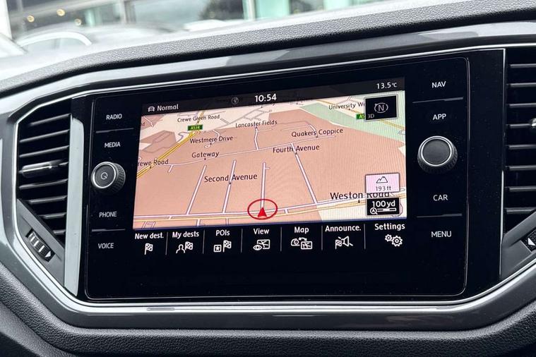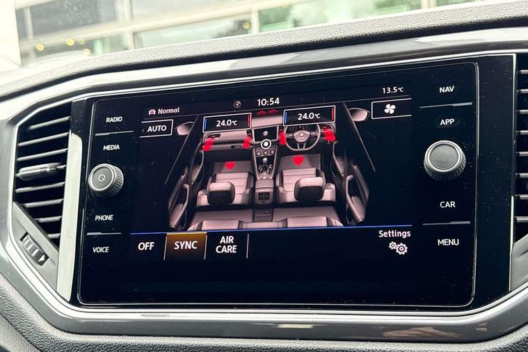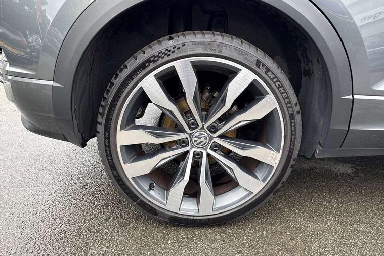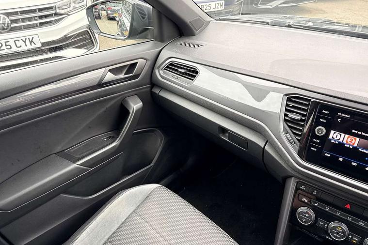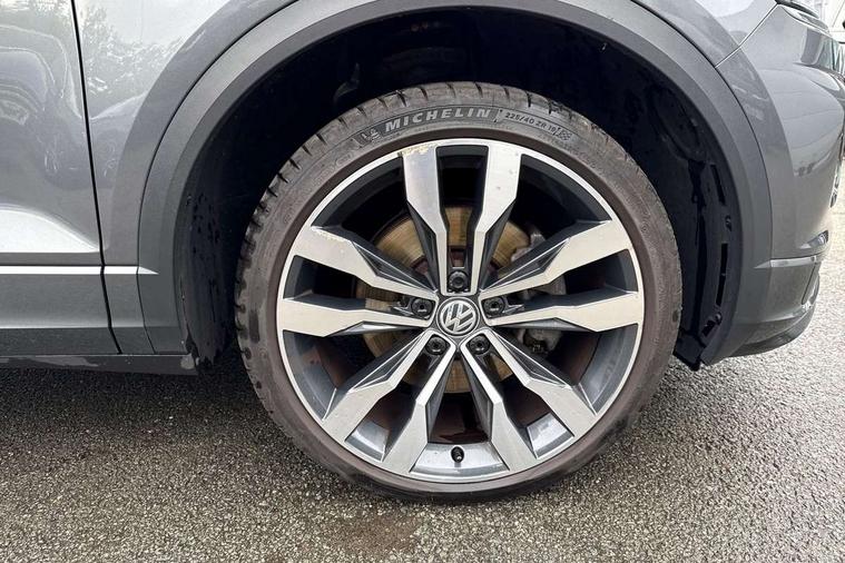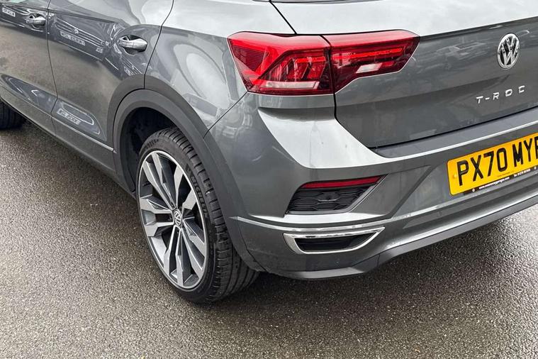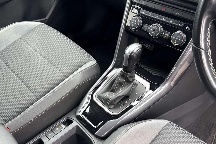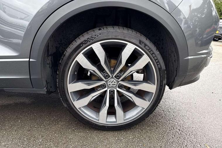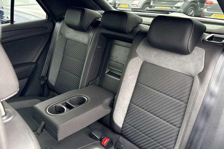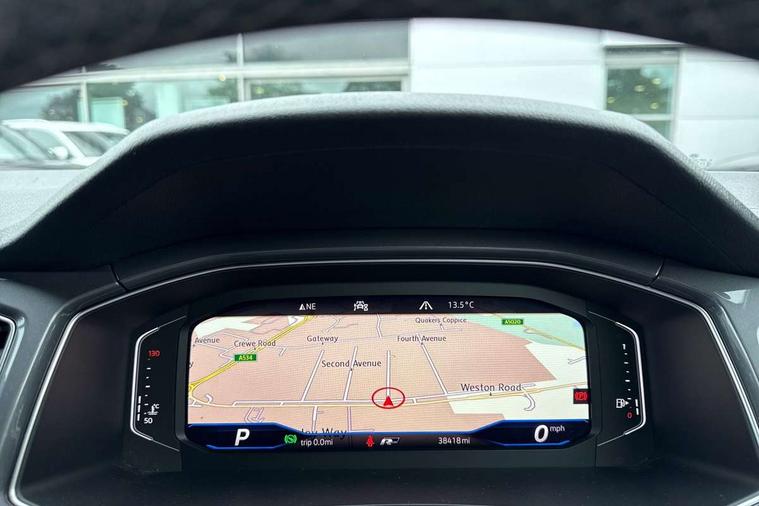 'Lights On' Reminder warning buzzer, Adaptive cruise control with front assist, radar sensor controlled distance monitoring, city emergency braking, Automatic start/stop system, Bluetooth telephone and audio connection for compatible devices, Car information display, Digital Cockpit Pro - Active info display, Discover navigation including 8" touch screen display, streaming and internet, Driver alert system with audible and visual fatigue detection system, Driver tips and journey analysis, Lane assist with warning text instrument cluster, Modified key software - reduce switch off time for key status change to Long no motion, Multifunction computer with visual gear change recommendation for fuel consumption, Service interval indicator, Think blue trainer driver tips and journey analysis, Voice activation, Wireless app connect for apple carPlay, Battery regeneration during braking, Centre arm rest including USB type C interface and USB charging socket, DAB Digital radio, Diversity antenna for FM reception, Front USB type C Interface 2X and USB charging socket, Music playback - MP3, WMA and AAC files, Premium USB cable in choice of either Apple or Android smartphone compatibility, SD card slot, Simultaneous pairing of 2 compatible mobile devices, SMS functionality - read, compose and send SMS messages using touch-screen display, Storage compartment with longitudinal and height adjustable in armrest and two rear air vents, Three route options - Fast, Short, Eco, Title and cover art display, Auto dimming interior rear view mirror, Black grained lower door protectors, Body colour door handles, Body colour rear roof spoiler, Chrome effect left and right trapezoid exhaust tailpipe fascia surround, Chrome trim on upper and lower radiator grille, Dusk sensor, Electrically foldable, adjustable and heated door mirrors with puddle lights and reverse activated kerb-view adjustment on passenger's door mirror, Front and rear electric windows, Front fog lights with static cornering function, Front windscreen wiper with intermittent wipe and 4 position delay, Fully galvanised body, Heated rear window, High level 3rd brake light, LED darkened rear light clusters, LED rear number plate lights, Manual coming/automatic leaving home lighting function, Rain sensor, Rear tinted glass from B-pillar backwards approx 65% tinted, Rear wash/wipe with intermittent wipe setting, Volkswagen roundel, 2 Front and rear reading lights incorporating LED technology, 3 rear head restraints, 4 load lashing points in luggage compartment, Aluminium pedals, Ambient lighting in front footwell and light strips below trim in front doors, Black roof lining and sun visors, Branded points of interest, Carbon flag cloth upholstery, Climate control - 2 zone electronic air conditioning with automatic air recirculation and allergy filter, Drawer under drivers seat, Front + rear carpet mats, Front cupholders x 2, Front seat back storage pockets, Front sports seats with R-Line logo on seat backrest, Glovebox, Height adjustable front seats, Height/reach adjust steering wheel, Illuminated vanity mirrors, Instrument lighting, white adjustable panel illumination, Interior light delay, Isofix easy fit child seat preparation for 2 outer rear seats, Load through provision with single cup holder when folded down, Luggage compartment cover, removable, Luggage compartment lighting, R Line badge, Split folding rear seat backrests with centre armrest, Storage compartment in left and right luggage area, Storage compartment in rear doors, Storage compartments in driver and front passenger doors, Three spoke multi function leather trimmed steering wheel and gear knob including paddle shift, Unique R Line door sill protectors, R line styling pack - T-Roc, 3 rear three point seatbelts, ABS, Curtain airbags, Driver and front passenger safety-optimised head restraints, Drivers and front passengers airbags with passengers deactivation switch, Drivers seatbelt reminder, Electronic parking brake with auto hold, Electronic stability control (ESC) includes ASR, EDL, EDTC and trailer stabilisation function, Front seat side impact airbags, Predictive pedestrian protection, Rigid safety cell with front and rear crumple zones, Three point height adjust front seatbelts + pretensioners, Tyre pressure loss indicator, Ventilated front and rear disc brakes, Volkswagen roadside assistance, Alarm with remote central locking and interior protection, Electronic engine immobiliser, Remote central locking with 2 remote folding keys, Shadow steel decorative inserts in dash and door panel, 19" Suzuka alloy wheels with low rolling resistance tyres and anti wheel bolts,