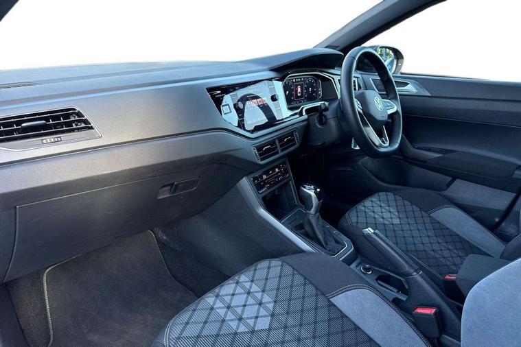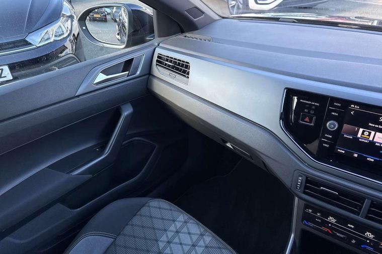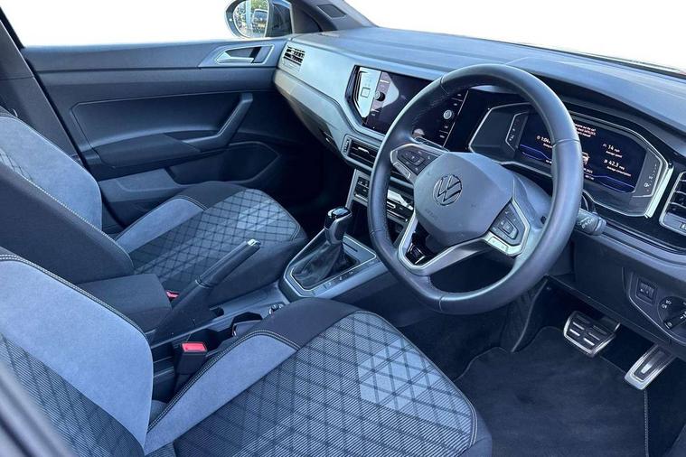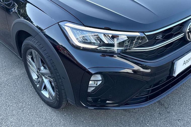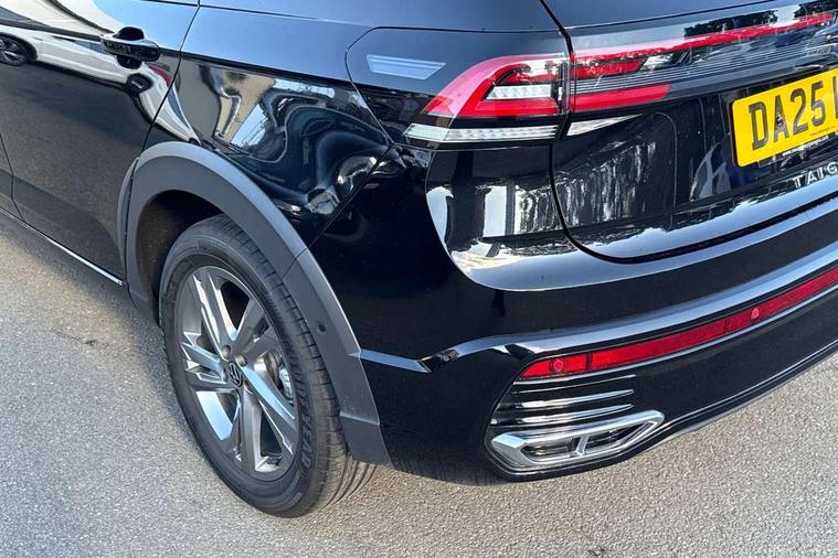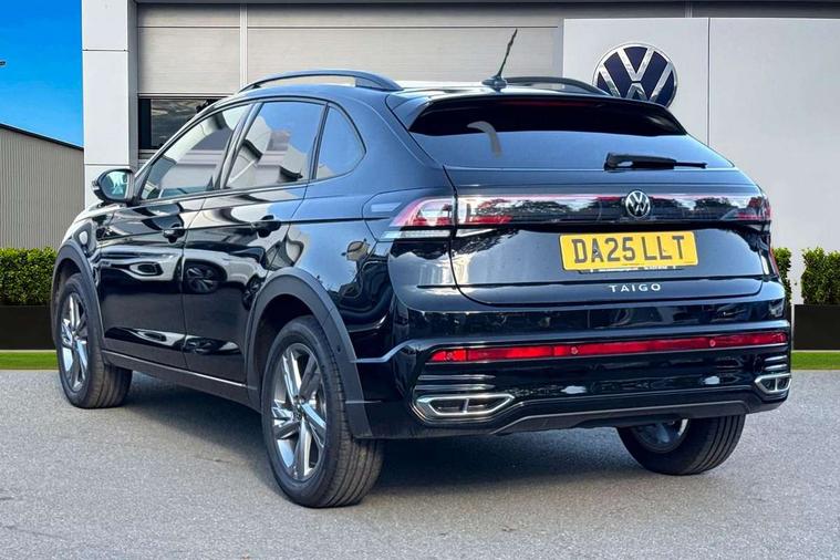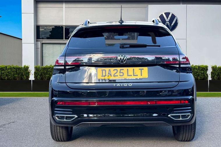 Adaptive cruise control, Advanced driver attention and drowsiness monitor, App-Connect including App-Connect Wireless, Digital cockpit pro - 10.25" high resolution TFT dash display screen with customizable menus and information, Driving profile selection, Dynamic road sign display, e-Call (emergency call), Power Steering, Travel assist including emergency assist, Washer fluid level indicator, Wireless Charging including Bluetooth, Start-stop system with battery regeneration (recuperation - energy recovery during braking), XDS electronic differential lock for improved traction and handling, Digital radio reception (DAB+), Diversity antenna for FM reception, WeConnect plus, Ambient lighting with logo projection, Aspherical driver's exterior mirror, Auto headlights, Body coloured bumpers, Bumpers in R-Line style, Electric windows, External USB type C socket and charging sockets, Front scuff plates with R-Line logo, LED rear combination lamp, LED third brake light, Left convex exterior mirror, Power folding adjustable/heated exterior mirrors and front passenger exterior mirror lowering function, Rear fog light on one side, reversing light on both sides, Rear side wing doors, Rear wash/wipe with intermittent wipe setting, 12V socket in centre console, 2 front reading lights, 3 rear head restraints, 3 seat bench in 2nd row, Air care climatronic air conditoning system with active combination filter and 2-zone temperature control, Black carpets, Black roof lining, Child seat anchor for child seat system i-Size, 2x top tether and child seat anchor in front on front passenger side, Chrome bezel for instrument cluster, vents, door handles + gear shift, Driver and front passenger seat height adjustment, Front + rear carpet mats, Front centre armrest, Front footwell illumination, Front sports comfort seats, Height and reach adjustable steering wheel, Interior ambient lighting and surround lighting, Karoso artvelours cloth upholstery, Leather trimmed gear knob, Leather wrapped multifunction steering wheel, Luggage compartment floor, Luggage compartment light, Lumbar support for driver's and front passengers seat, Seat covers in grey + titanium black, Single front passenger seat, Split folding backrest with centre armrest and unsplit rear seat bench, Stainless steel pedals, Storage compartment under front seats, Sun visors with illuminated vanity mirrors, Chrome Package - Taigo, Drivers assistance pack - Taigo, Light and Sight pack including High beam assist - Taigo, 2 x 3-point seatbelts/outer rear seats with ECE label, 3-point seat belts in front with pretensioner and height adjustment, 3-point seatbelt for centre rear seat, Adaptive driver and front passenger airbags with passenger airbag deactivation function, Driver and front passenger safety-optimised head restraints, Electronic stability control, Extended and predictive pedestrian/ cyclist protection, Front and rear disc brakes, Front curtain and side airbags with center airbag, Hill start assist, Manual rear child locks, Single tone horn, Tyre pressure loss indicator, Anti-theft alarm system with interior monitoring, backup horn, and towing protection, Grey anodised matte decorative inserts in dash and front door panels, Low rolling resistance tyres,