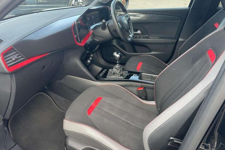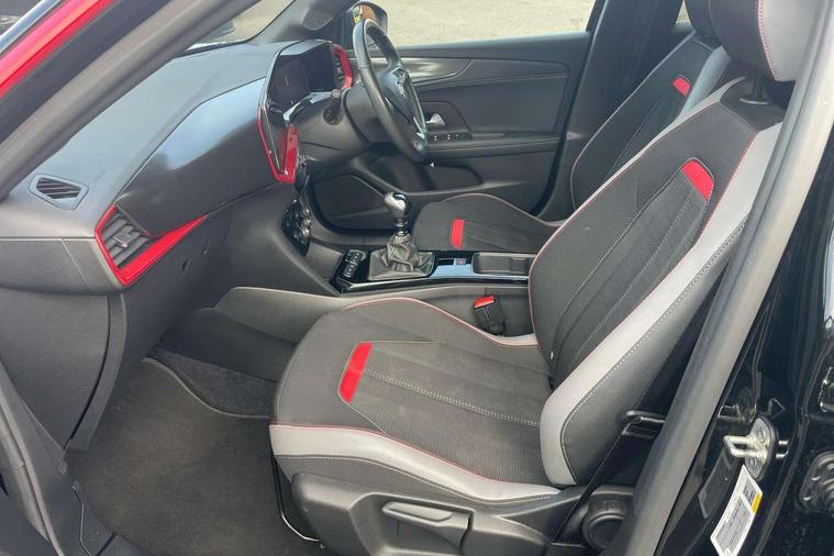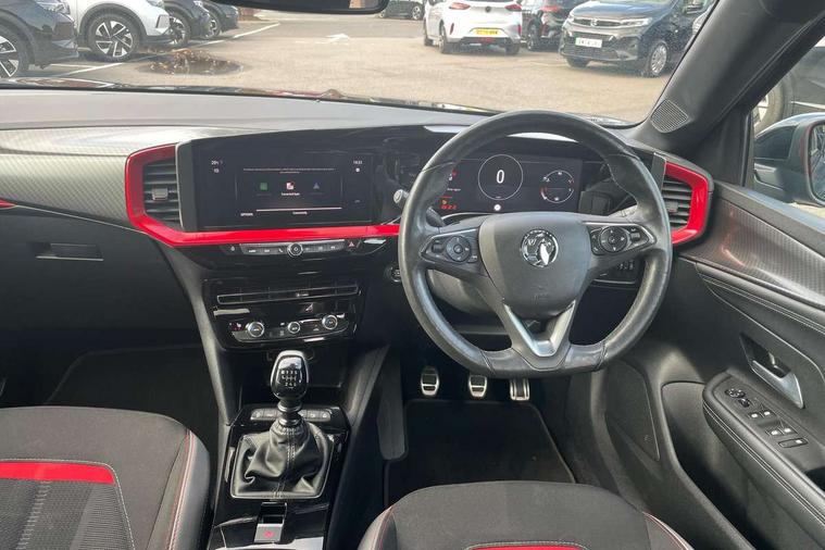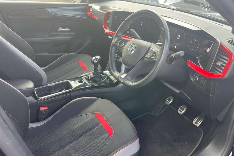 Automatic adaptive cruise control, Driver drowsiness alert system, Engine start/stop button, Front and rear parking distance sensors, Front camera system, Lane keep assist system (LAS) with Lane departure warning system (LDWS), Lights on audible warning, Multi function trip computer, Panoramic rear view camera, Power assisted speed sensitive steering, Side blind spot alert and flank guard, Smartphone integration compatible with Apple CarPlay and Android Auto, Speed sign recognition, Sports switch with engine sound enhancement, Start/stop system, Vauxhall connect with e-Call, 6 speed manual transmission, Chassis drive line front wheel drive, Electronic fuel system, Front chassis equipment, Rear chassis equipment, Standard chassis suspension system ride handling, Bluetooth A2DP audio streaming, Flexible Roof Mounted Radio Aerial, Front USB connection, Mobile phone portal - bluetooth connect, vehicle microphone, handsfree calls, SMS read out and reply, phone book access, Multimedia Navi pro infotainment with satellite nav, 10" colour touchscreen, 6 speakers, DAB radio, 12" instrument panel, Apple carplay/Android auto, Steering wheel mounted controls, Two rear USB sockets, 3rd brake light, Adaptive brake lights, Automatic lighting control with tunnel detection, Automatically dimming anti dazzle rear view mirror, Black door mirror housings, Black Griffin logo and vizor frame, Black rear spoiler, Black skid plates, Body colour door handles, Body colour front and rear bumpers, Dark tinted rear side windows + tailgate window, Electrically adjustable, heated and folding door mirrors, Electrically operated front and rear windows with safety auto reverse and one touch up/down facility, Hazard warning lights, Heated rear window+rear wash/wipe, High beam assist, LED daytime running lights, LED front fog lamps, LED side repeat indicators, LED tail lights, Manual headlamp level control, Rear foglight, Rear side wing doors, Rear wiper, Reversing light, Two speed rain-sensitive windscreen wipers with variable intermittent wipe, Windscreen and side window demist vents, 12V Accessory socket, 3 seat bench in 2nd row, 3 spoke flat bottomed leather steering wheel with satin chrome bezel, 4 speed fan with illuminated controls, 6 way manual adjustable driver fore/aft, up/down with reclining seatback, 6 way manual adjustable front passenger fore/aft, up/down with reclining seatback, Air recirculation system, Alloy sports pedals, Black headliner, Cabin particulate filter - removes dust, airborne particles and pollen, Centre console with two cup holders at front and one in rear, Chrome effect interior door handles, Door pockets with two litre capacity, Driver and passenger seat pocket, Driver and passenger sun visors with vanity mirror, Electronic climate control (ECC), Fabric/leather upholstery with jet black fabric side bolsters, Four adjustable facia vents, Four load restraint lashing eyes, Front centre armrest with storage, Front map reading lights, Front seat back storage pockets, Fully carpeted load area, Heated front seats, Heated steering wheel, Height adjustable front/rear head restraints, Illuminated load area, Interior courtesy light, Interior tailgate handle, Luggage compartment cover, Luggage compartment lighting, Reach + rake adjustable steering column, Single front passenger seat, Twin gas assisted tailgate struts, 2x Isofix child seat fitting on outer rear seats, 3x3 point rear seat belts, Anti-lock braking system (ABS), Automatic emergency city braking, Child proof locks on rear doors, Cornering brake control, Deactivation switch for front passenger front and side impact airbags, Drag torque control, Driver and front passenger airbags, front seat side impact airbags, full size curtain airbags, Electronic brake force distribution, Electronic Stability Programme (ESP), Emergency brake assist, Forward collision alert at all speed, Hill start assist, Inertia reel lap and diagonal seatbelts for all seats, Seatbelt unfastened audible warning and warning light, Straight line stability control, Traction control, Tyre pressure monitoring system, Electronically protected audio equipment, Freewheeling door locks, Immobiliser, Key left in ignition audible warning, Keyless entry and start, Locking wheel nuts, Remote control ultrasonic security alarm system, Visible vehicle identification number, Atlantis black trim inserts of front doors, Black facia with red trim insert, Instrument panel bar in Light Gravel, 18" bi colour alloy wheels with red accents,