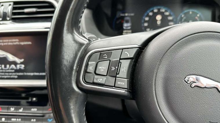 Auto speed limiter, Front parking aid, Lane departure warning system, Outside temperature gauge, Power tailgate, Rear parking aid, Service interval indicator, Touch screen display, Traffic sign recognition, Trip computer, Variable PAS, All terrain progress control, Bluetooth connectivity including audio streaming, DAB Digital radio, Dynamic volume control, Approach Illumination, Auto dimming rear view mirror, Automatic headlights, Body colour bumpers, Body colour door mirrors, Chrome side power vents, Chrome window surround, Electric front/rear windows with one touch/auto up/down, Front fog lights, Green tinted heat insulating glass, Heated rear window with timer, LED tail lights, Rain sensor windscreen wipers, Rear wiper, Trailer stability assist, Variable front intermittent wipers, 12V power point front/rear, 12V power point in luggage area, 2nd row air vents, 3 rear headrests, 40:20:40 split folding rear bench seat, Centre console storage box, Fold flat front seats, Front centre armrest with storage compartment, ISOFIX on outer rear seats, Jaguar sense, JaguarDrive selector, Leather multi function steering wheel, Overhead console with sunglasses holder, Rear armrest with cupholder, Shopping hook in boot, Steering wheel gearshift paddles, Taurus leather upholstery, Tie down hooks in luggage area, 3x3 point rear seatbelts, ABS, Anti-whiplash front headrests, Autonomous emergency braking (AEB) with forward facing camera, Brake pad warning light, Driver/Front Passenger airbags, DSC - Dynamic Stability Control, Electronic parking brake, Emergency brake assist, Front and rear curtain airbags, Front and rear seatbelt reminder, Front passenger seat occupancy sensor, Front side airbags, Hill start assist, Power child locks, Torque vectoring brake, Traction control, Tyre pressure monitoring system, Immobiliser, Keyless Start, Perimeter alarm, Remote central locking, Valet mode,