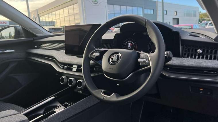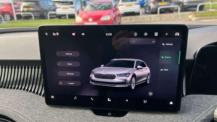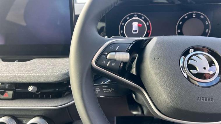13" touchscreen display with satellite navigation, 4x USB-C ports (2x in front centre console and 2x in rear) (45W), Adaptive cruise control with speed assist, lane assist plus and traffic tram assist, Blind spot detection with door exit warning, Bluetooth system, CareConnect and Emergency Call, ChatGPT functionality, Driver fatigue sensor, Front assist with extended predictive pedestrian protection, Front cross traffic assist, PAS, Quick start all heating software functionality, Rear view camera with washer, Stop/start engine system, Traffic sign recognition, Turn assist with evasive assistance, Virtual Cockpit - 10.25" digital display, Voice control system, Wireless charging for one smartphone (15W) with cooling function, Wireless smartlink apple carplay, SmartLink+ android auto, 8 Speakers, DAB Digital radio, Display cleaner, FM radio connection, Web radio connection, Acoustic side windows and interior noise suppression, Backdrop lighting, Body colour door handles, Body coloured door mirrors, Chrome roof rails, Chrome window surround, Electrically adjustable, heated, folding and driver side auto-dimming door mirrors with integrated indicators and logo projection, Frameless auto-dimming rear view mirror with USB-C, Front windscreen with heat-insulating glass, Ice scraper in fuel tank cap, LED 3rd brake light, Light assist with High beam control, Light assistant (coming/leaving home/tunnel light), Privacy glass, Rear fog light (x1), Rear roof spoiler, Rear side wing doors, Rear windscreen wiper, Tow bar preparation, Unique dark chrome design logo on alloy wheels, Unique dark chrome grille surround with dark chrome rib elements, Windscreen wipers with rain sensor, 12V socket 1x centre console 1x boot, 12V socket and 2x cargo elements in boot, 2 spoke multifunction steering wheel with DSG paddles, 3 seat bench in 2nd row, 4x foldable bag hooks in boot, 60:40 Split folding rear seats, Bottle holders in the front doors 1.5 litre bottle and rear 1.5 litre bottle, Cup holder in front with easy open mat, Front and rear footwell illumination, Front armrest with storage box, Front comfort seats, Heated front seats, Height adjustable driver and front passenger seats with 2-way electric tilt, 4-way pneumatic lumbar support, and extendable thigh support, Height adjustable front and rear head restraints, Height adjustable front passenger seat, Illuminated glovebox, Interior lights with control switches, Isofix child seat fittings in outer rear and front passenger seats, LED front and rear reading lights, Massage function for front seats, Single front passenger seat, Skoda lettering on steering wheel, Storage pockets on back of front seats, Sun visors with illuminated vanity mirrors, Ticket holder on A Pillar, Tri zone climate control, Umbrella in driver's door, 3 rear seatbelts, 8 Airbags - Front driver and passenger, front side driver and passenger, centre, curtain front and rear, drivers knee, Crew protect assist, Driver and passenger seatbelts with warning light, Electronic parking brake, ESC including ABS, EBV, MSR, ASR, EDS, HBA, DSR, RBS, CBC, multi-collision brake (MKB) and Auto hold, Hill hold assist, Power operated child lock in rear doors, Alarm with interior monitoring tilt sensor and back up horn, Backrest remote release from trunk, Electronic engine immobiliser, Keyless start/stop, Remote central locking with SAFE system, Third key, Decorative front door sills,