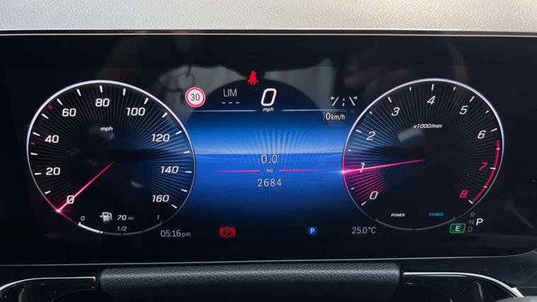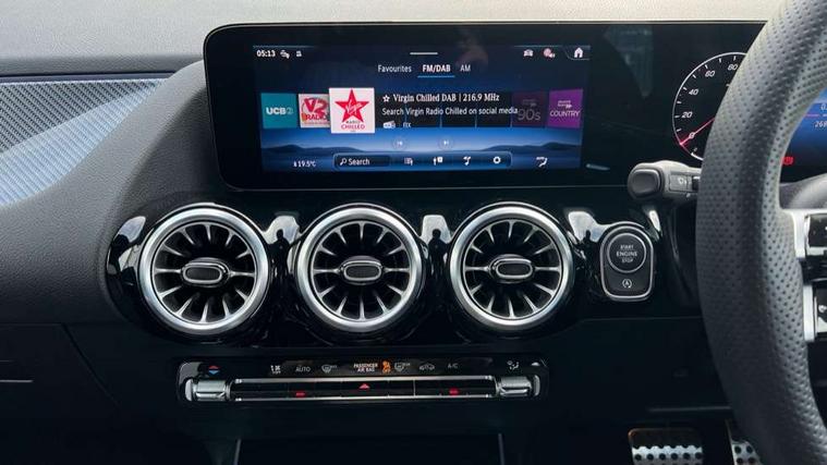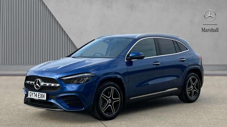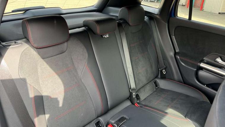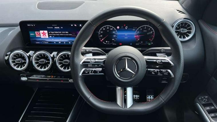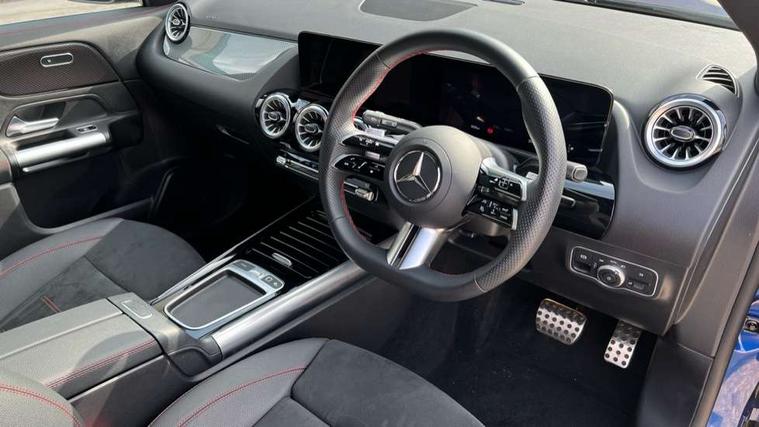 10.25 inch touchscreen central media display, 10.25" Digital instrument cluster display screen, Attention assist, Blind spot assist, Direct steering, DYNAMIC SELECT with a choice of driving modes (ECO, Comfort, Sport and Individual), ECO start/stop function, Fingerprint scanner, Fluid level warning indicator for fuel, oil, coolant and washer fluid, Hard-disk navigation, Hey Mercedes Voice activation, Lamp failure indicator, Lane keeping assist (LKA), Mercedes me connect including emergency call system, accident recovery, breakdown and maintenance management, Mercedes me remote services, Multi function trip computer, Outside temperature gauge, Owners manual and service booklet in English, Pre-installation of private car share, Radio aerial integrated into front and rear windshields, Service indicator (ASSYST), Smartphone integration with Apple CarPlay and Android auto, Speed limit assist, Wireless charging, Lowered comfort suspension, Rear axle multi-link, Bluetooth connectivity including audio streaming, DAB Digital radio, MBUX multimedia system, Mercedes Benz sound system (100 W) with 6 speakers, Adaptive brake lights, Adaptive highbeam assist, Aluminium roof rails, AMG front apron with front splitter in the colour of the vehicle with chrome trim element, AMG rear apron with visible tailpipe trim and chrome trim element, AMG specific/dual flow exhaust pipes in chrome (non-functional), Automatic headlamp activation, Beltline trim and window line trim strip in high gloss aluminium, Black grained side sill trim with chrome inlay, Car wash function, Dark privacy glass from B-pillar backwards, Electric front windows, Electric rear windows, Electrically adjustable and heated door mirrors with integrated LED indicators, Exhaust system with 2 Visible tailpipe trim elements and rear apron with trim in chrome, Heat insulating dark tinted glass, Heated glass rear windscreen + timer control, Interior mirror with black reading lamps and frameless, LED high performance headlamps with integrated LED daytime running lights, LED tail lights, LED third brake light, Rain sensor windscreen wipers, Rear fog lights, Rear side wing doors, Rear wiper, Wheel arch liners in the colour of the vehicle, 3 seat bench in 2nd row, 3 spoke flat bottom multifunction nappa leather steering wheel, 4 way lumbar support, 40:20:40 split folding rear seat backrests, Adjustable head restraints, Air conditioning - air vents with silver chrome surround, Air conditioning - One zone thermatic automatic climate control with automatically controlled air distribution, AMG floor mats, Artico man-made leather/Microcut microfibre upholstery with red contrast stitching, Auto Mercedes-Benz child seat recognition sensor, Black roof lining, Courtesy light in boot, Fluorescent jacket, Front centre armrest with stowage, Galvanished gear shift paddles on steering wheel in silver chrome, Heated front seats, Illuminated glovebox, Interior lighting - 64 colour Ambient lighting, Luggage net on driver/front passenger seat backrest, Manually height and reach adjustable steering column, Single front passenger seat, Sports pedals in brushed stainless steel with black rubber studs, Sports seats, Sports steering wheel, Stowage compartment in centre console, Stowage compartment with retractable cover, Sunvisors with illuminated vanity mirrors, Twin front cup holders, Two outer rear seat isofix and top tether child seat fixing points, Comfort seat pack - GLA Class, Interior lighting with light and sight pack - GLA, Keyless go comfort package - GLA, Mirror pack - GLA Class, Parking package with reversing camera - GLA, USB package plus - GLA, Winter package - GLA, 3 rear 3 point seatbelts, ABS with Brake Assist, Active bonnet pedestrain safety measure which detects an impact and raises bonnet by 65mm, Active brake assist includes forward collision warning system with autonomous braking, Adaptive brake assist with hold function and hill start assist, Black seatbelts, Bonnet with power domes, Brake pad wear warning indicator, Childproof locks manually operated for rear doors and electrically operated for rear power windows, Crash responsive emergency lighting, Driver and passenger head and side airbags, Drivers knee airbag, Dual stage driver/passenger airbags, Electronic parking brake, ESP curve dynamic assist, ESP with ASR, Front and rear seatbelt reminder, Front brake callipers with Mercedes Benz logo lettering on front, Front brake discs internally ventilated and perforated, Front passenger seat occupancy sensor, Sports braking system, Tyre pressure monitoring system, Warning triangle and first aid kit, Window airbags, Alarm system with immobiliser and interior protection -Thatcham category 1, Guard 360 degree vehicle protection, Remote central locking and crash sensor with emergency opening function, Light longitudinal grain aluminium trim, 19" AMG 5 twin spoke light alloy wheels aerodynamically optimised, painted in high-gloss black and with a high-sheen finish RTG, Summer tyres, Tirefit tyre sealant kit,
