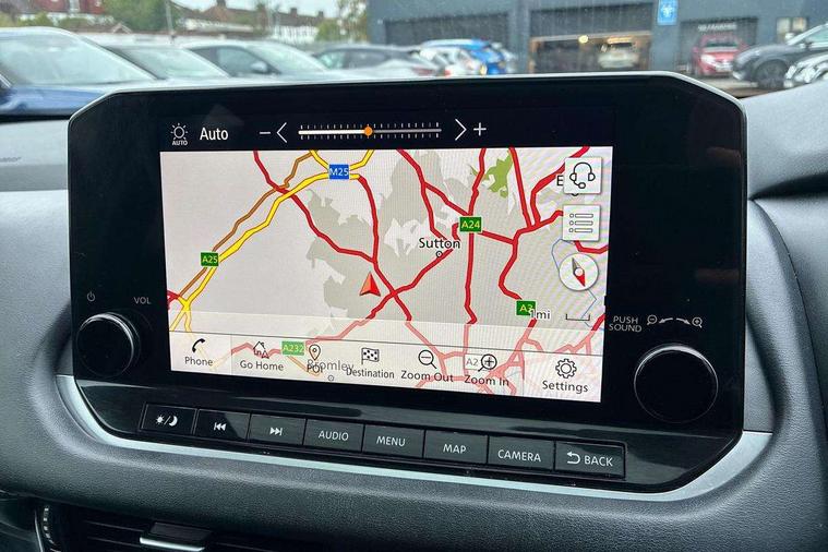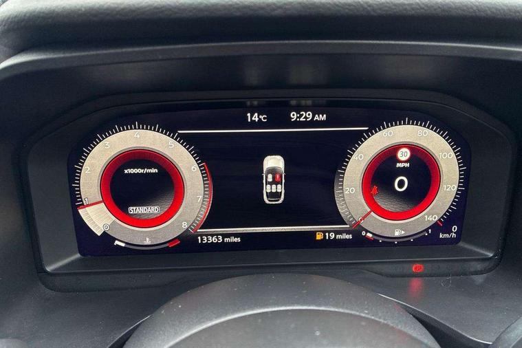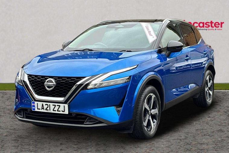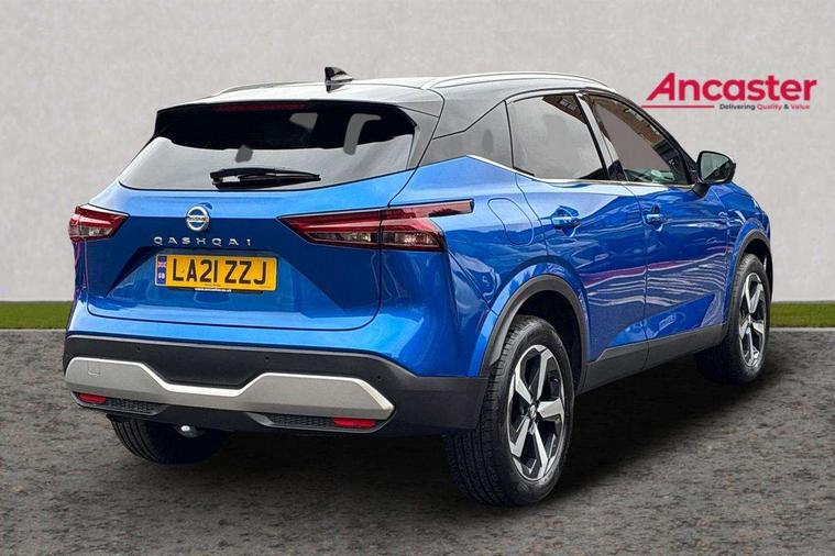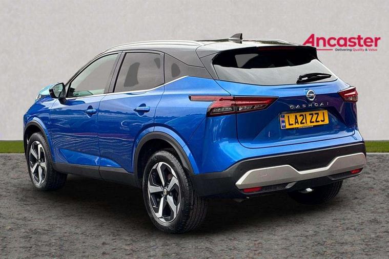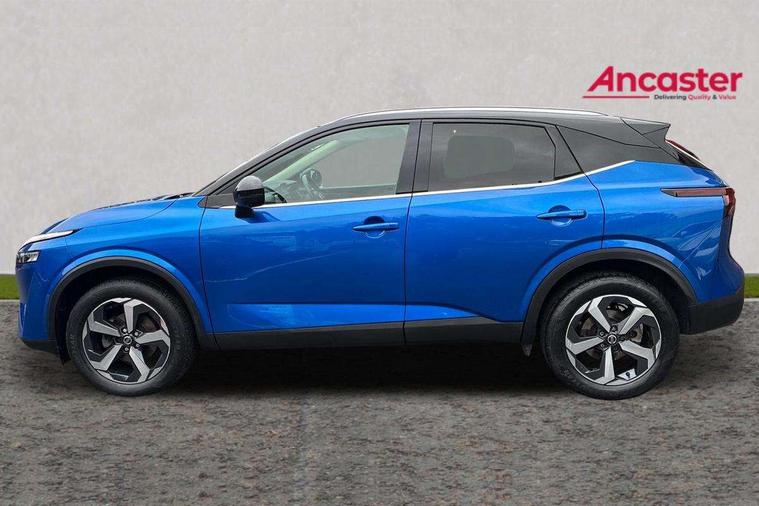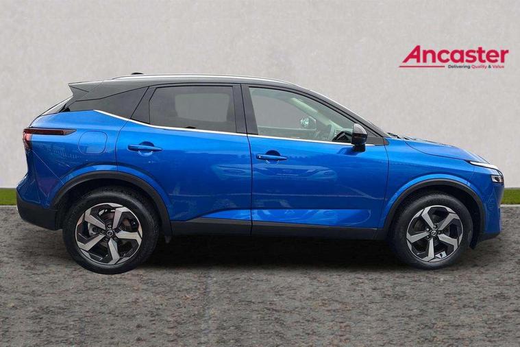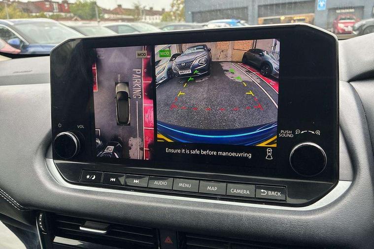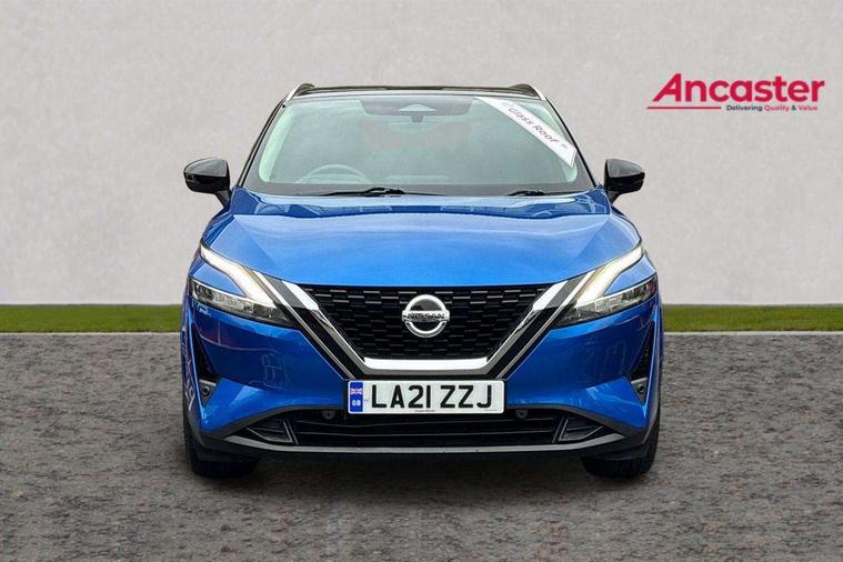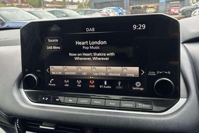 Android auto/Apple CarPlay (Wired), Blind spot warning, Drive modes (sport, normal, eco), Electric speed sensitive power steering, Emergency and breakdown call, Front and rear parking sensors, Full Digital 12.3" TFT Digital Combimeter, Idle stop/start system, Intelligent Cruise control (ICC), Intelligent driver alert system, Intelligent forward collision warning, Intelligent lane intervention, Lane departure prevention, Lane departure warning system, Moving object detection, Push button starter, Rear cross traffic alert, Traffic sign recognition, Trip computer, 6 speakers, AM/FM audio system with DAB, Bluetooth audio streaming, Front USB connections (Type-A and Type-C), Rear USB charging only ports (Type-A and Type-C), Auto dimming rear view mirror, Auto rear wiper when reversing, Body colour mirror caps, Body coloured door handles, Bodyside mouldings, Chrome side window finisher, Electric auto folding door mirrors, Electrically adjustable and heated door mirrors with LED turn indicator, Fixed panoramic glass roof with electric sunshade, Follow me home headlights, High beam assist, Intelligent auto headlights, LED daytime running lights, LED headlights with adaptive driving beam, LED rear lights, One touch front and rear electric windows with remote opening and closing, Partially body coloured bumpers, Privacy glass, Rear roof spoiler, Rear styling plate, Roof rails, Shark fin antenna, Splash free rain sensing wipers, Super UV and infrared cut glass, Three blink turn signal, 12v power socket in dashboard and luggage, 2 way electrical driver lumbar adjustment, 2x Rear coat hooks, 3 rear headrests, 4 grab handles, 6 Luggage hooks - 4 on floor, 2 on side, 60/40 split folding rear seat, Ambient lighting around centre console, Centre console storage tray, Chrome interior door handles, Cloth monoform upholstery, Driver and front passenger sunvisors with illuminated vanity mirrors, Driver seat back pocket, Dual zone automatic climate control with pollen filter, Front centre console and armrest, Front cupholder, Front door with bottle holders, Glovebox with light, Hard trunk cover, Height adjustable front headrests, Leather shift knob, Leather steering wheel, Luggage board system, Luggage space lighting, Manually adjustable passenger (slide recline + lifter), Multifunction steering wheel, Passenger seat back pocket, Rear armrest with 2 cupholders, Rear door bottle holders, Soft PVC kneepad, Steering wheel switches, Tilt/telescopic adjustable steering wheel, Two rear isofix child seat anchorage points with top tether, Welcome light and console tray ambient lighting, Connectivity Pack - Qashqai, Tech Pack (Drive Assist + HUD), 3x3 point rear seatbelt pretensioners + load limiters, ABS, ESP, EBD and brake assist, Active brake limited slip, Auto hold function, Child locks on rear doors, Curtain and front side, far side airbags, Driver and passenger airbags, Driver, passenger and 2nd row rear seat belt reminder, Electronic parking brake, Front seatbelt pretensioners + load limiters, Height adjustable front seatbelts, Hill start assist, Intelligent blind spot intervention, Intelligent front emergency braking with pedestrian, cyclist recognition and junction assist, Intelligent rear automatic braking, Tyre pressure monitoring system, Vehicle dynamic control, Capless fuel filler, Engine immobiliser, Nissan i-key, Remote central door locking with deadlocking, Thatcham Cat.1 alarm, 18" Diamond cut alloy wheels,
